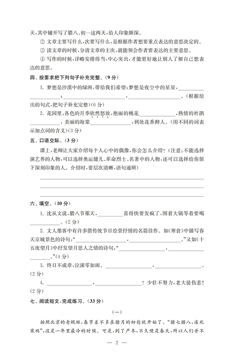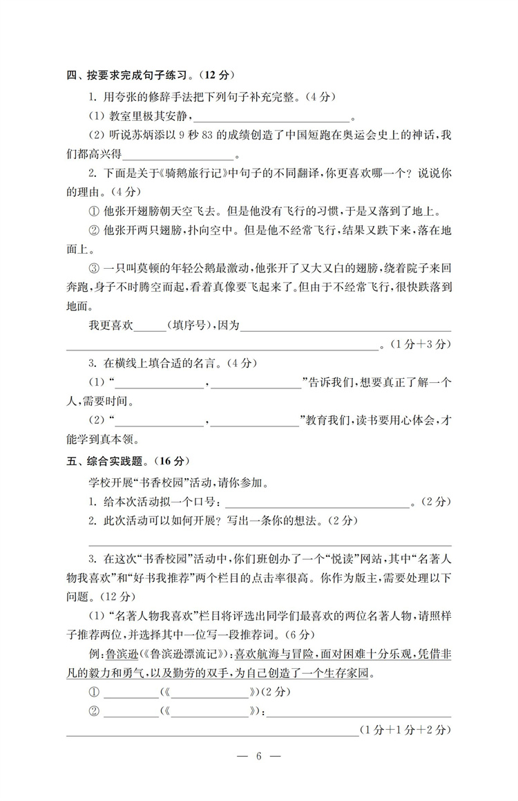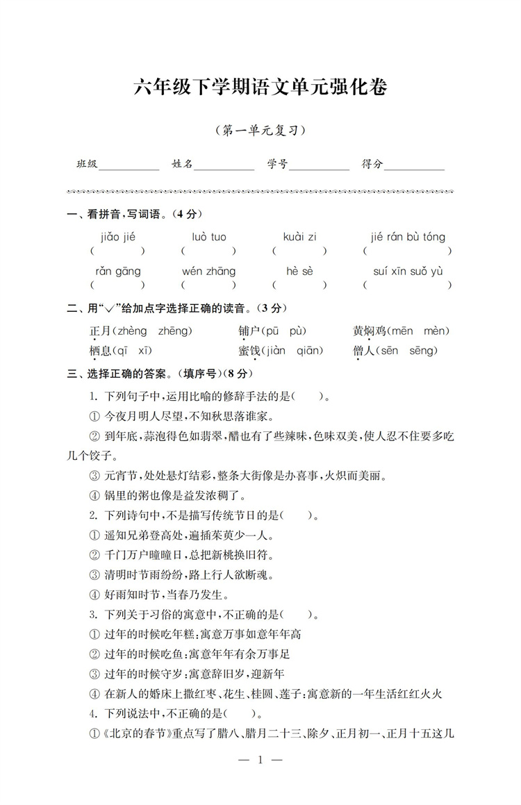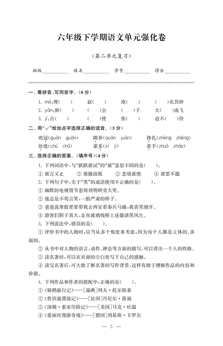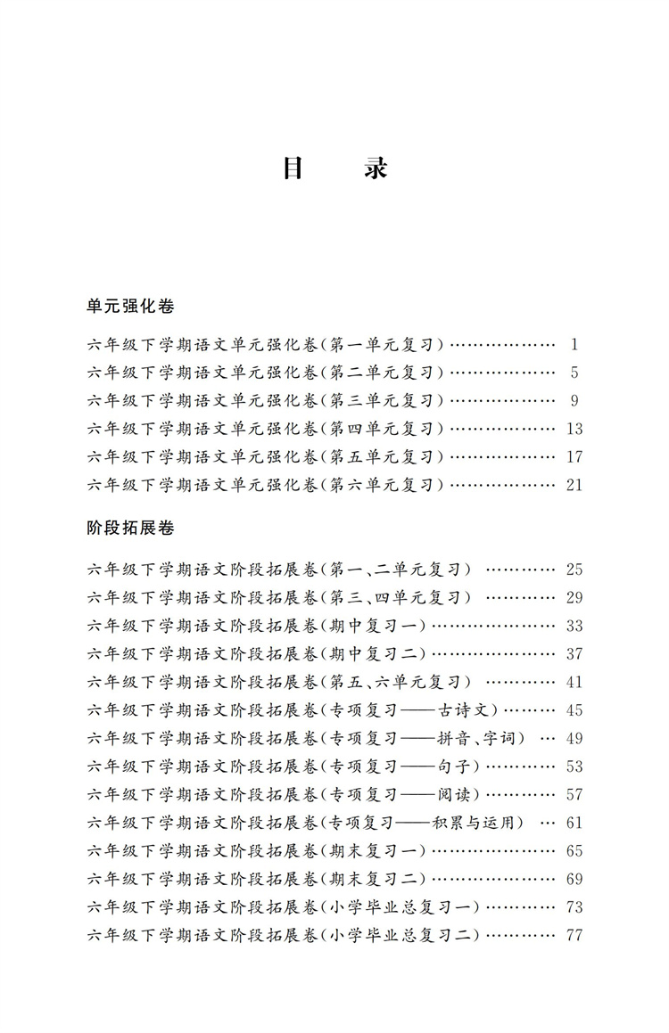 2023春 小学语文强化拓展卷 统编版 提升版 六年级下册 含电子答案 6下 人教版 小学教辅试卷 江苏凤凰教育出版社