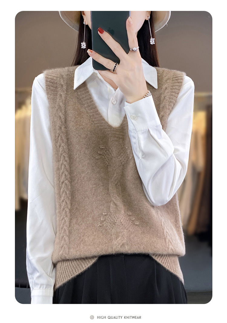春秋新款打底针织软糯质感马夹宽松V领无袖坎肩毛衣QH-RY370