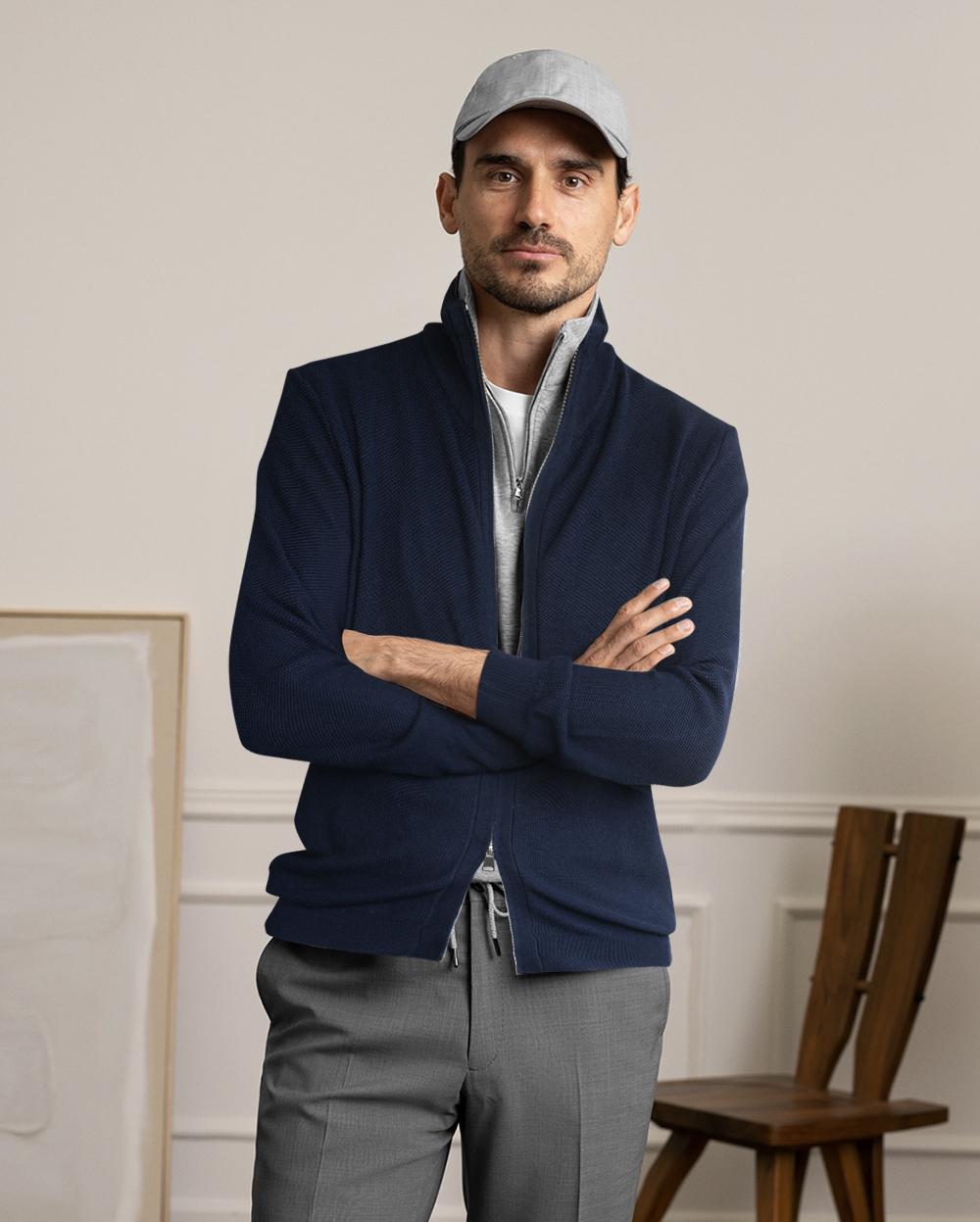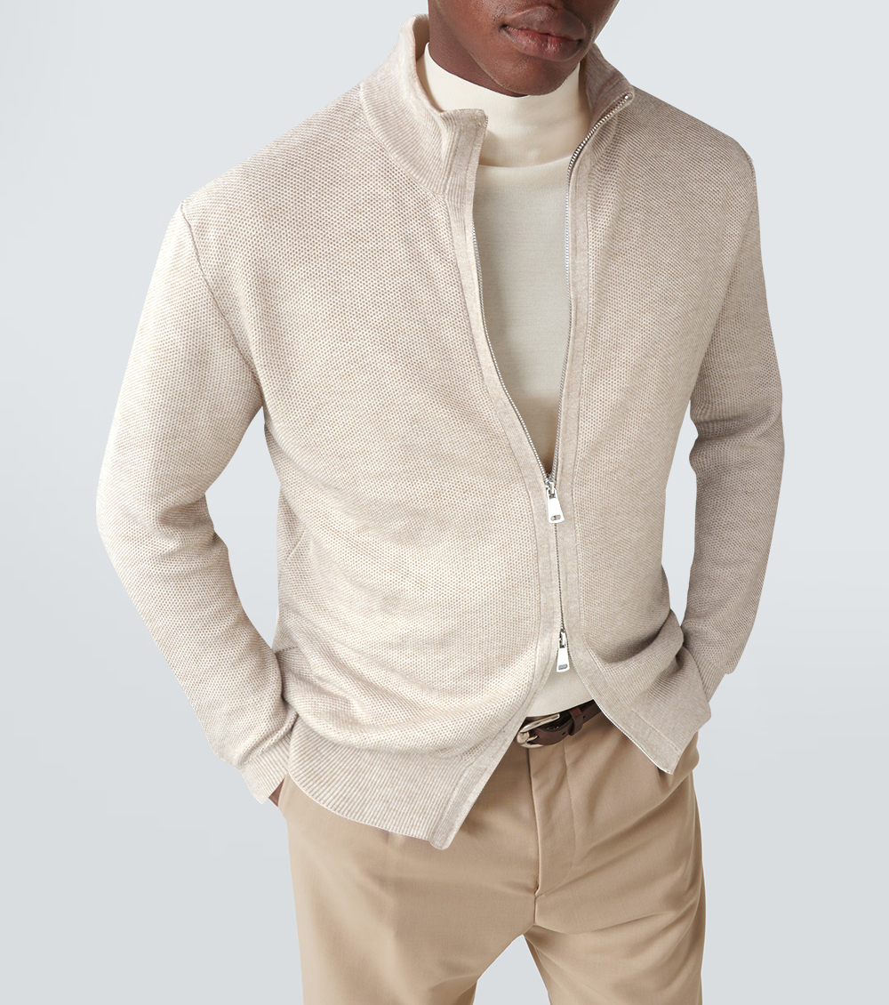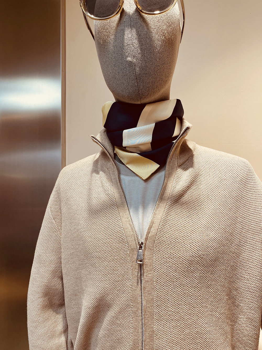 这款意大利开衫羊毛和桑蚕丝的优良品质相匹配。