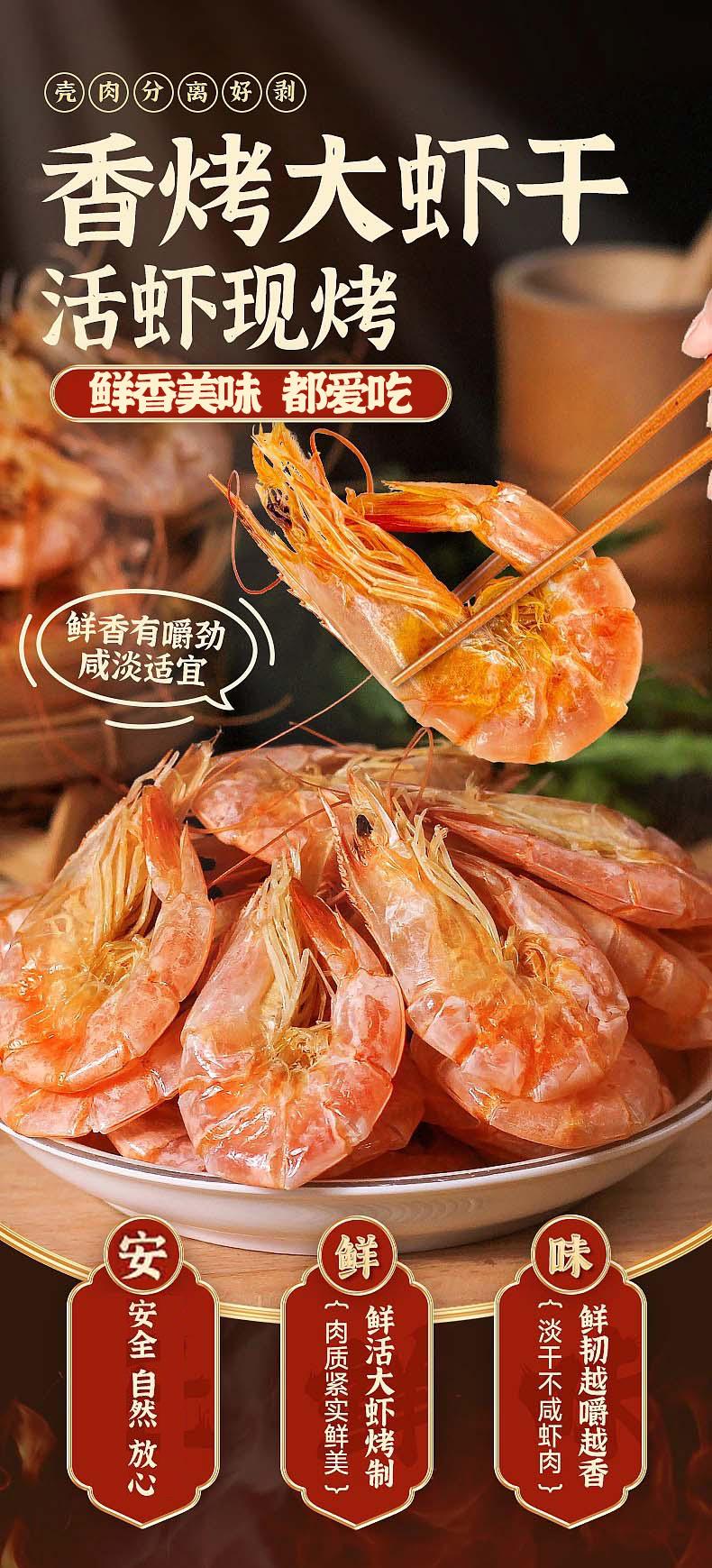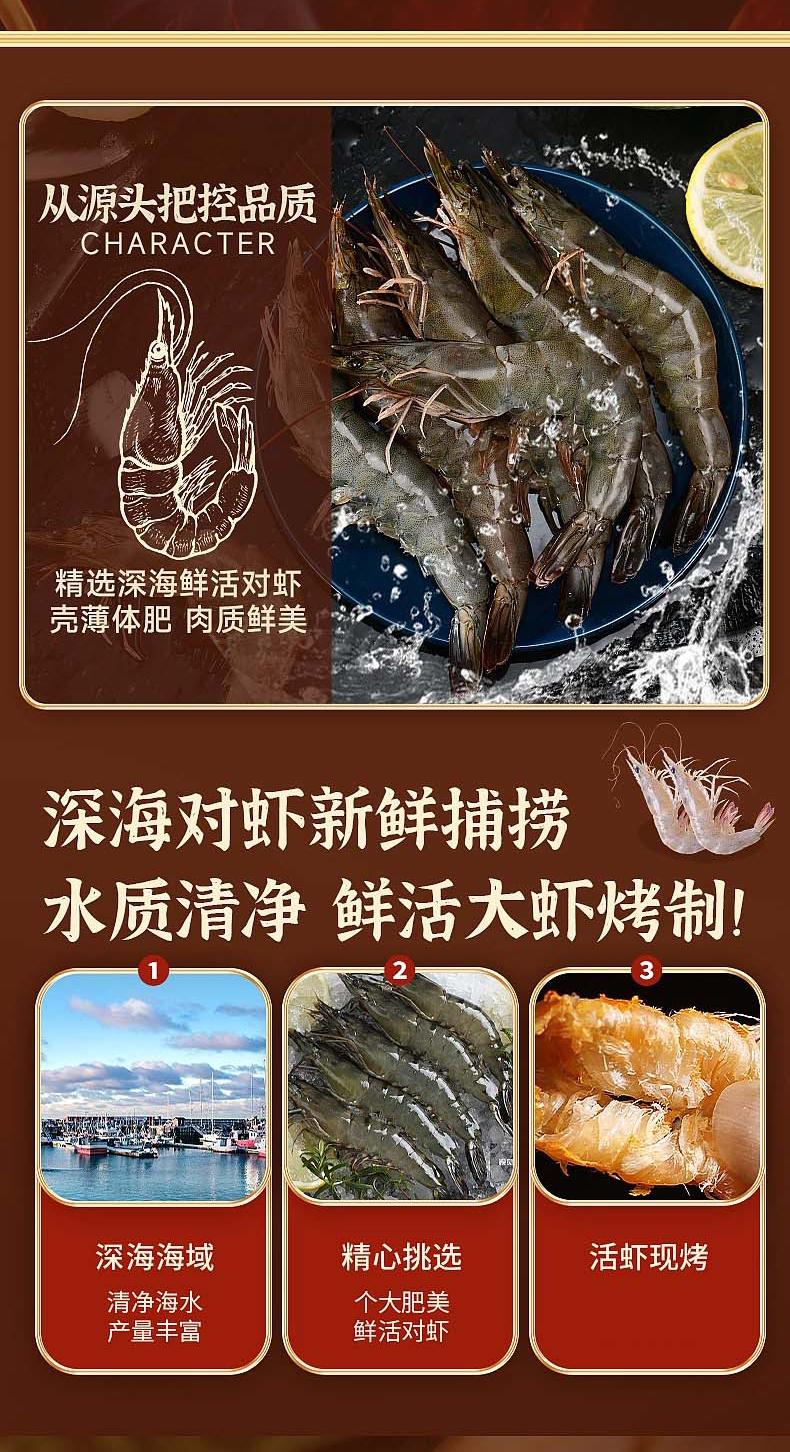 【顺丰冷链发货】香烤大虾干 活虾现烤 鲜香美味 新鲜捕捞深海鲜活对虾 鲜香不腥