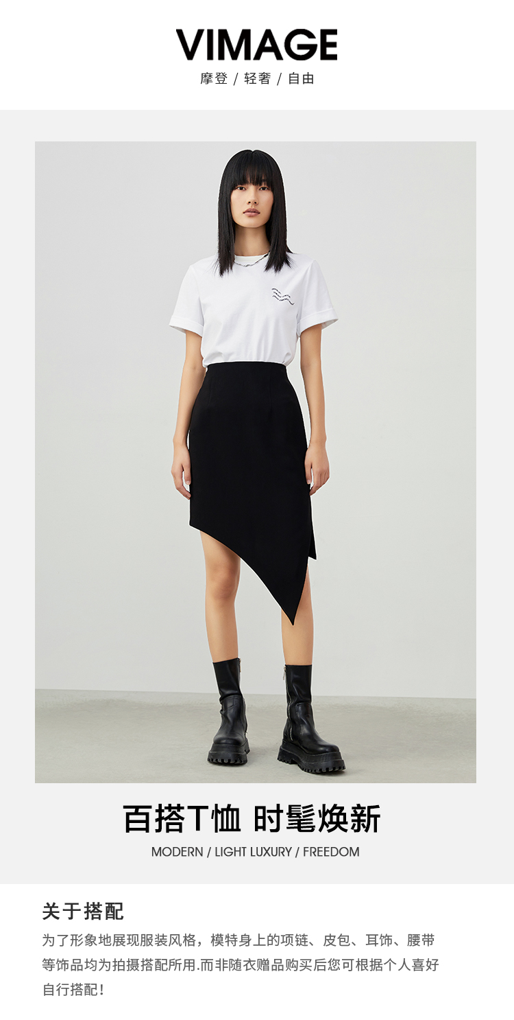 VIMAGE纬漫纪春夏季新款设计感修身短袖小上衣女T恤V1702312