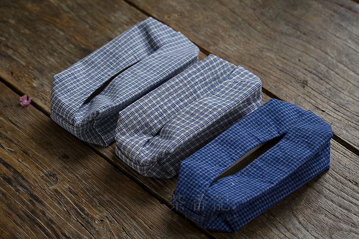 三种蓝染老土布纸巾盒各有风格,随心喜爱,
