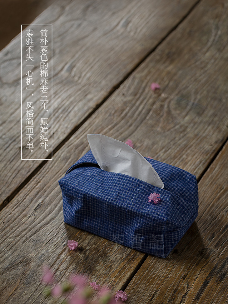 ◎植物蓝染老土布手工缝制纸巾盒◎