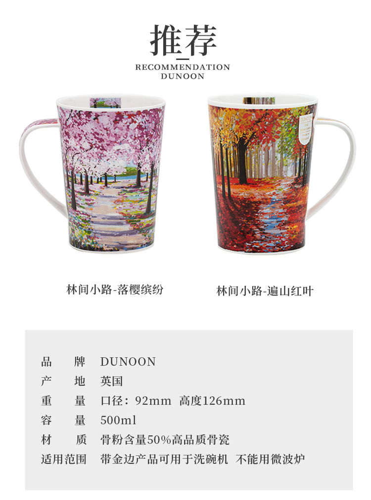 英国原产丹侬Dunoon骨瓷水杯茶杯马克杯ARGYLL型 林间小道