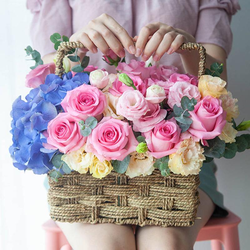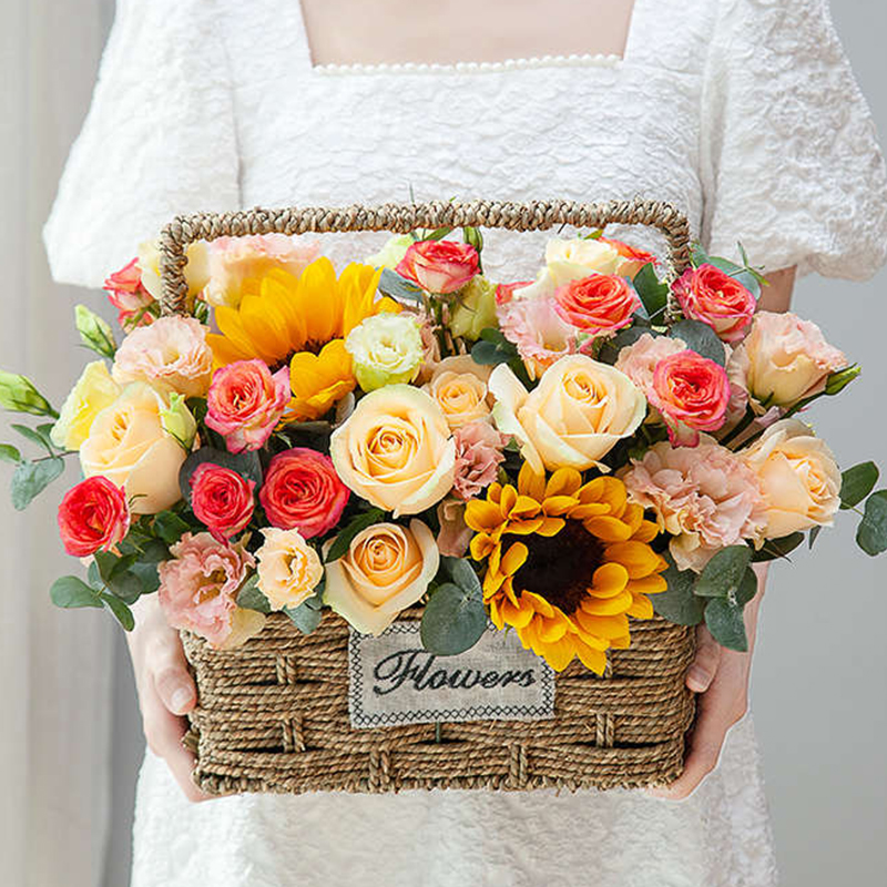 玫瑰混绣球向日葵搭手提花篮送妈妈老师长辈生日母亲节感恩节毕业谢师祝福感恩节送花