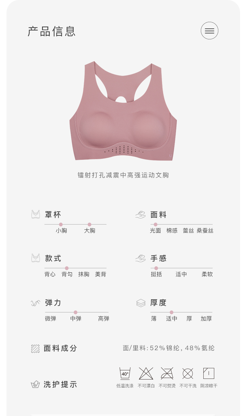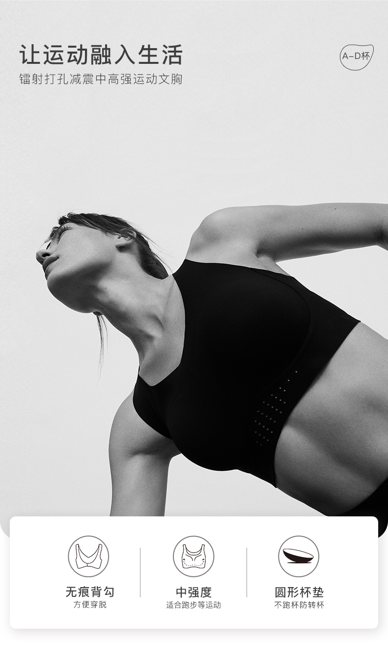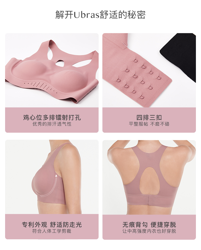 Ubras镭射打孔高强度运动文胸无钢圈运动内衣女瑜伽健身短胸衣