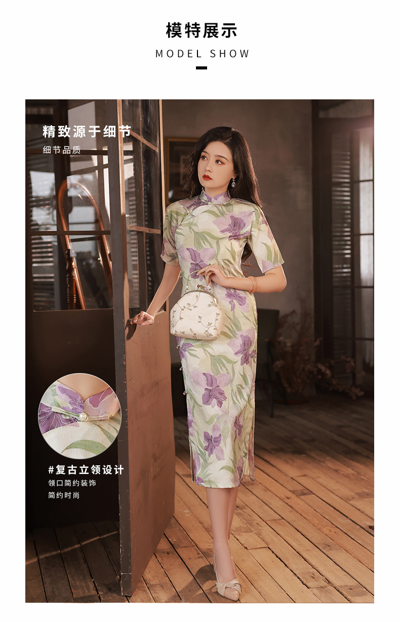 YG-2170春夏新款复古民国风真开大花旗袍气质优雅温婉淑女范