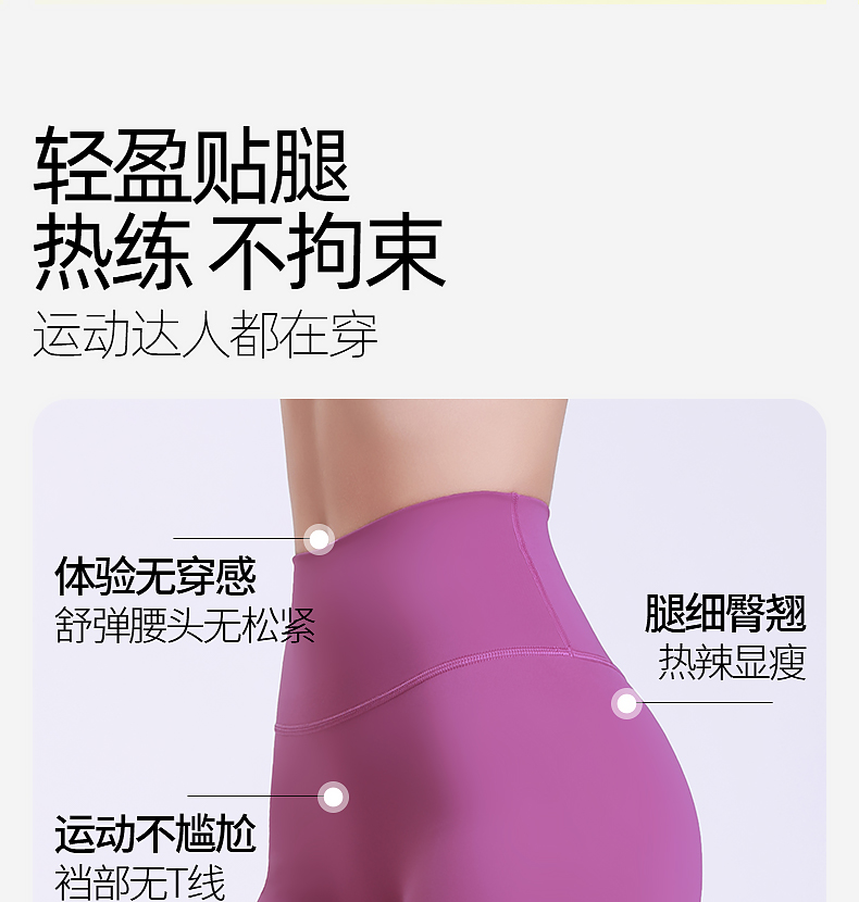 梵美人 F06022 瑜伽三分裤 裸感 无松紧 无尴尬线