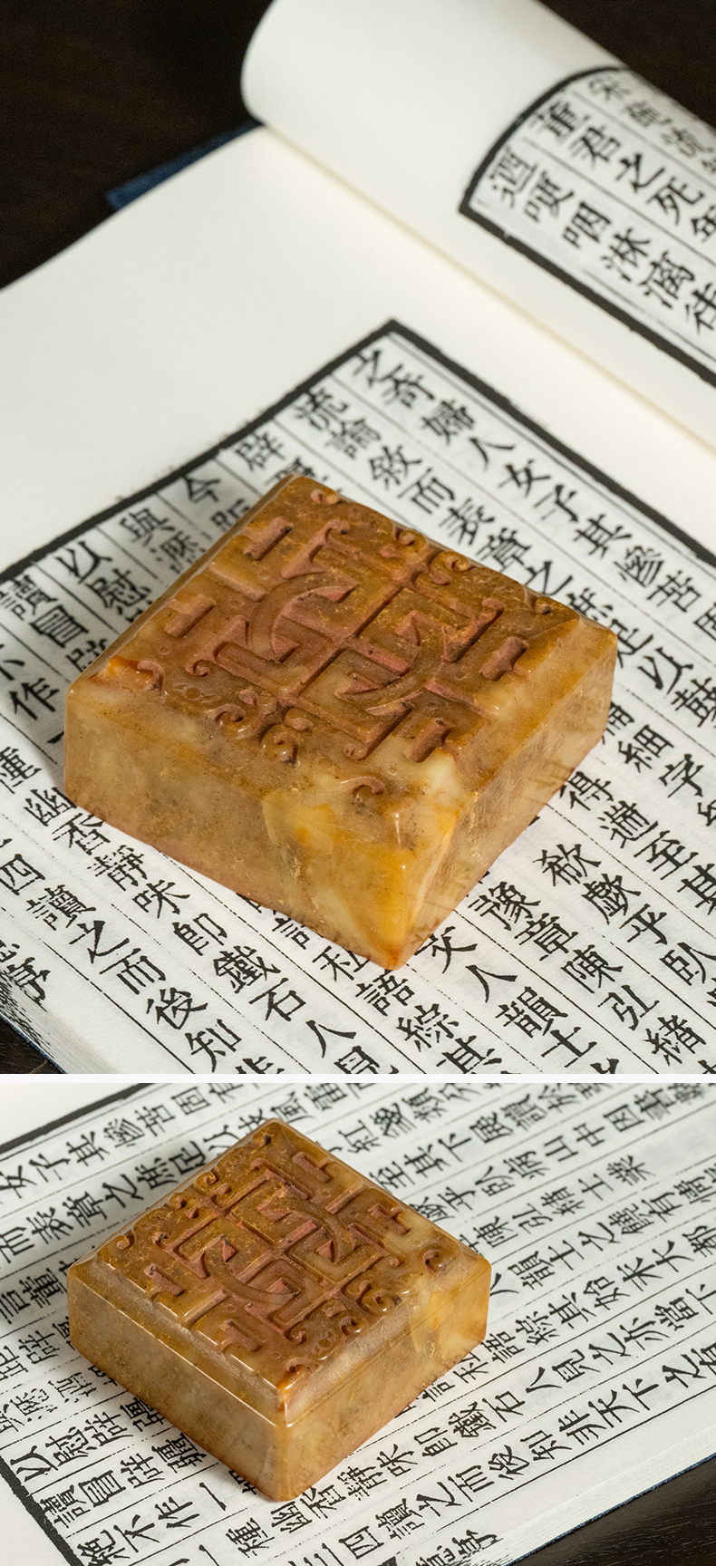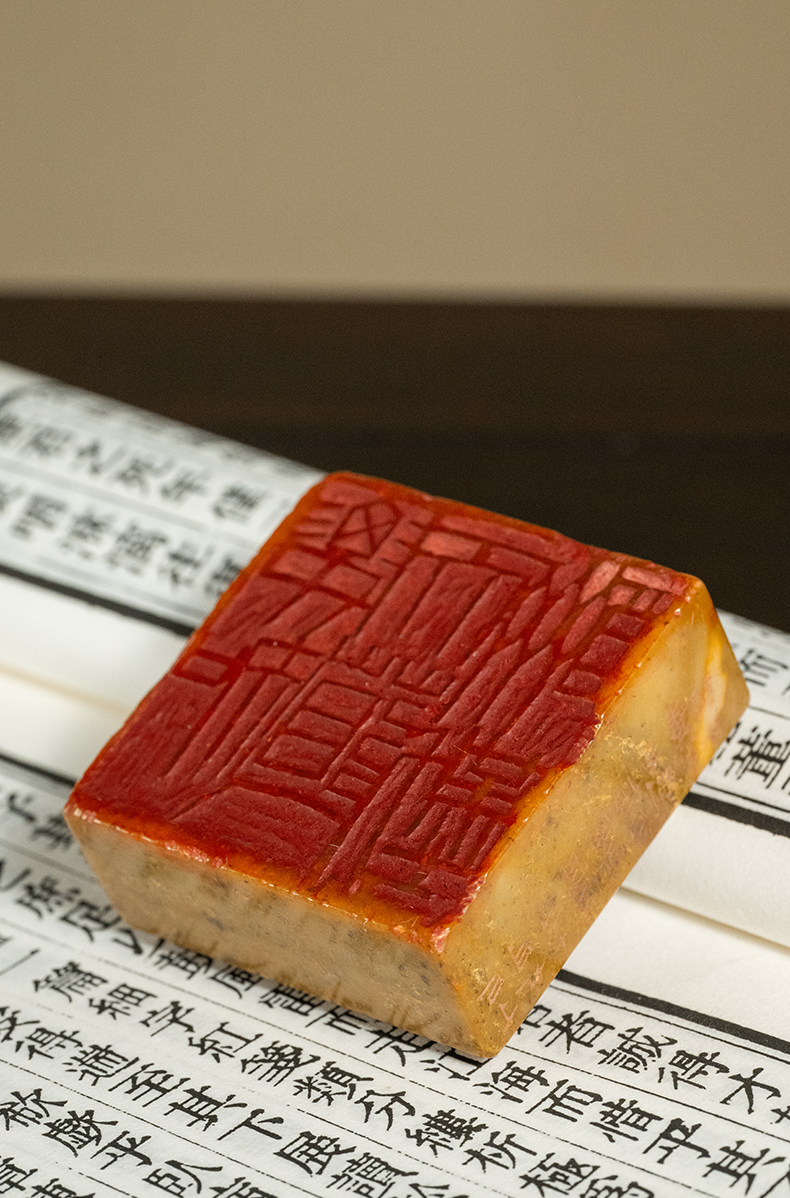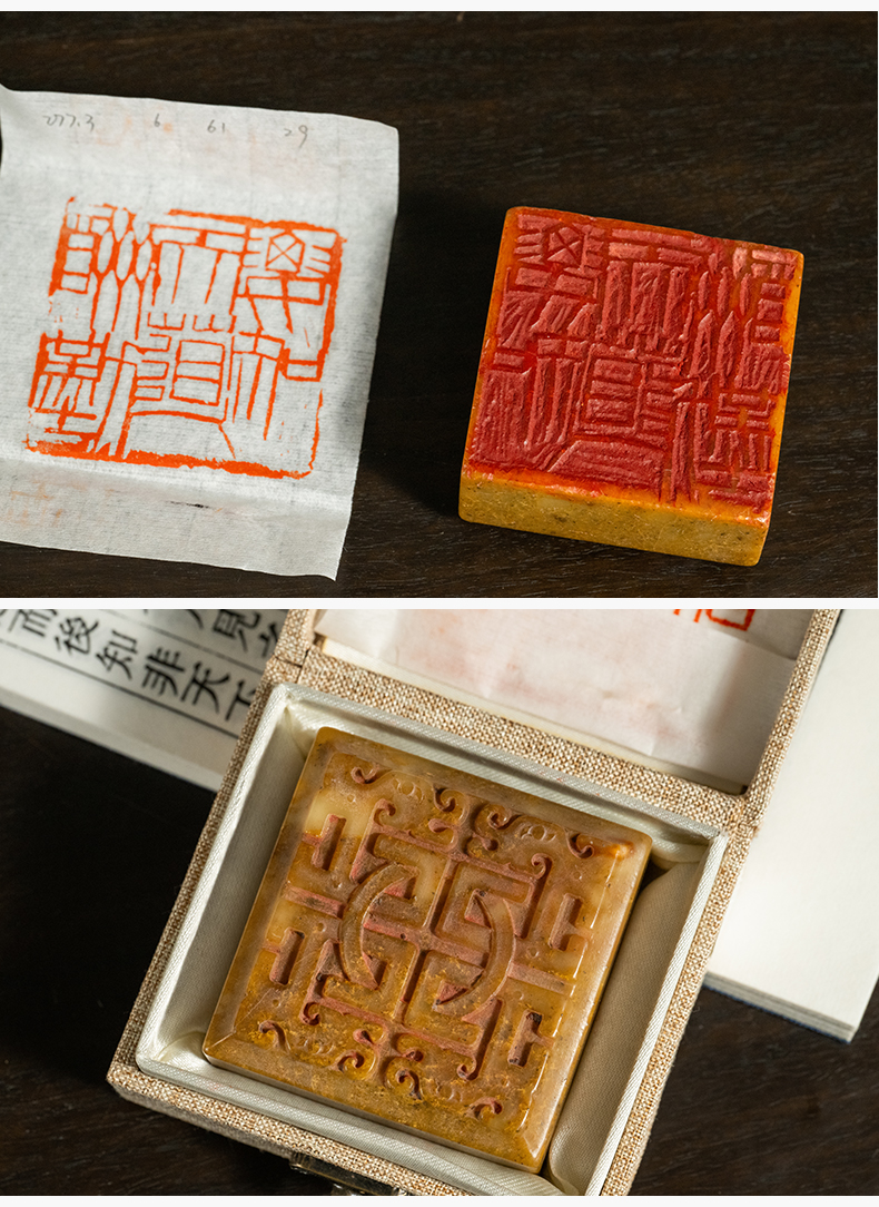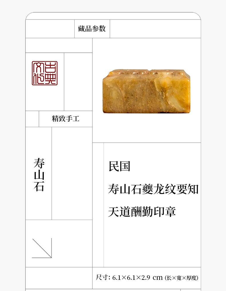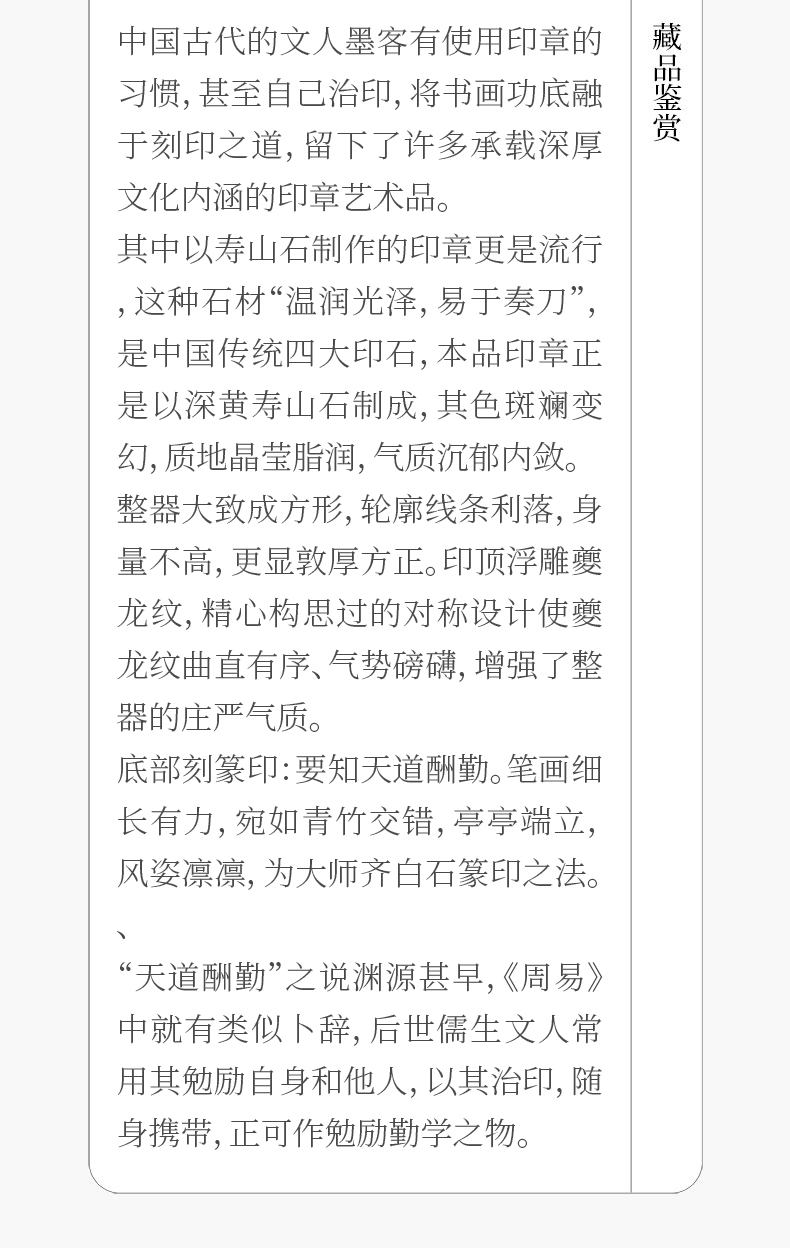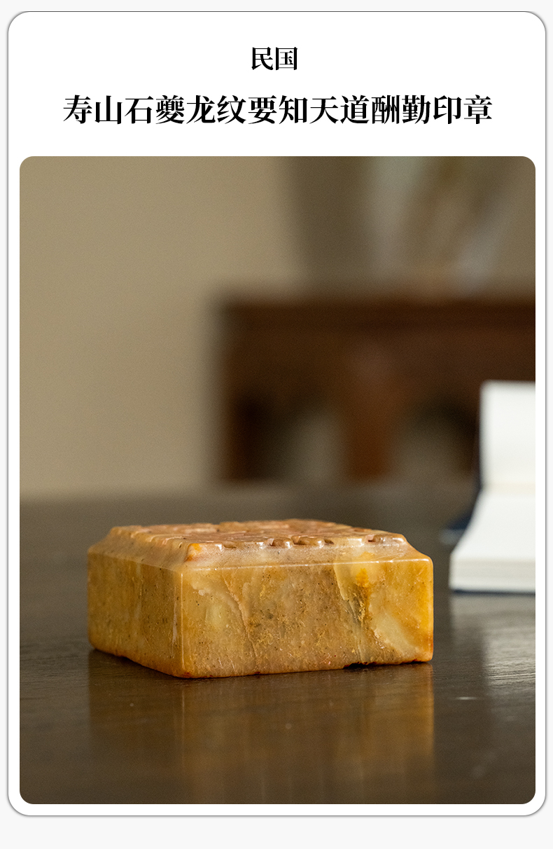民国 寿山石夔龙纹要知天道酬勤印章
