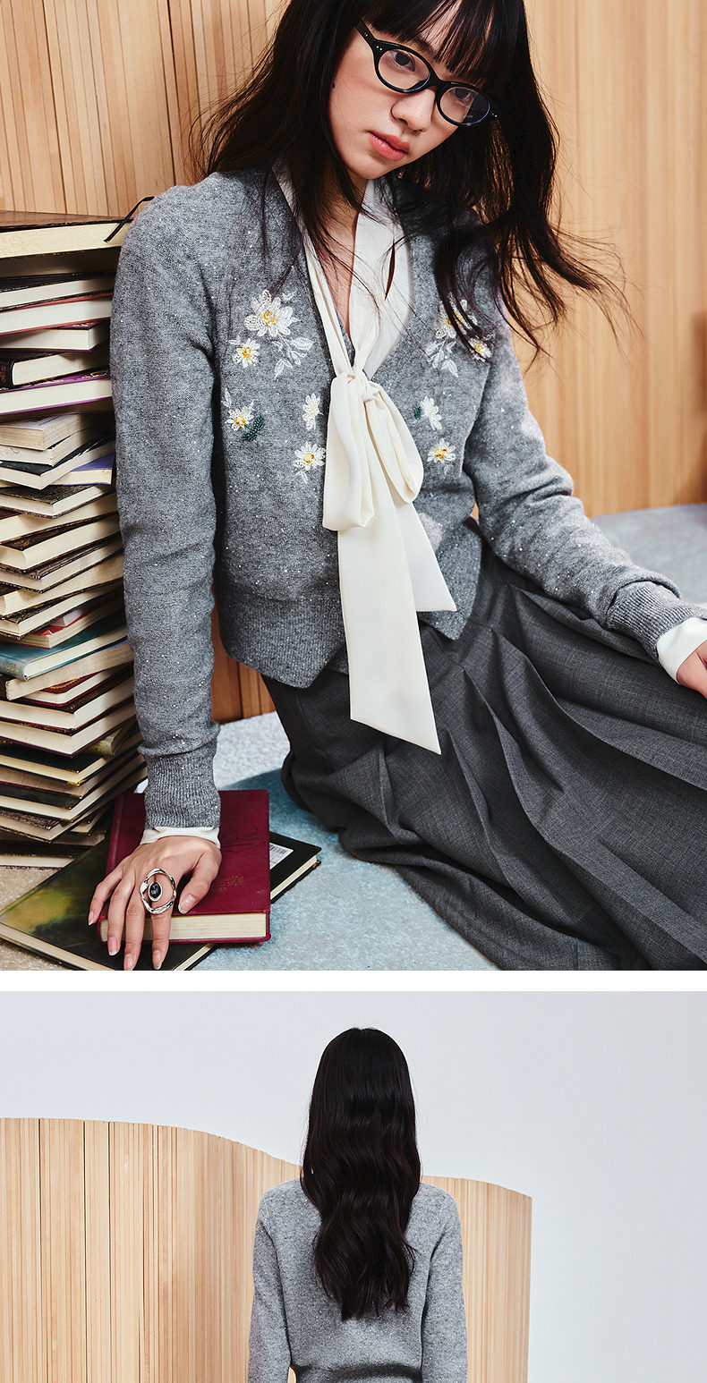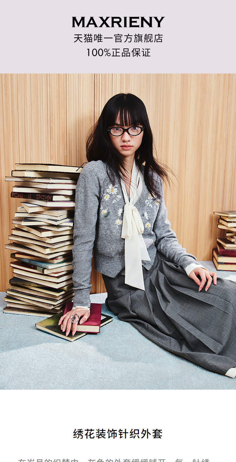 玛克门店发货:MAXRIENY精致优雅复古绣花钉珠针织外套(货号:MC86JA035)