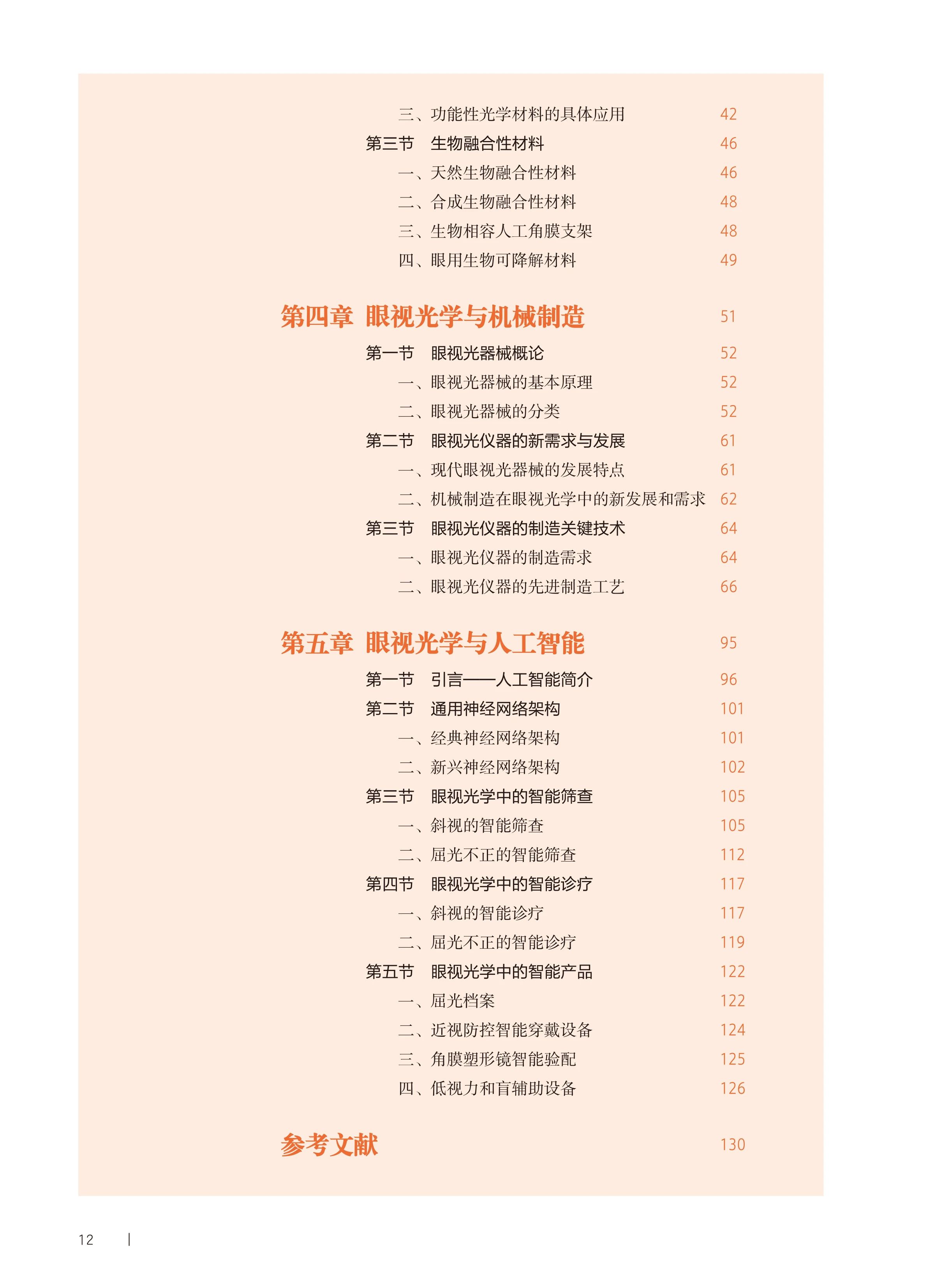 眼视光学正逐渐发展成视觉科学的主要学科,目前新医科和工科紧密联系、合作。本书通过五个章节的深入探讨,系统梳理了眼视光学从基础科学研究到临床诊疗的历程,以及眼视光学与工学结合的革新实践。内容结构清晰,既有历史沿革的回顾,也有未来发展方向的展望。通过阅读本书,眼科医师、视光师能了解到眼视光学与传统工科结合的最新概念与理念。