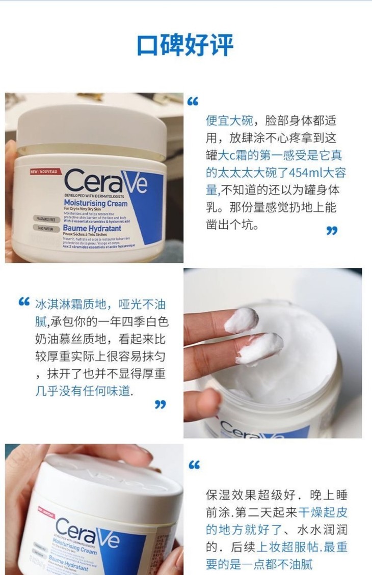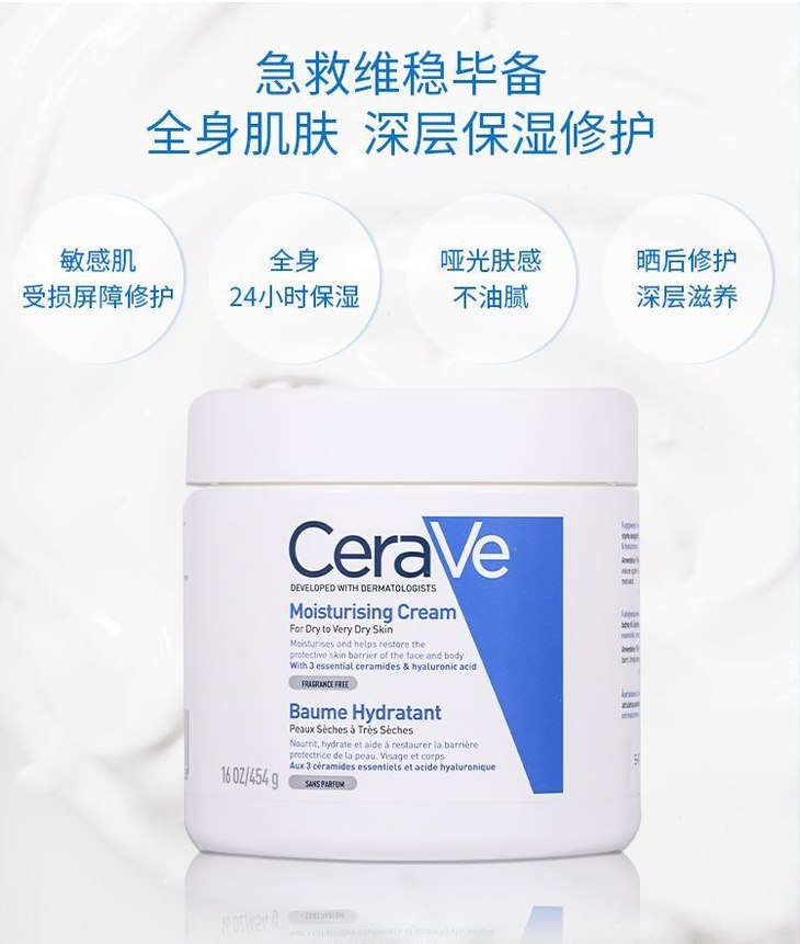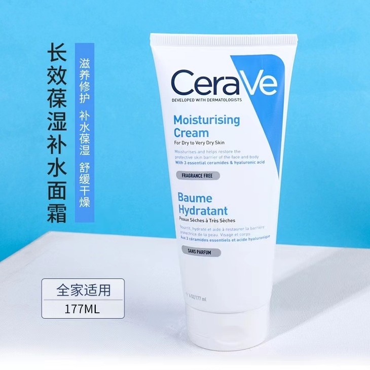 👑CERAVE 适乐肤全天候补水保湿霜#177ml /#454ml 👍主打3重神经酰胺,能够修护受损的皮肤屏障,舒缓肌肤,泛红,干燥肌肤! 🍦冰激淋质地,不厚重不油腻,好推开,敏感肌人群也可使用噢! ✅效果和质地双加持,成分简单安全,温和配方 🙌比较适合偏干或极干性肌肤适用~秋冬必入