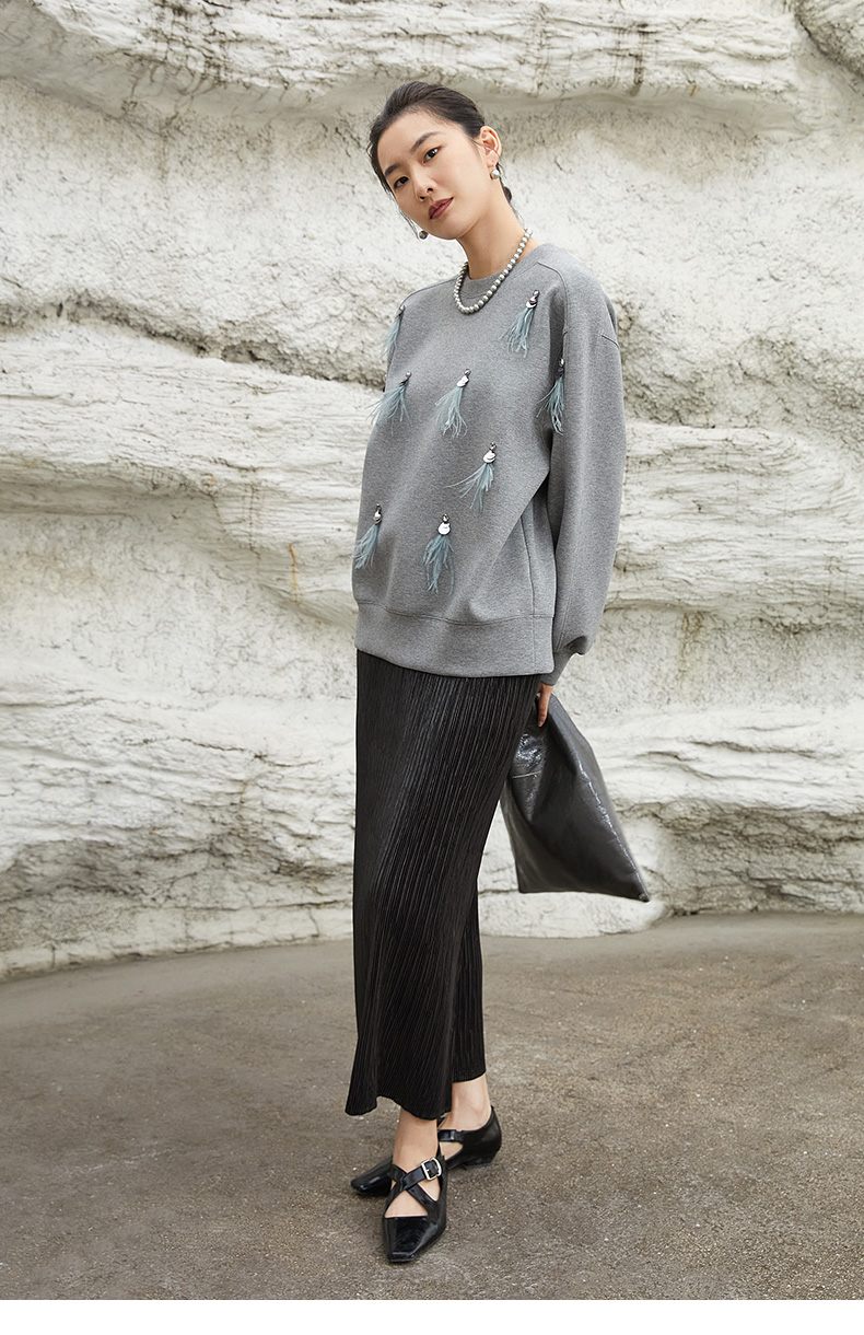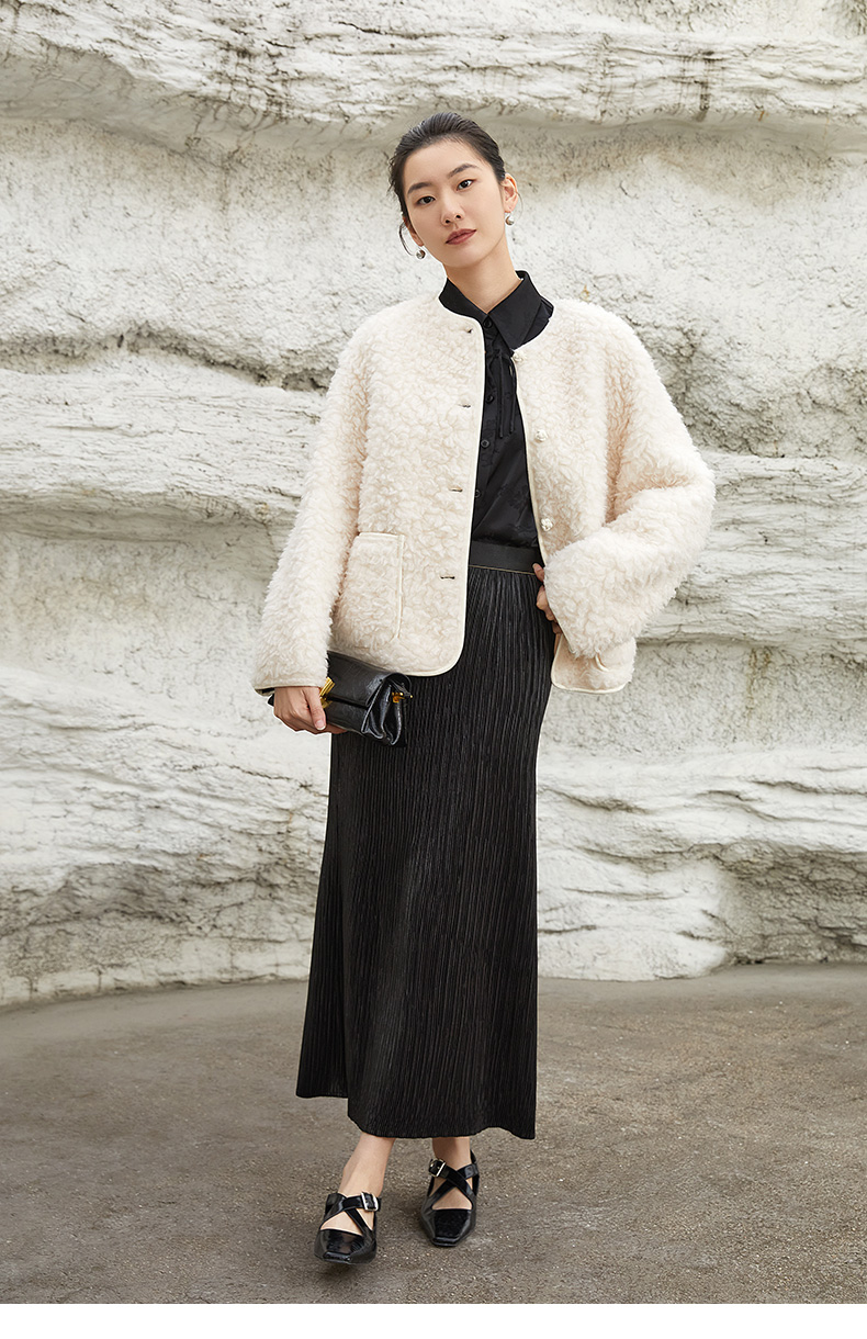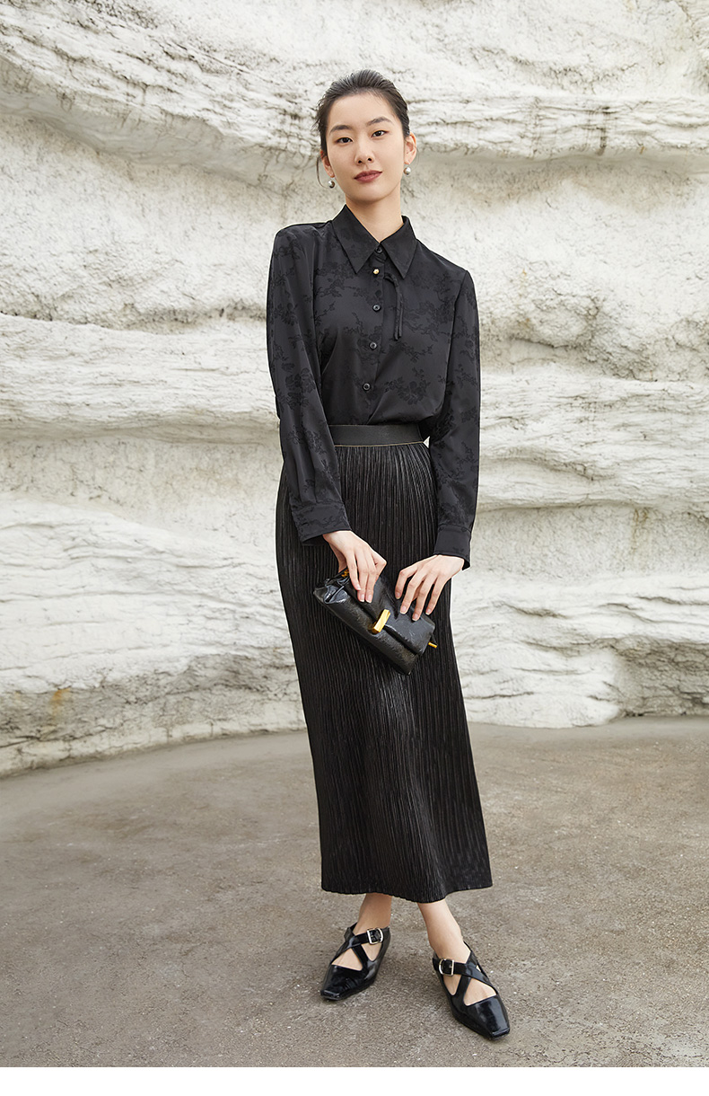 黑色百褶丝绒半身裙,高腰设计 + 垂坠质感 + 优雅剪裁,解锁冬日通勤与约会的复古气质与穿搭层次感