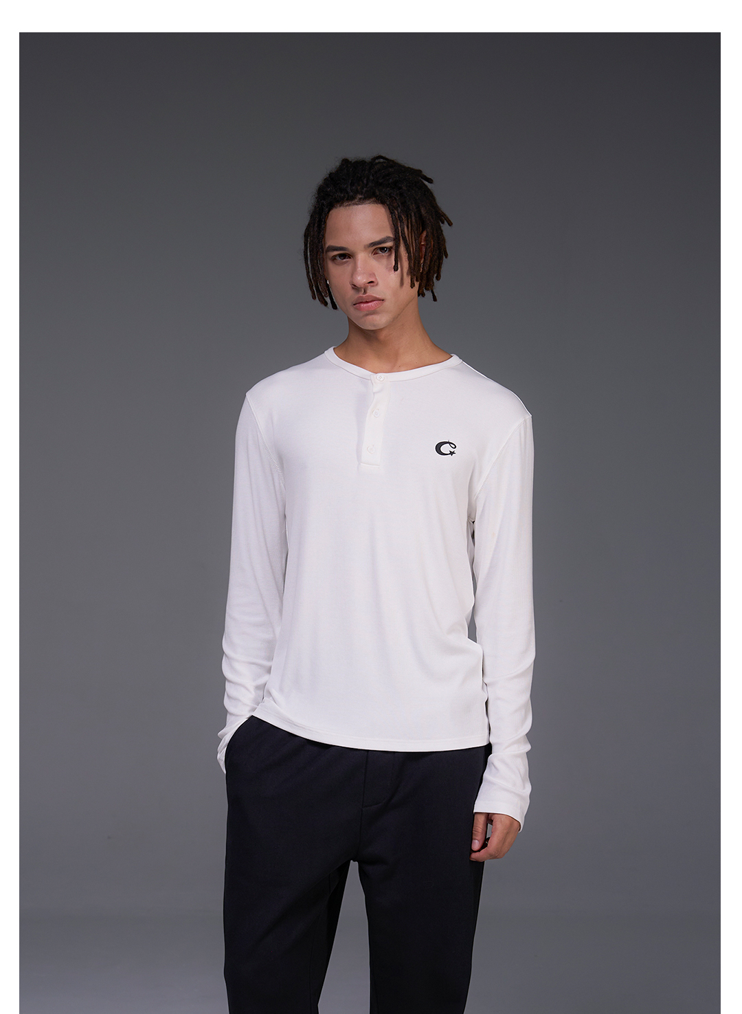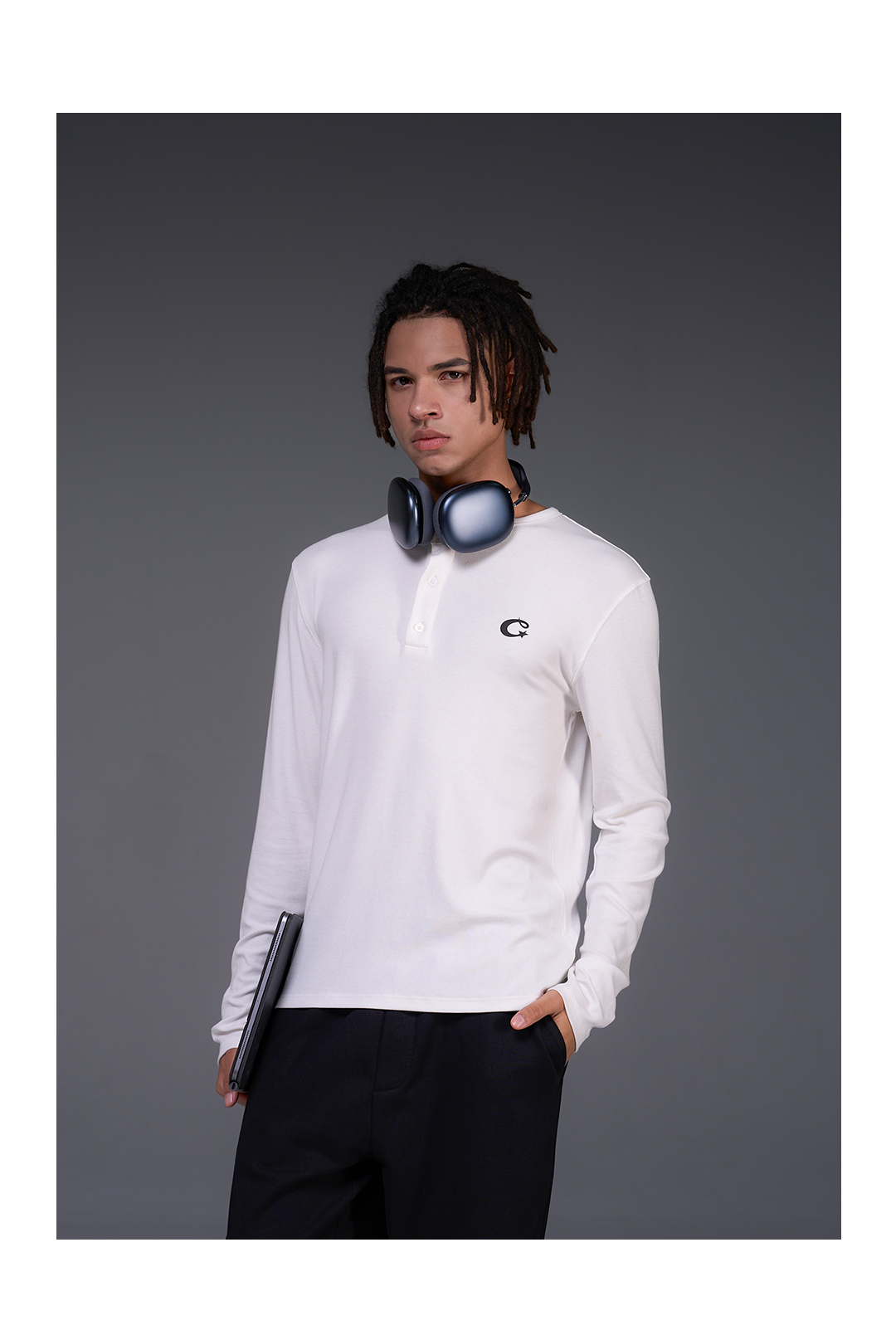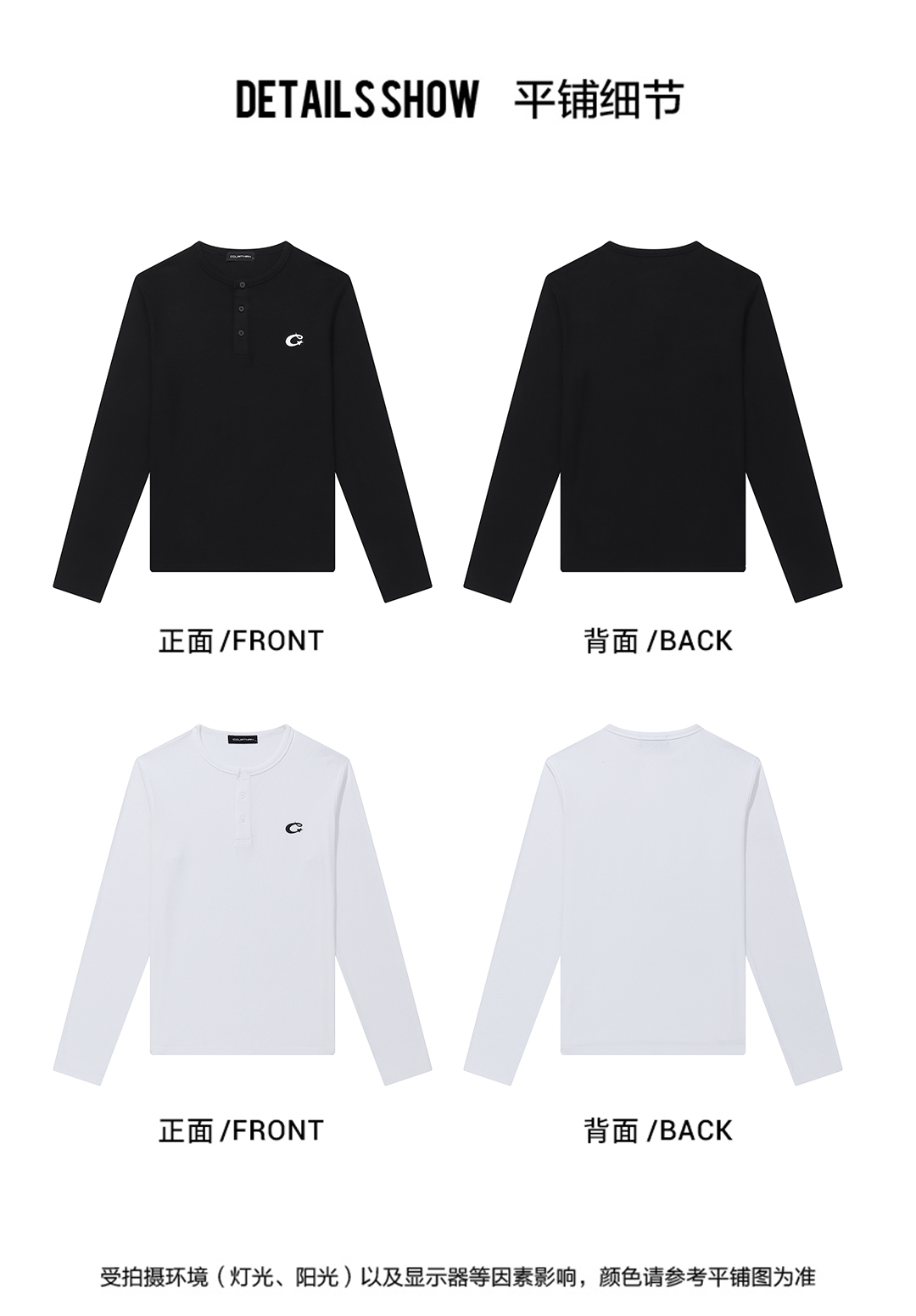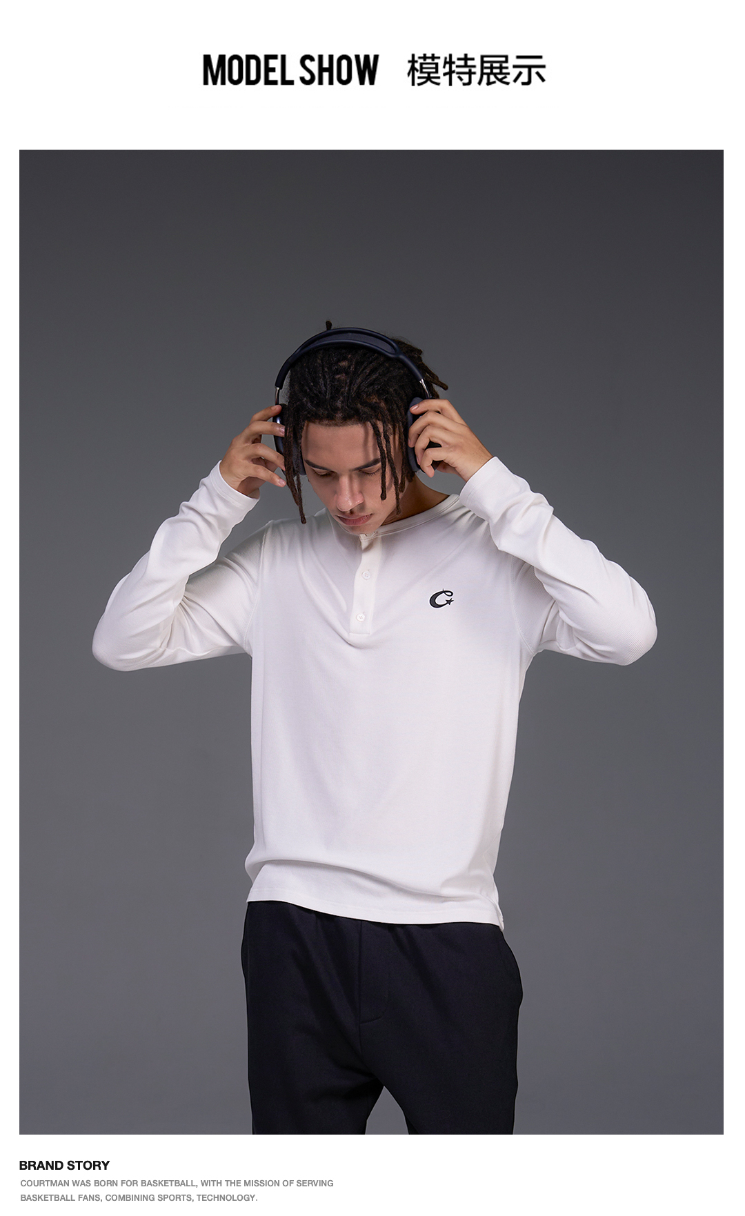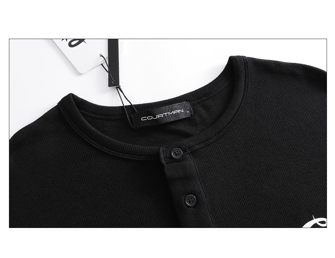 COURTMAN野球帝软糯丝滑螺纹坑条亨利领长袖T恤秋季新品情侣百搭