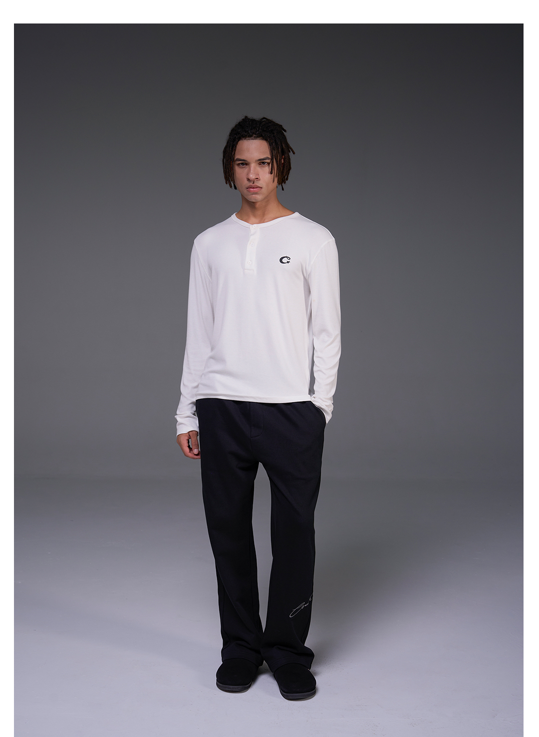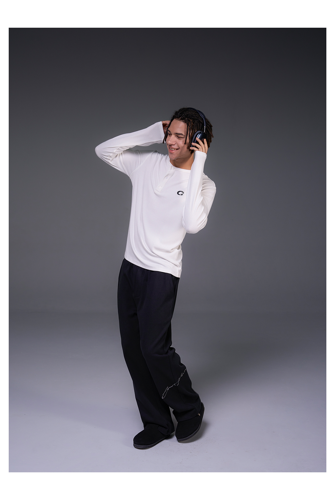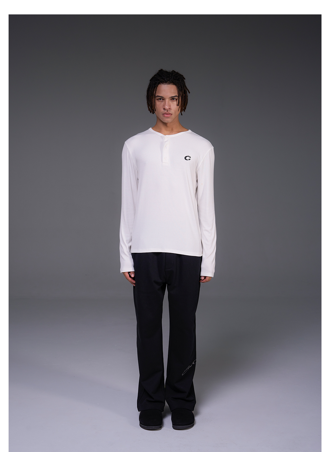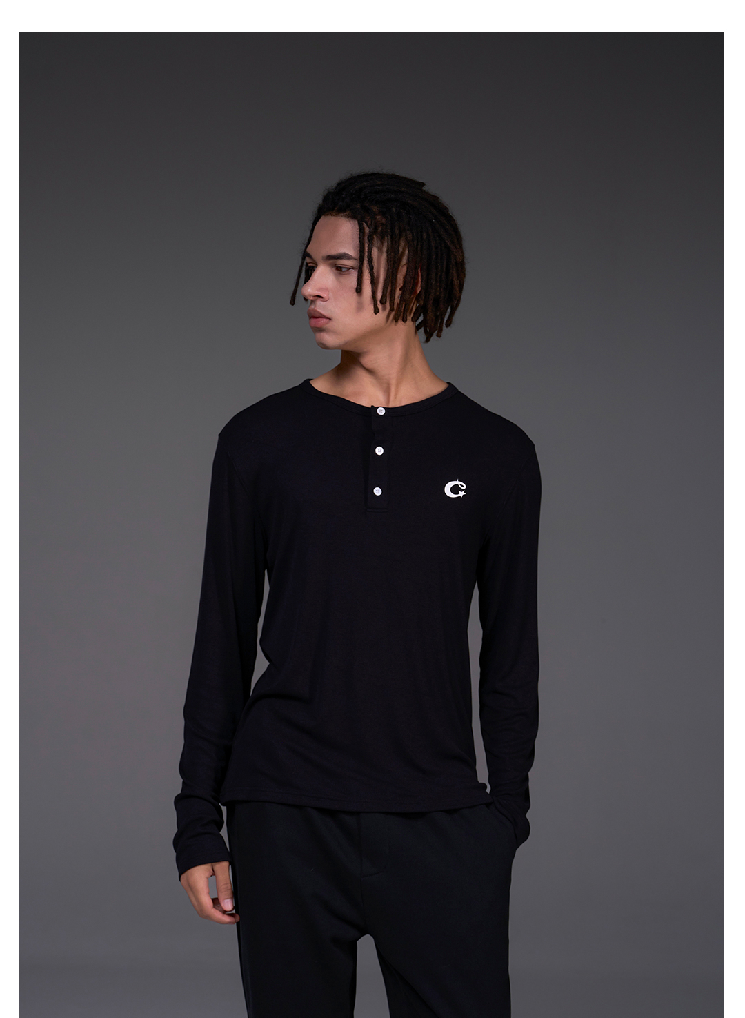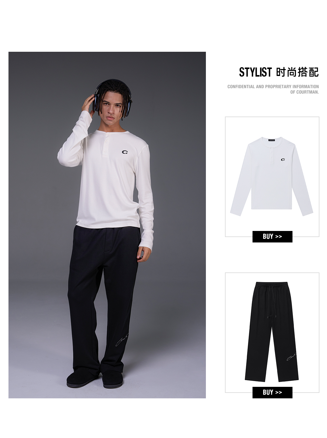 COURTMAN野球帝软糯丝滑螺纹坑条亨利领长袖T恤秋季新品情侣百搭