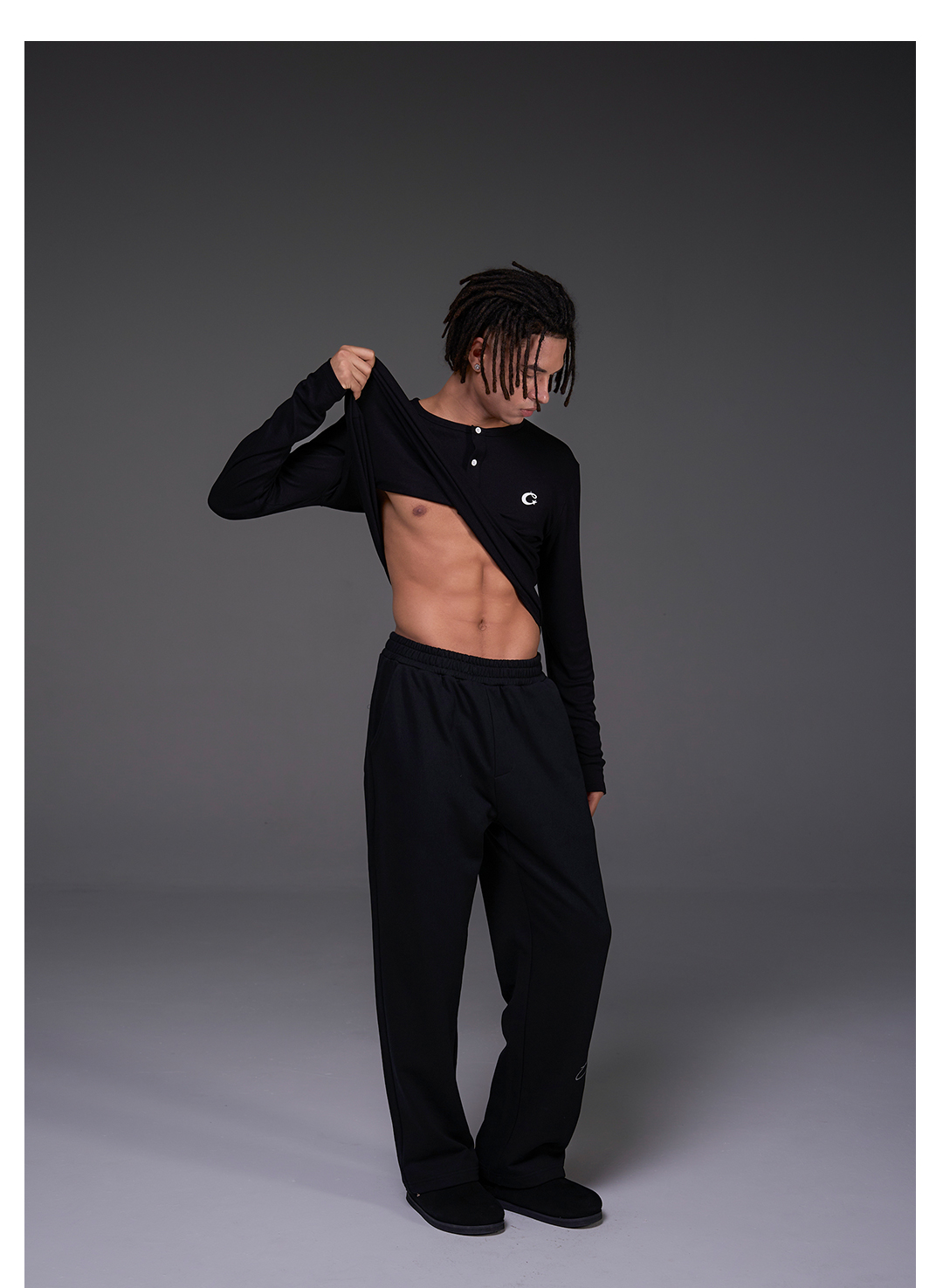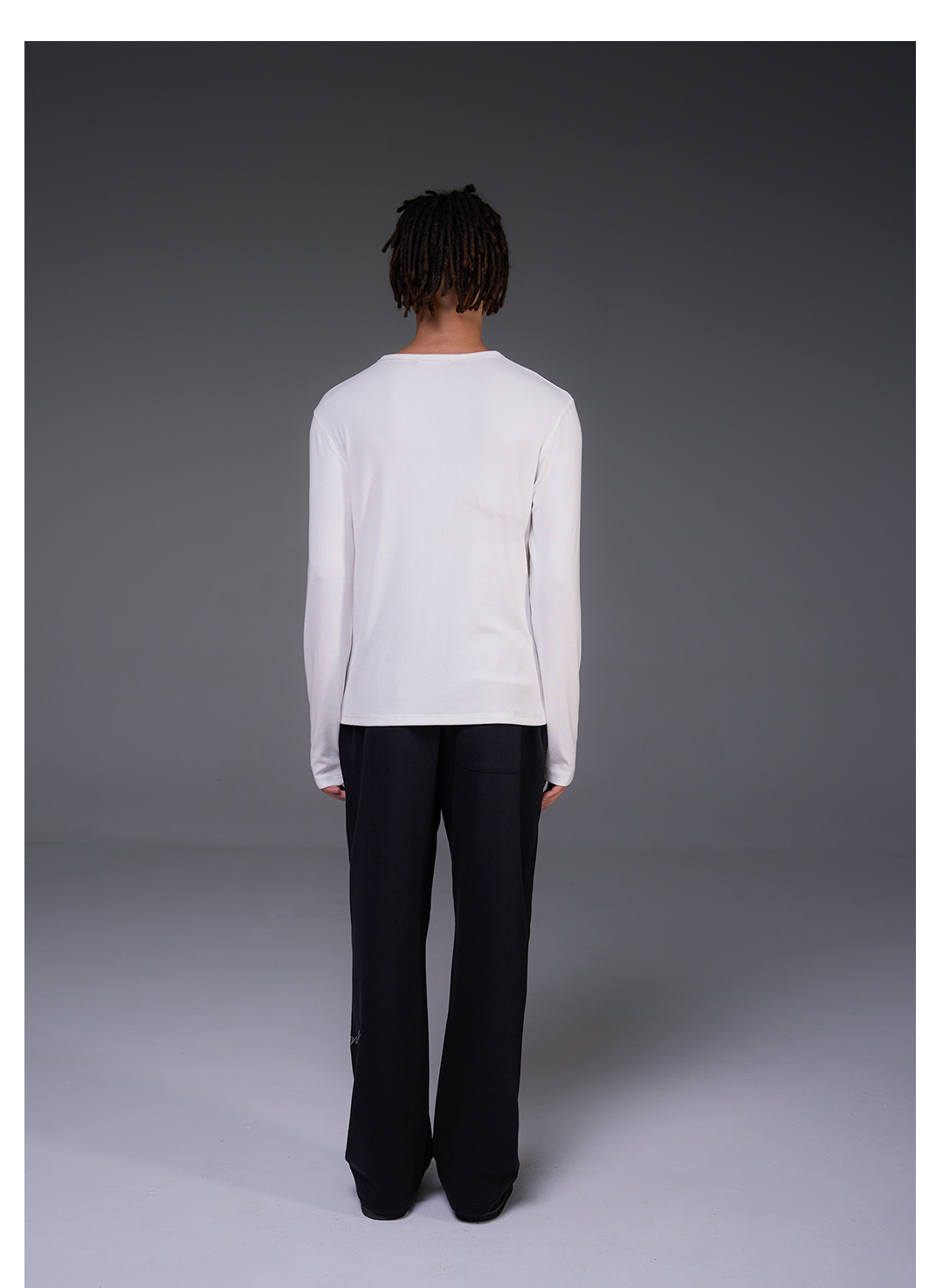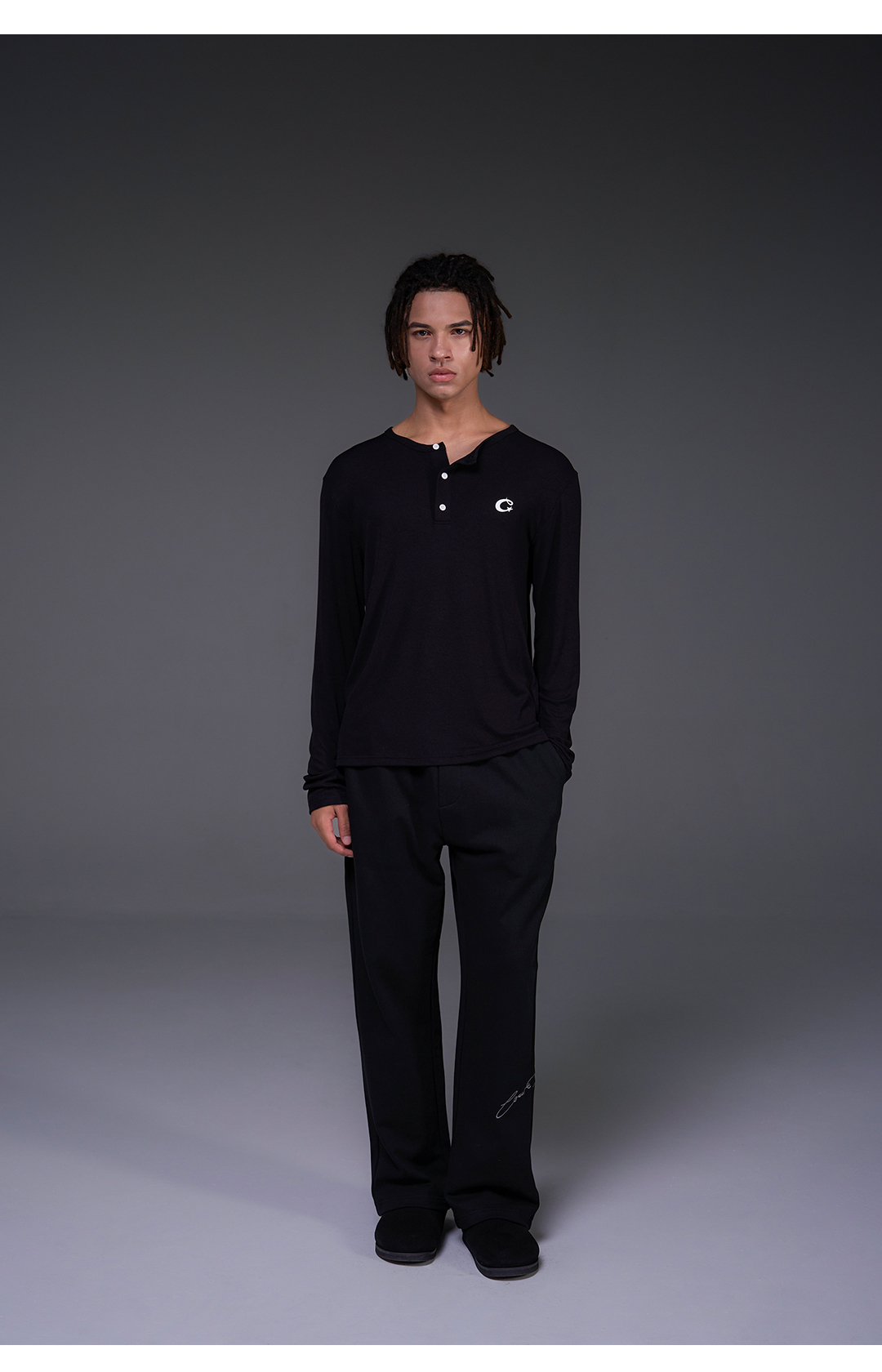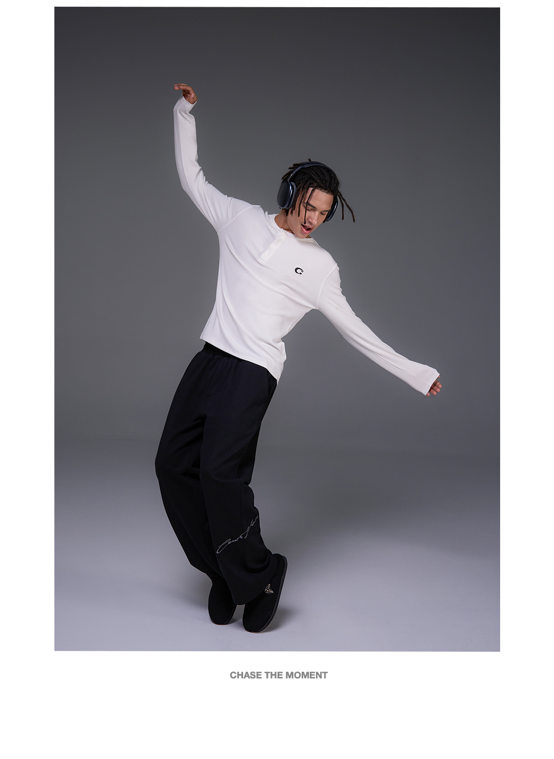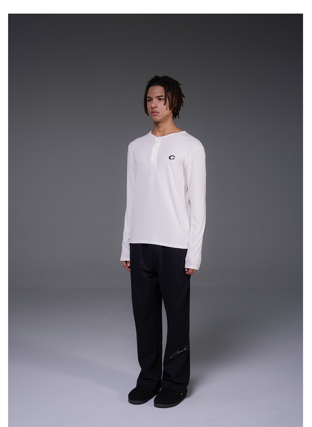 COURTMAN野球帝软糯丝滑螺纹坑条亨利领长袖T恤秋季新品情侣百搭