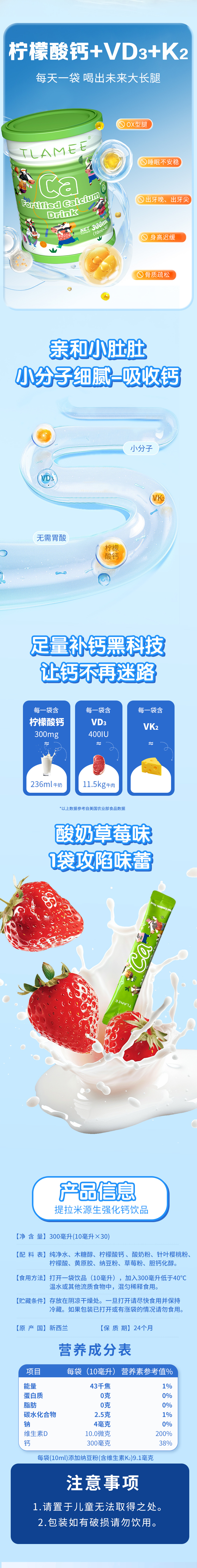 提拉米源生强化钙饮品10ml*30袋/罐
