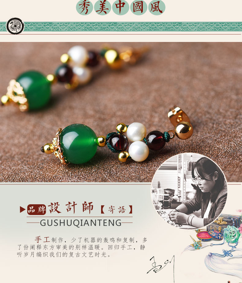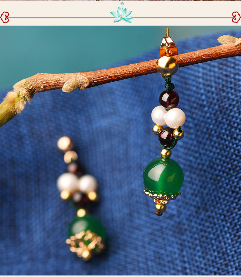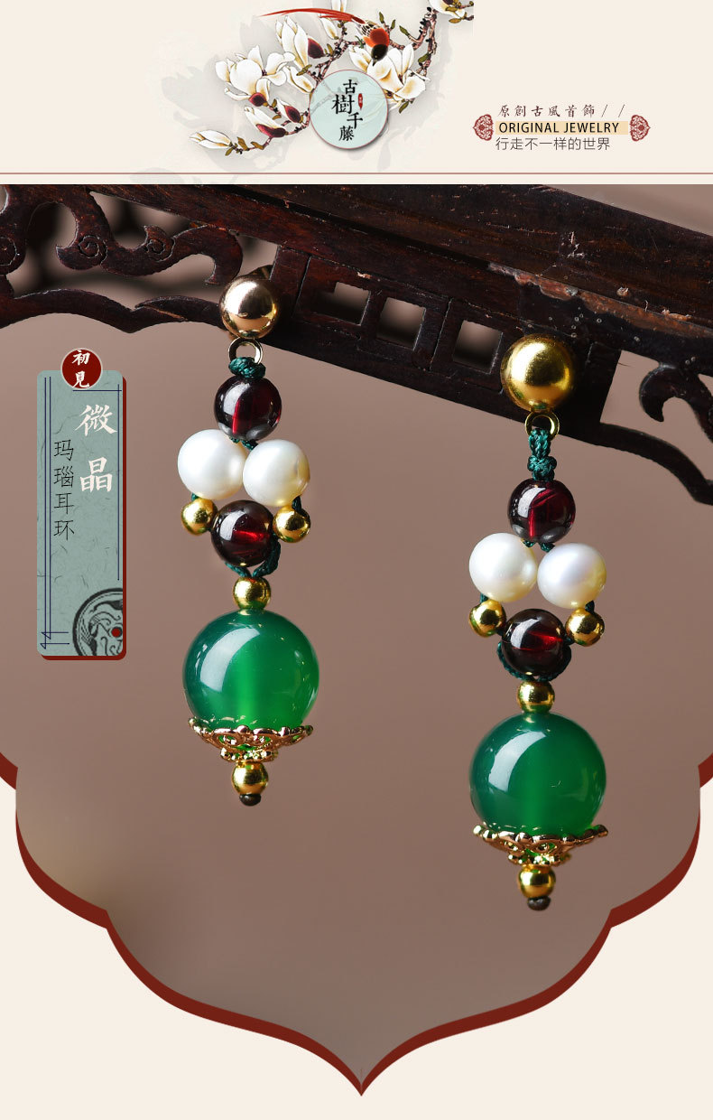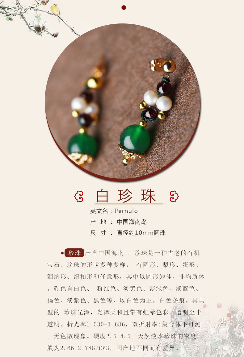 GS-03220177原创绿玛瑙红绿撞色简约个性珍珠镀14k金耳钉 TZW