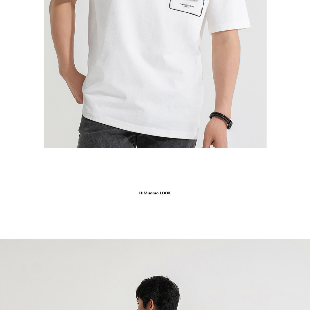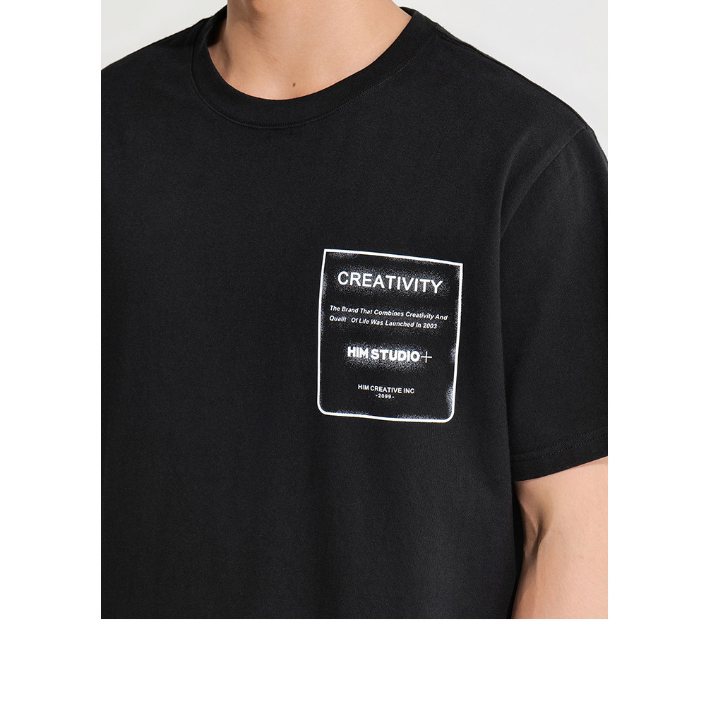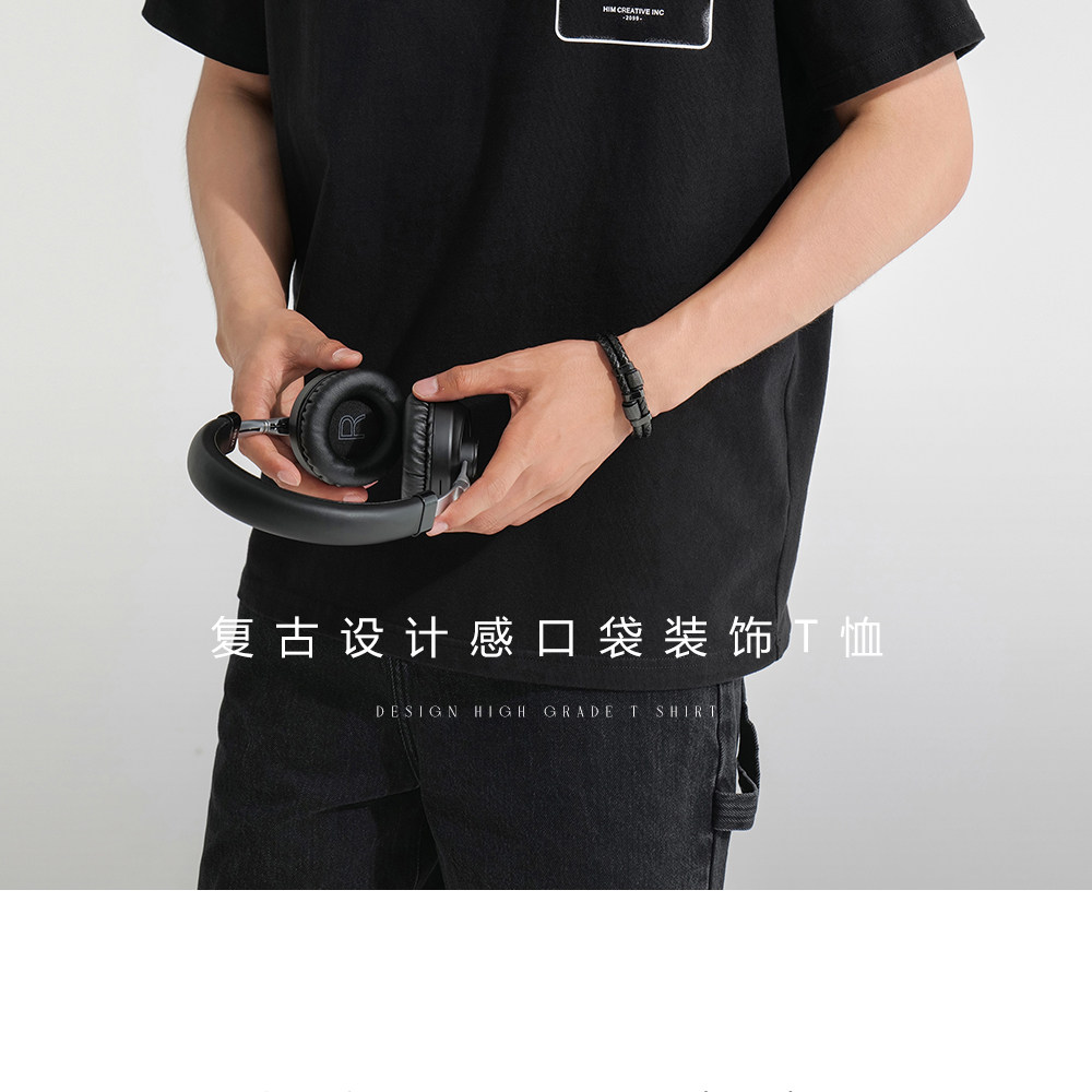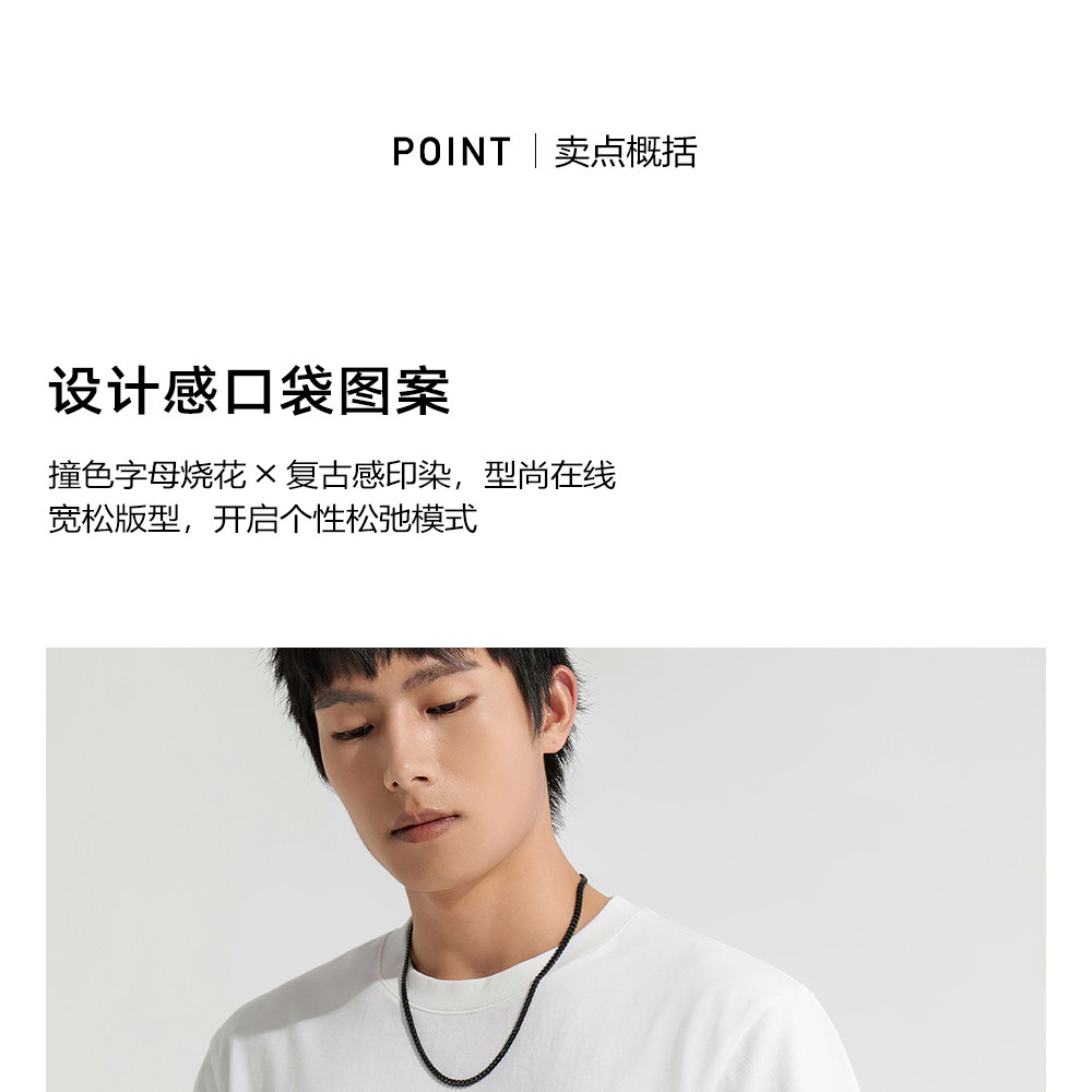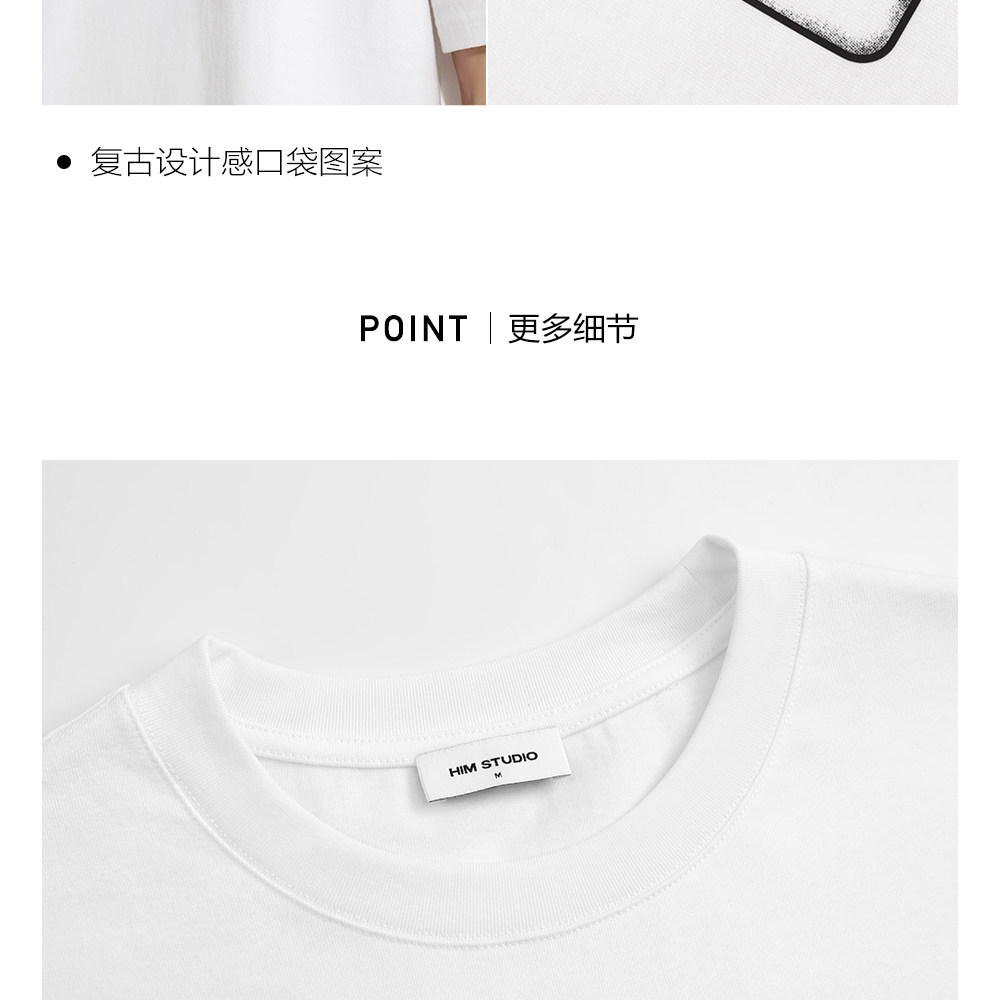 HIM漢崇 潮流简约口袋图案装饰休闲宽松圆领短袖T恤男 2026夏季