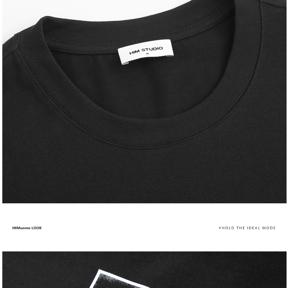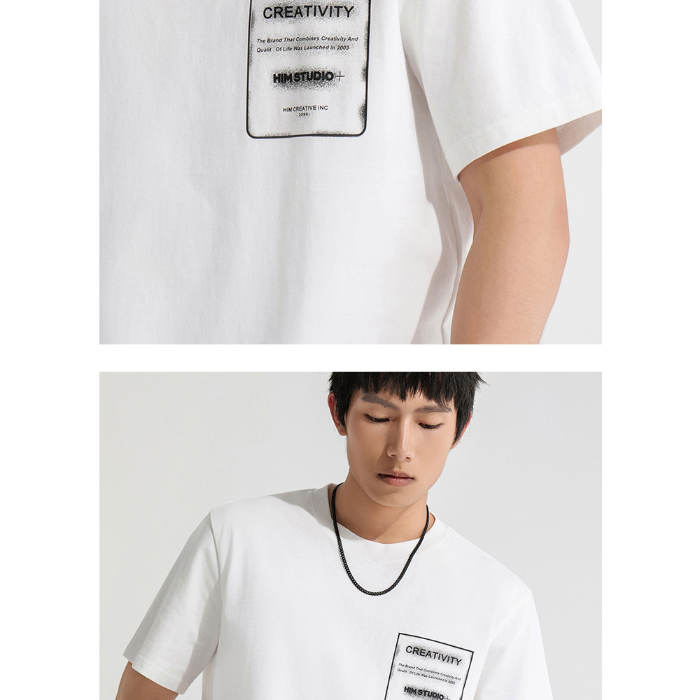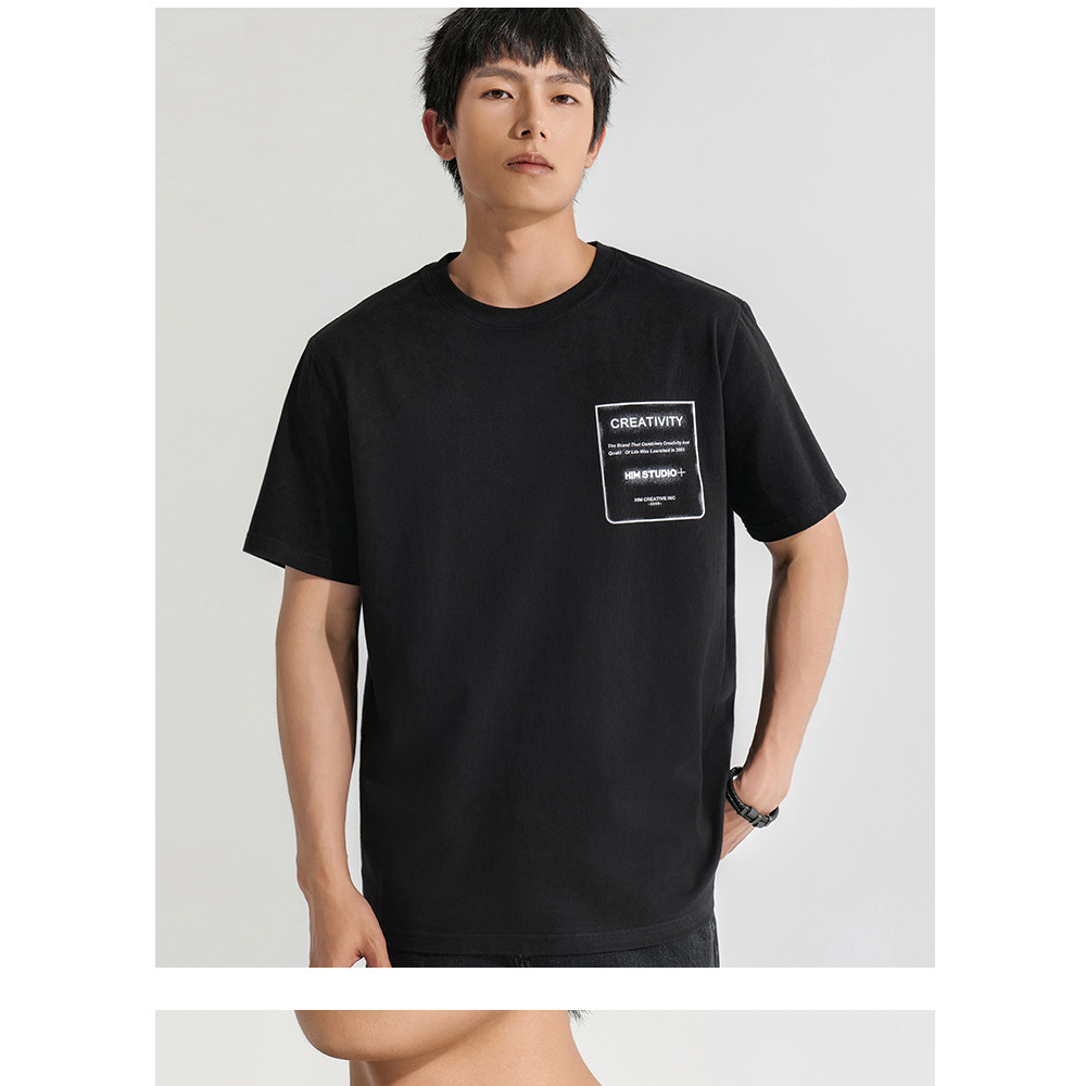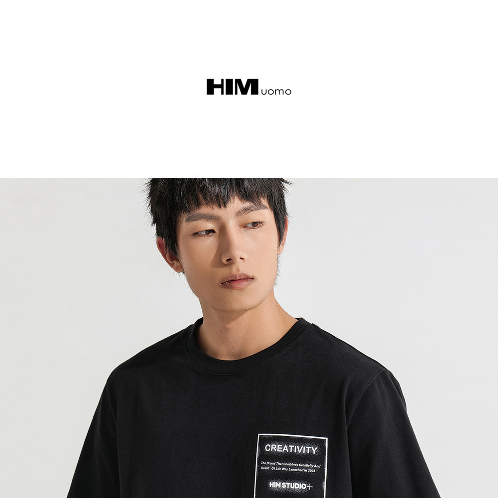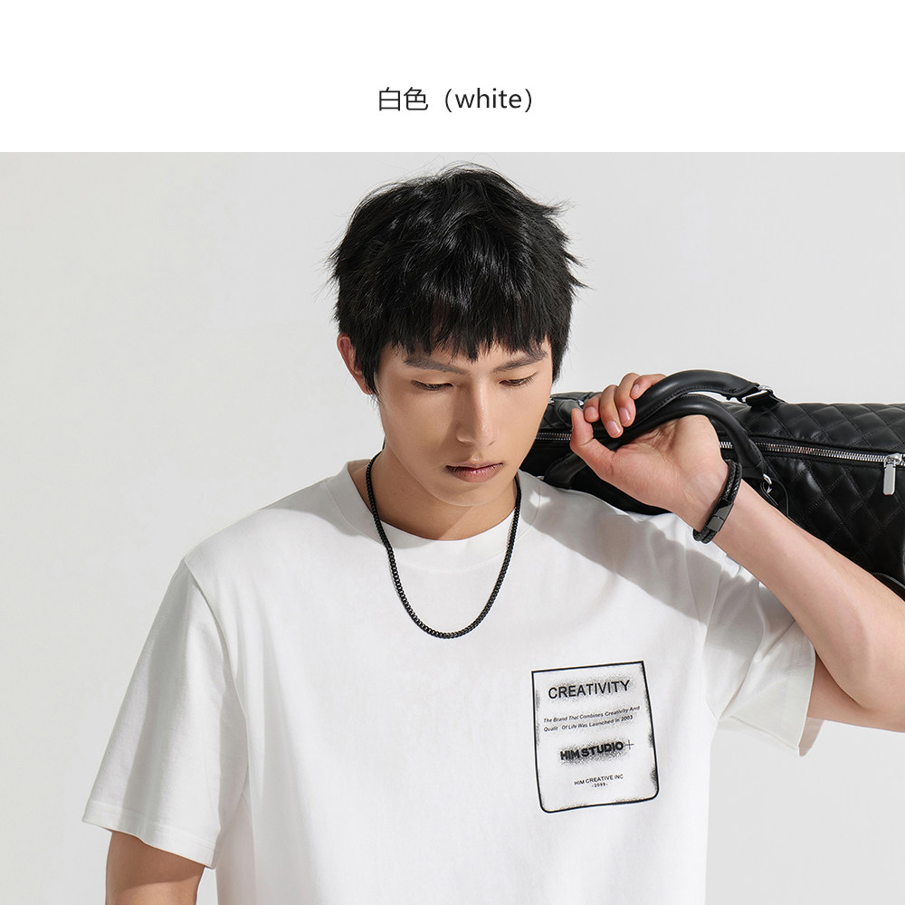 HIM漢崇 舒适修身纯色圆领T恤男潮流简约植绒印花短袖衫 2026夏季