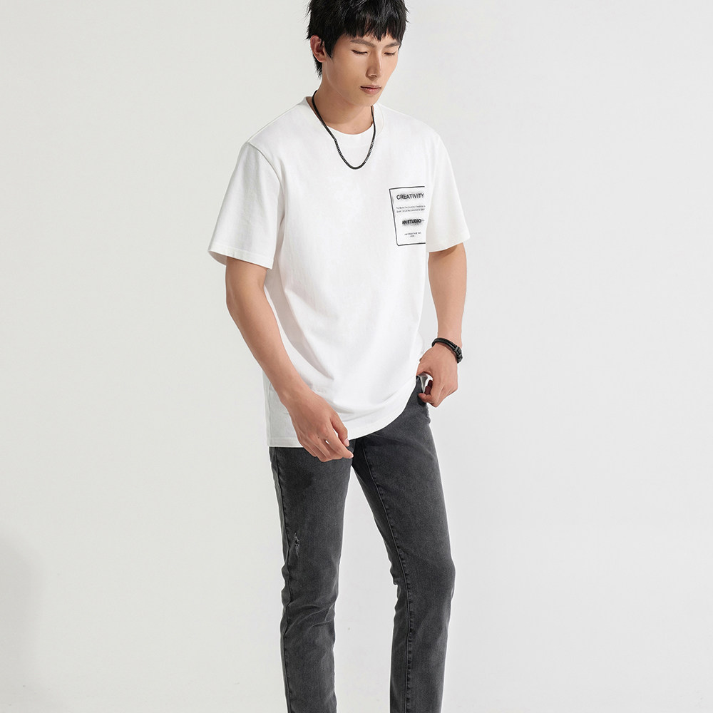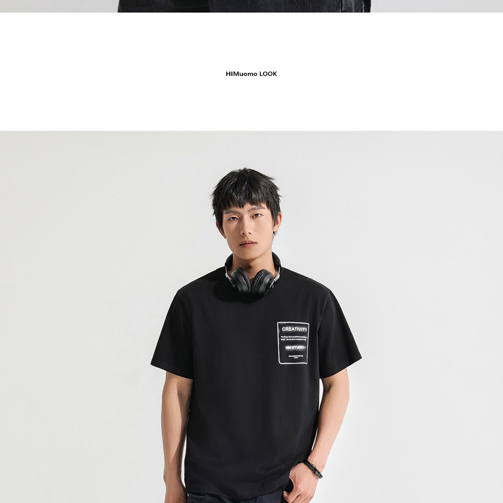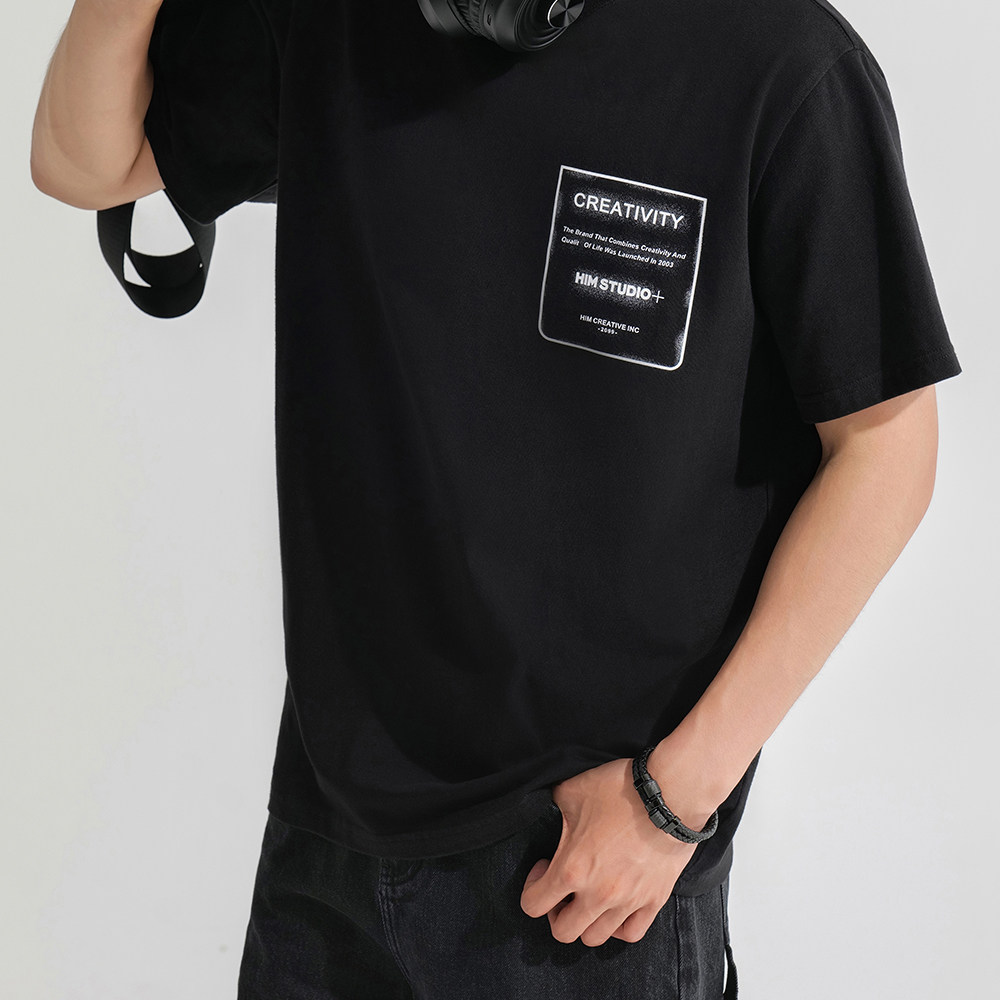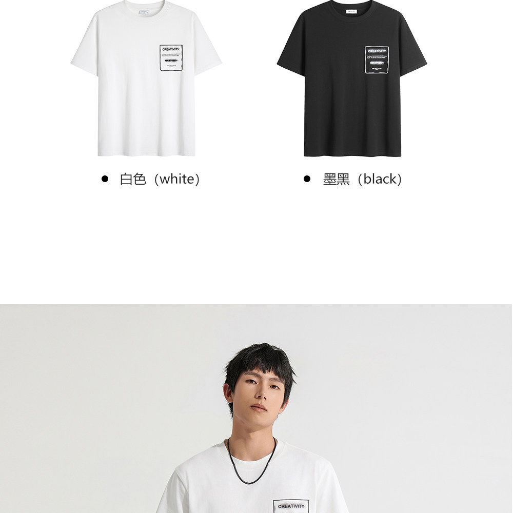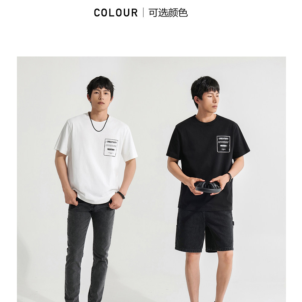 HIM漢崇 舒适修身纯色圆领T恤男潮流简约植绒印花短袖衫 2026夏季