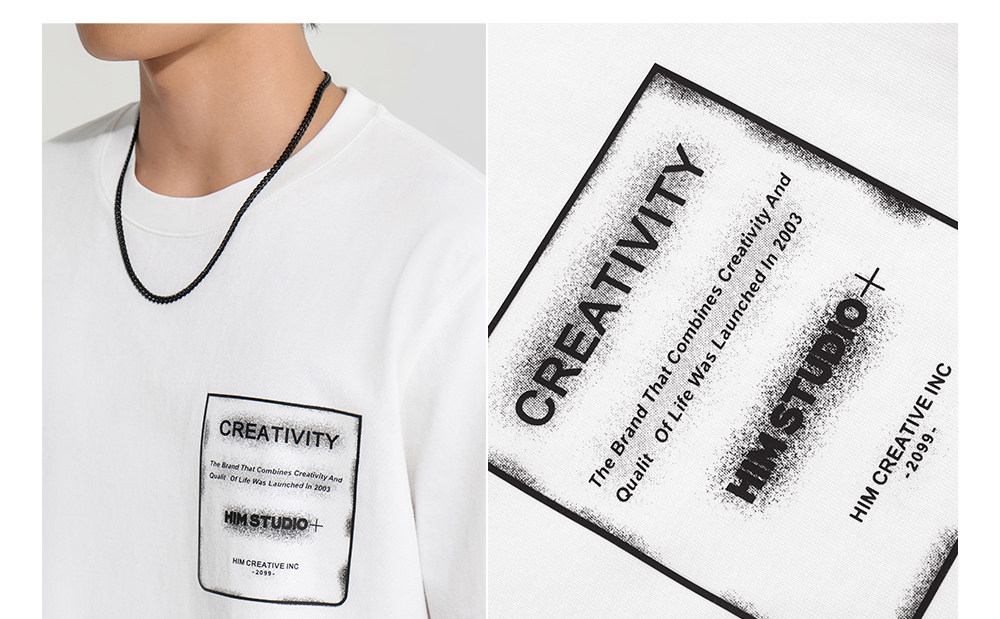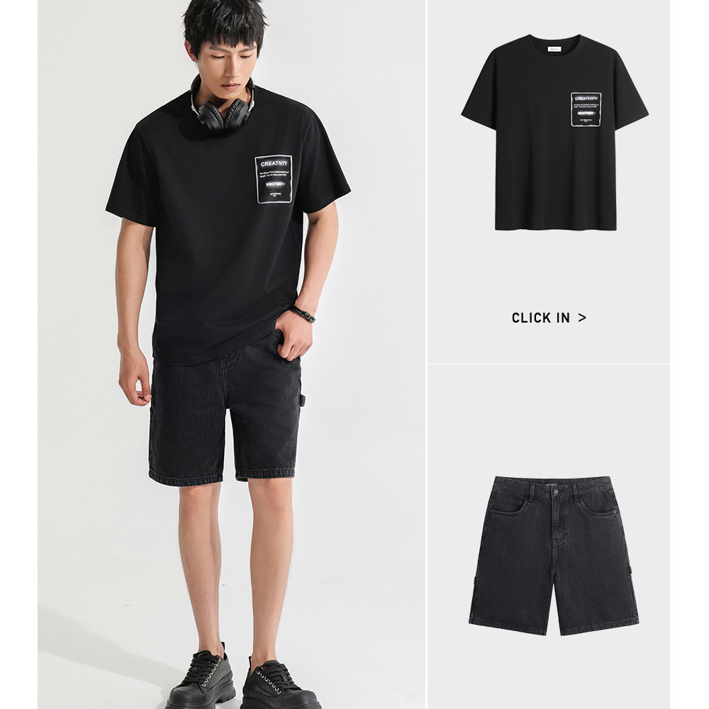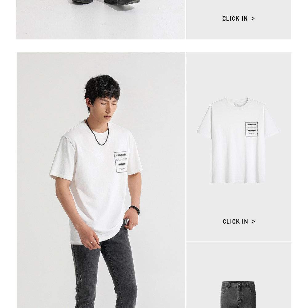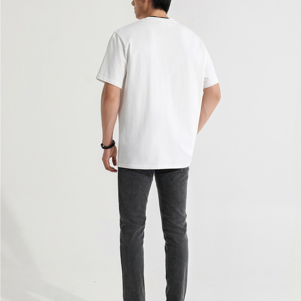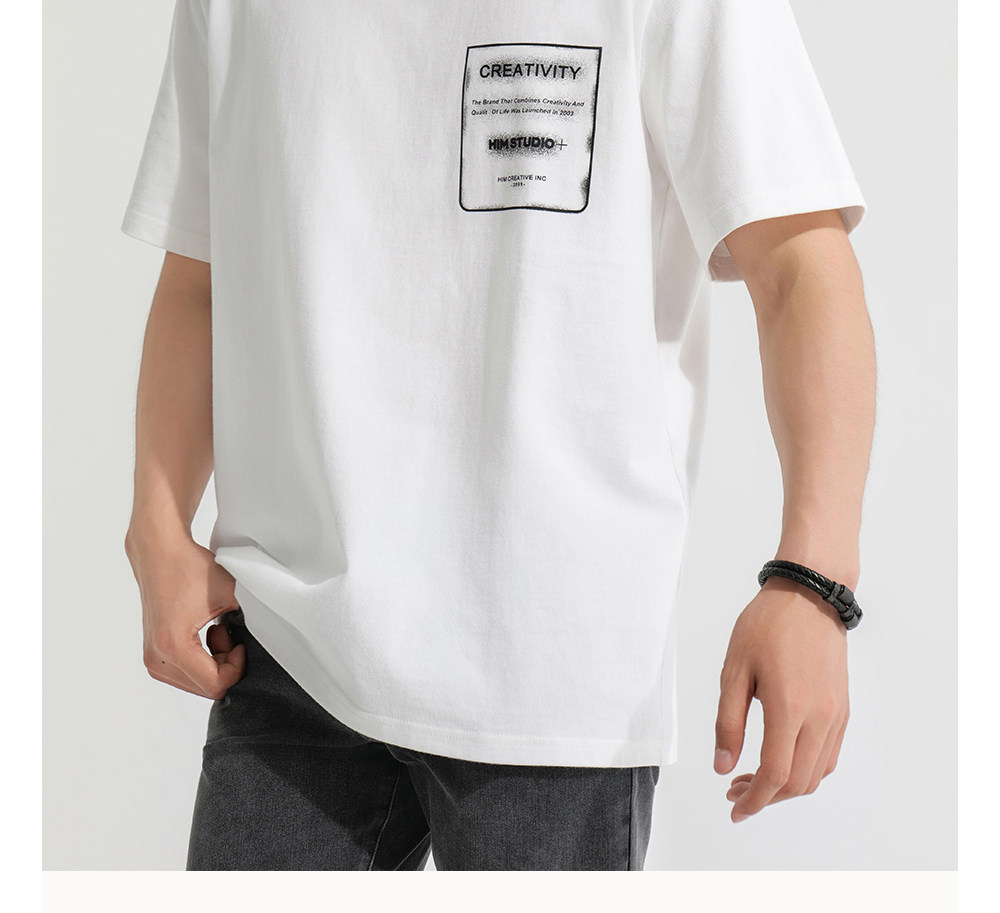 HIM漢崇 舒适修身纯色圆领T恤男潮流简约植绒印花短袖衫 2026夏季