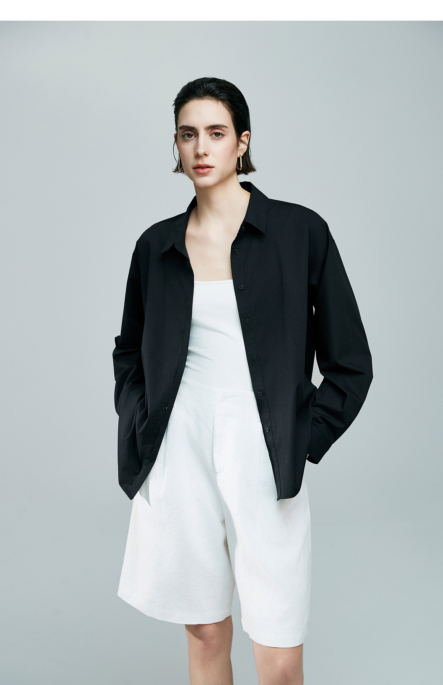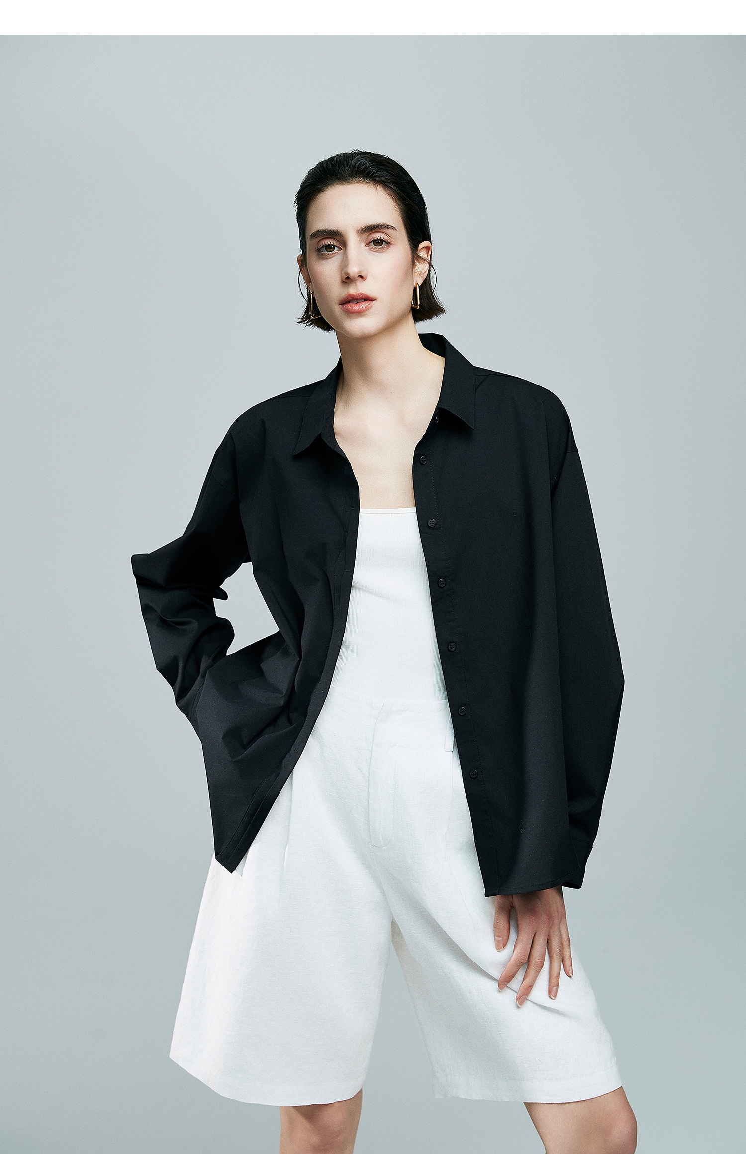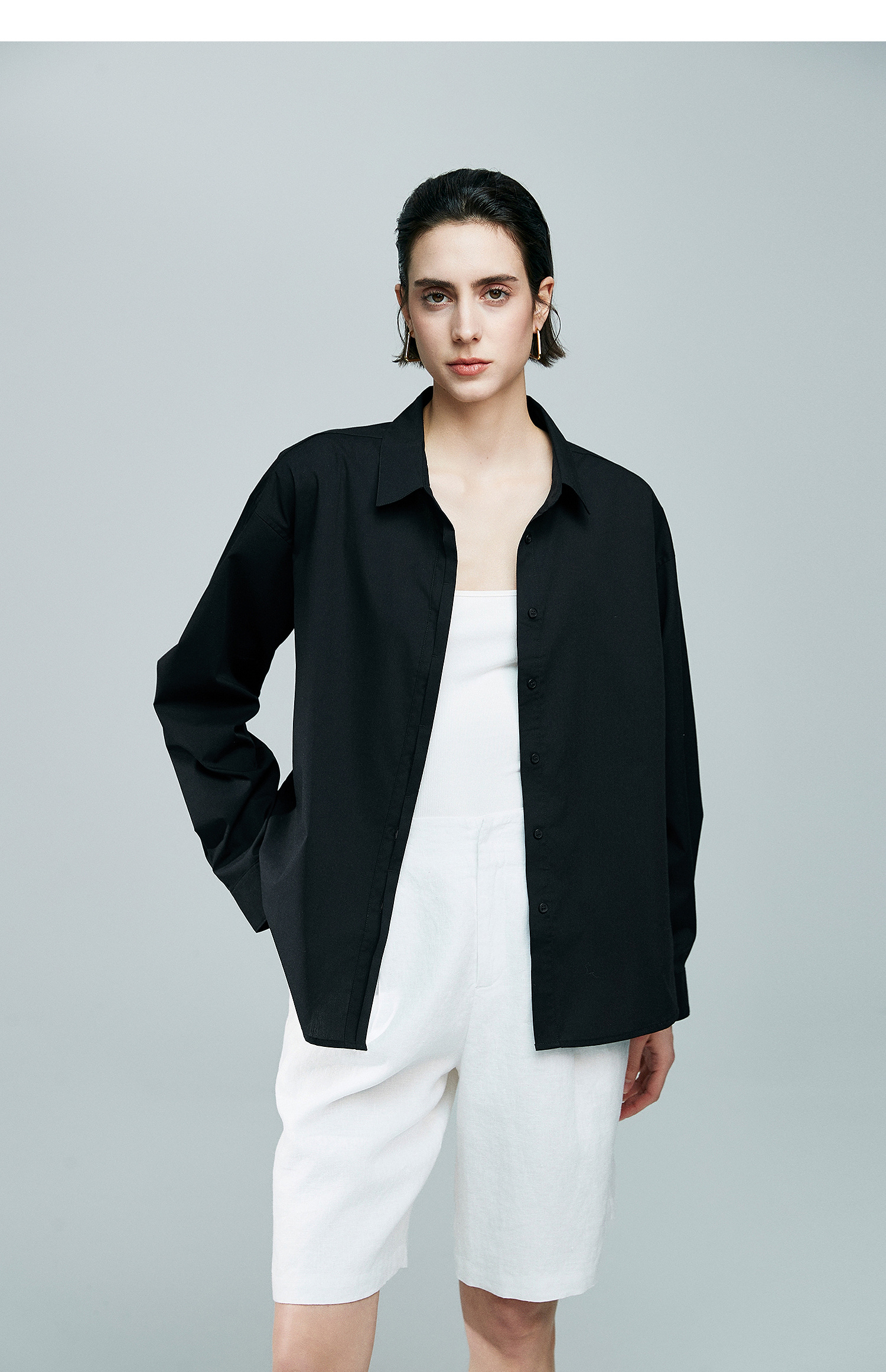 初棉廓形感落肩长袖衬衫363604035