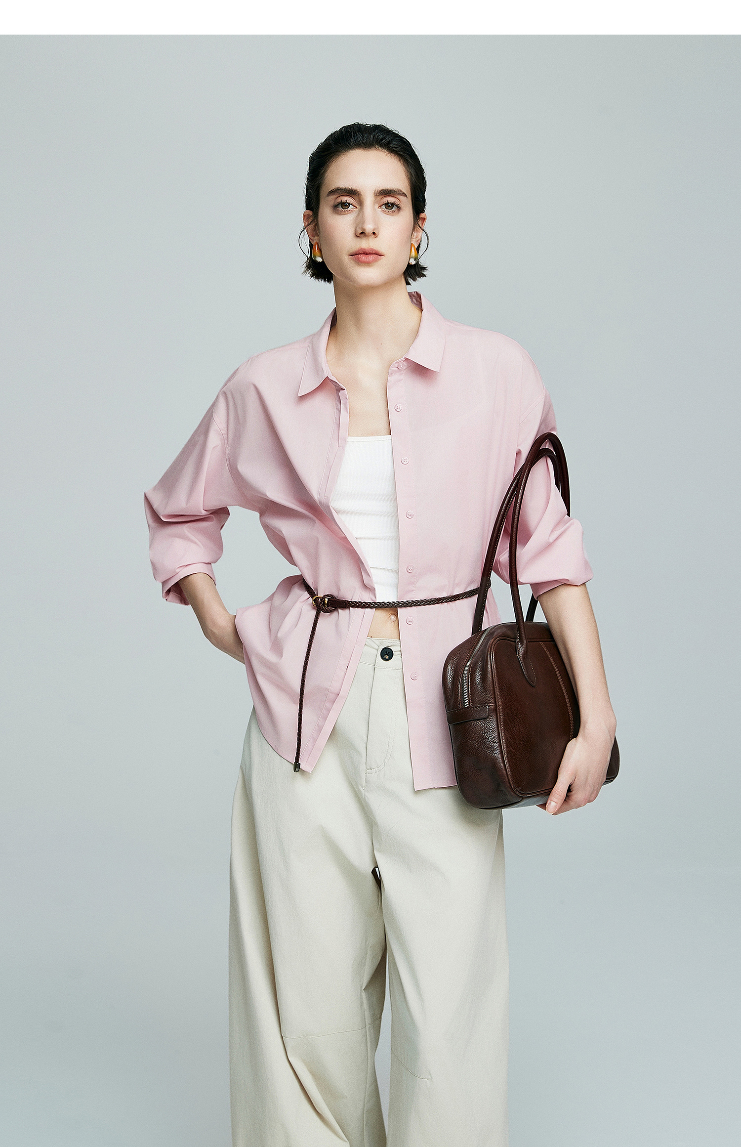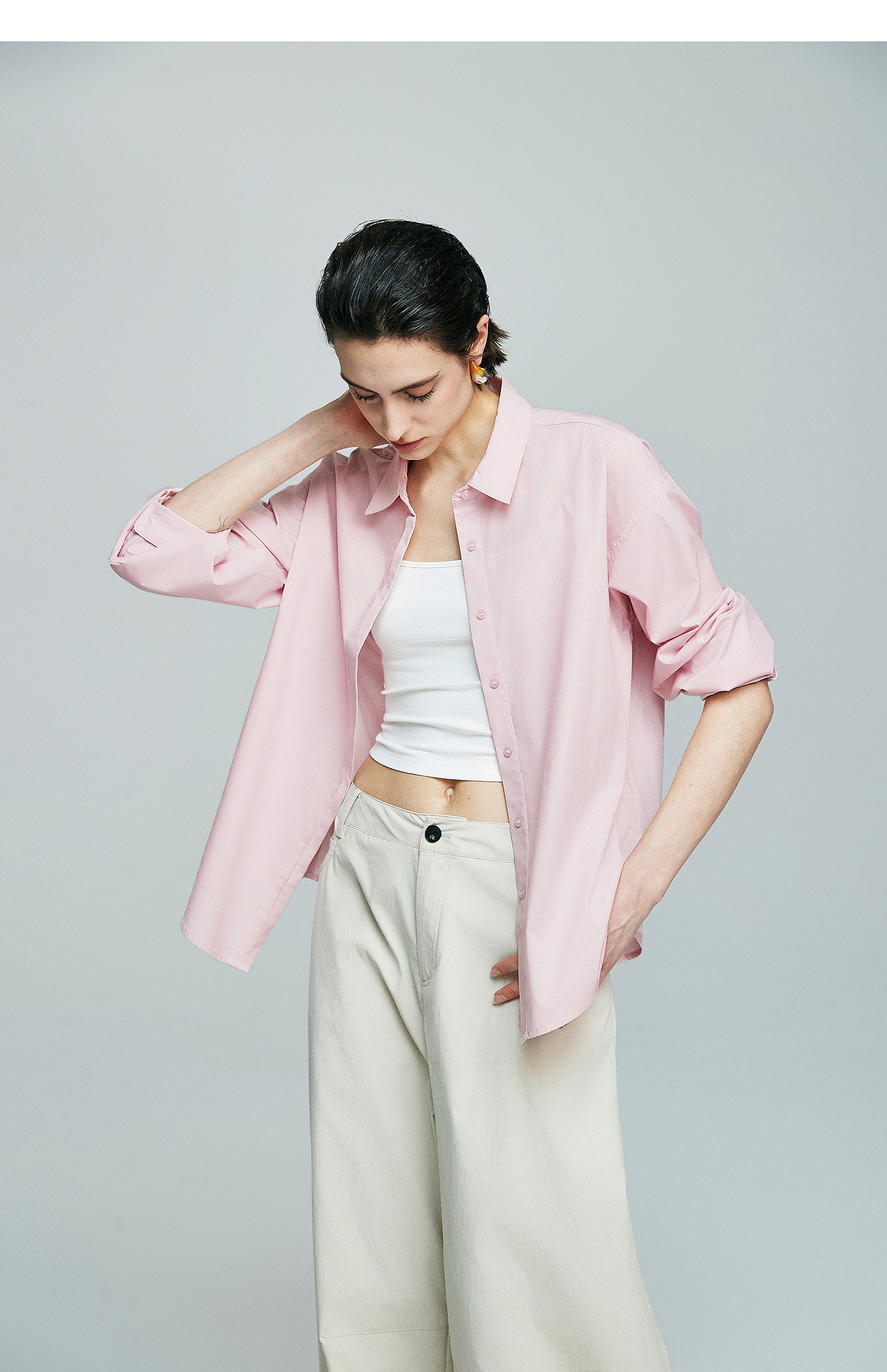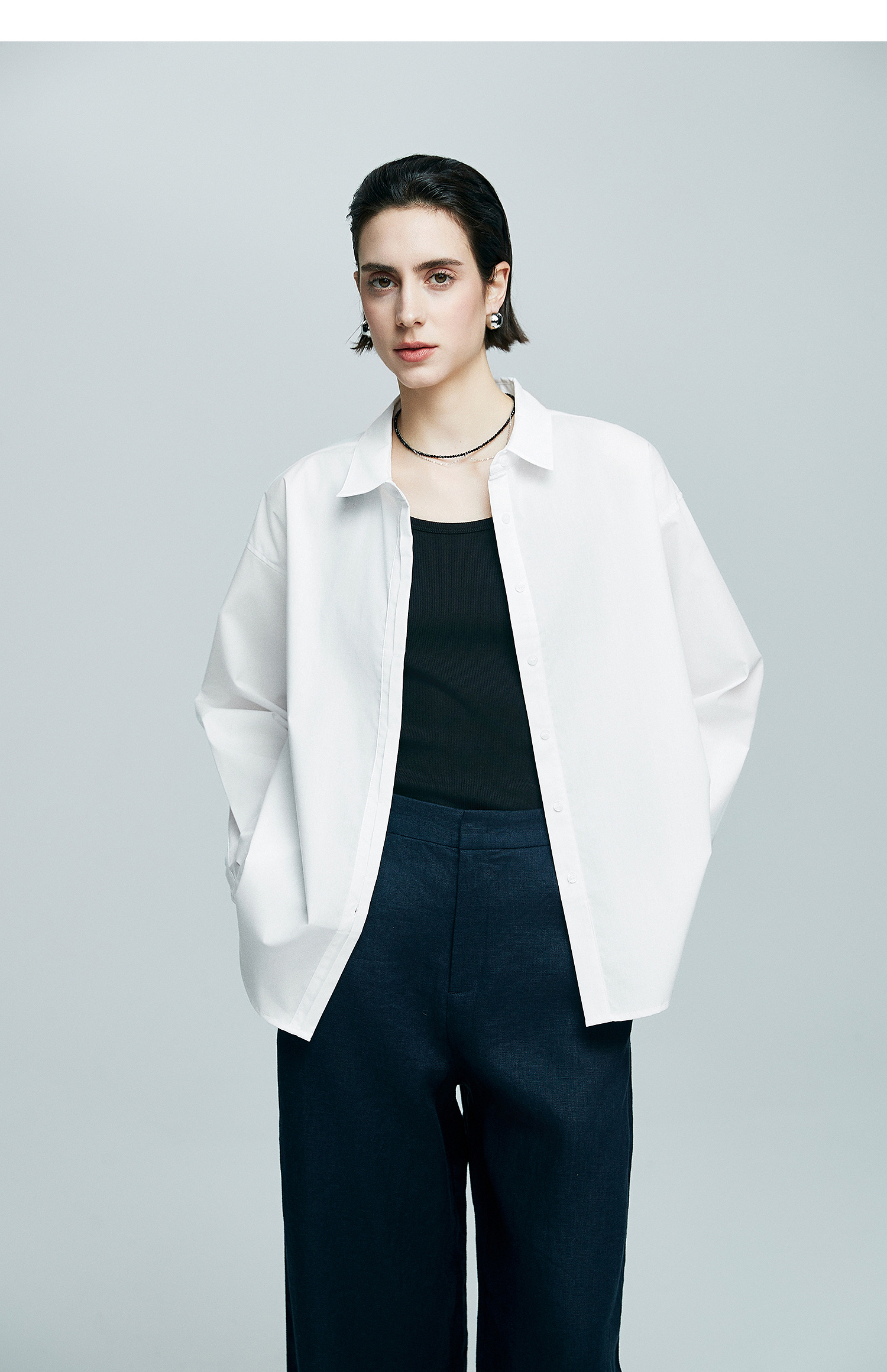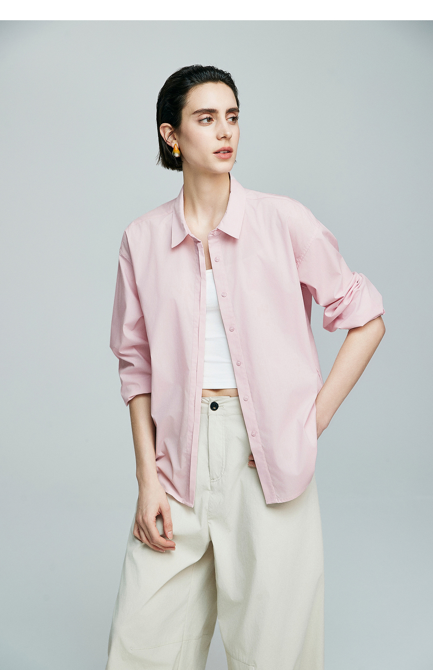 初棉廓形感落肩长袖衬衫363604035