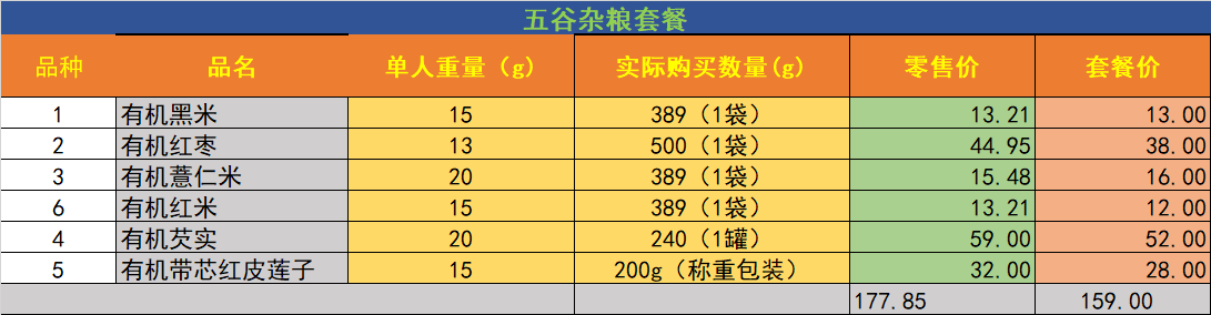 有机五谷杂粮套餐