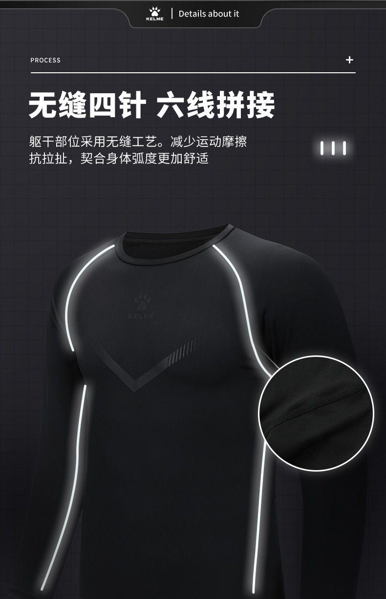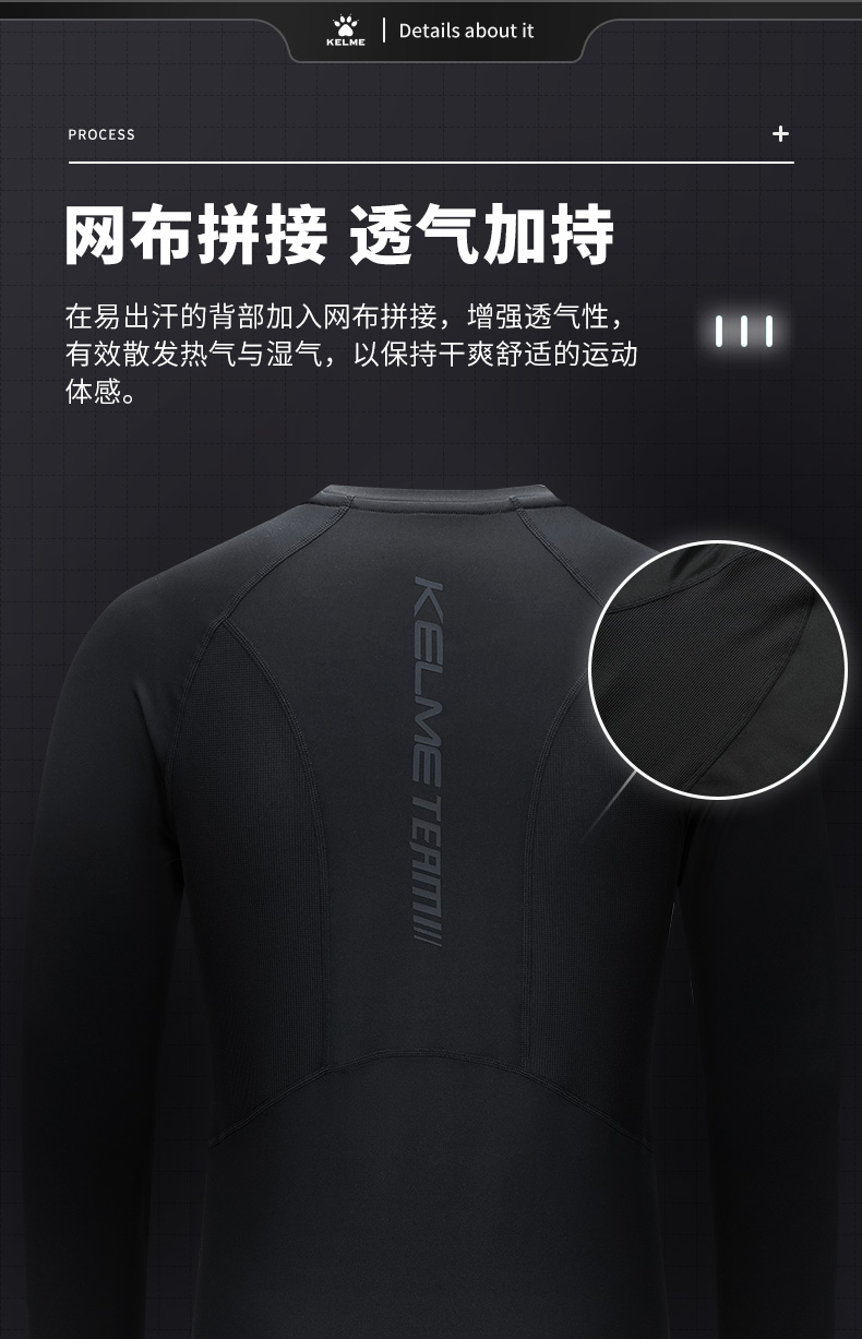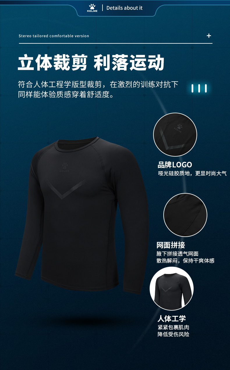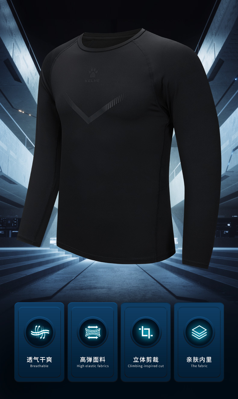 卡尔美2024新款运动训练薄款紧身衣套头衫