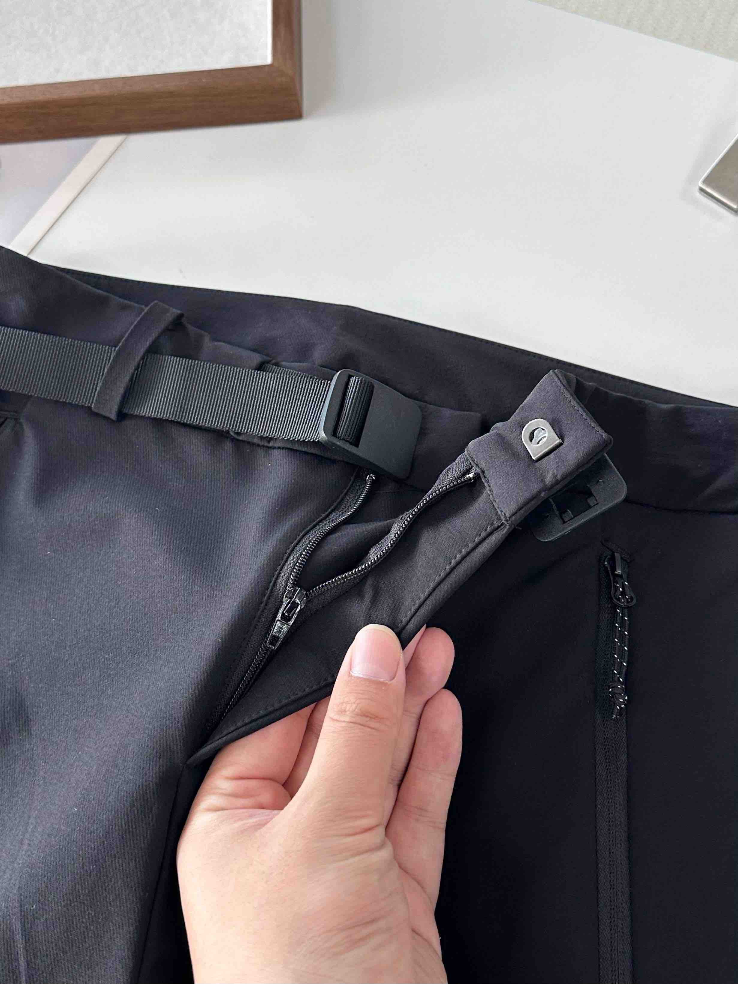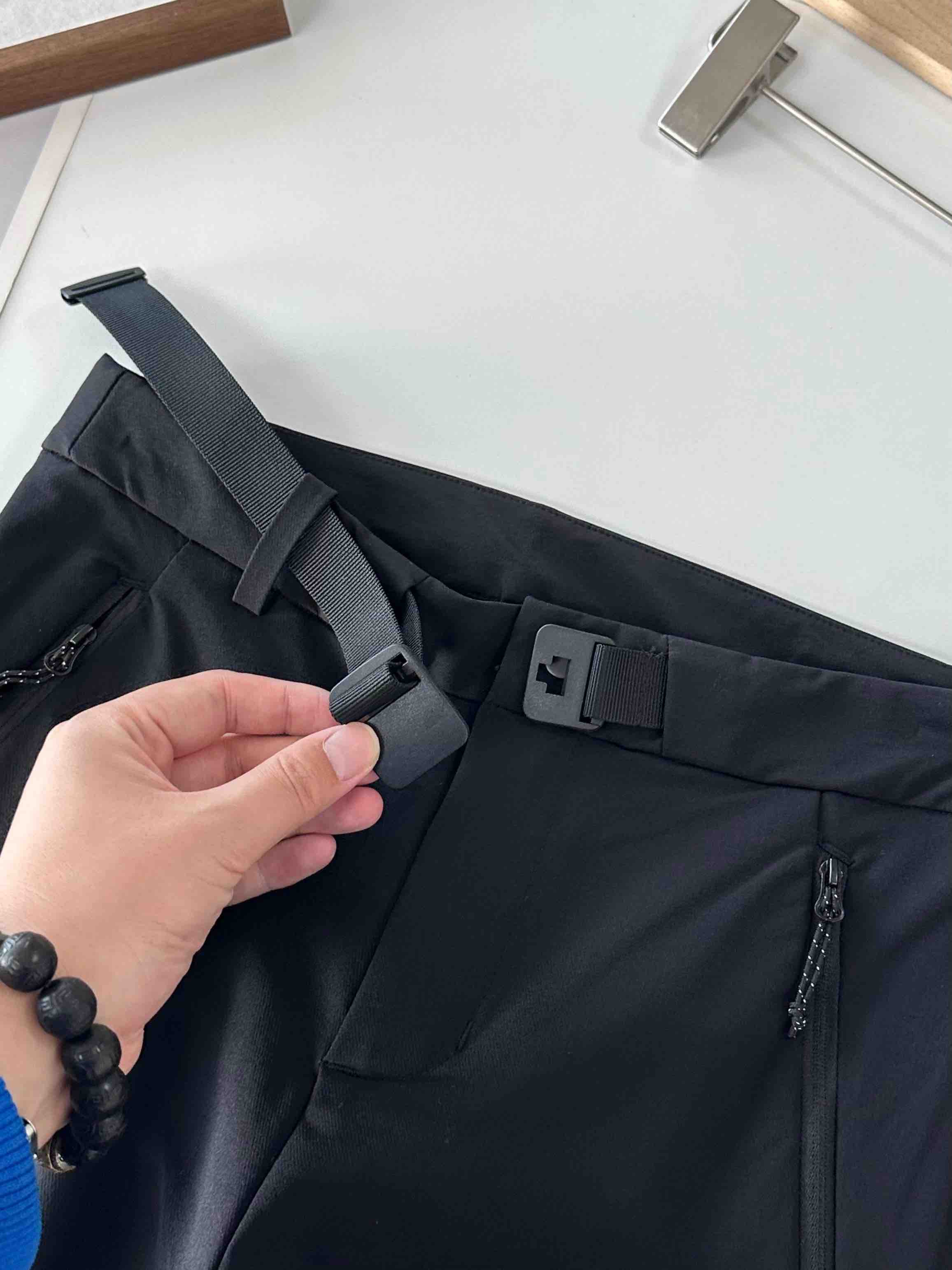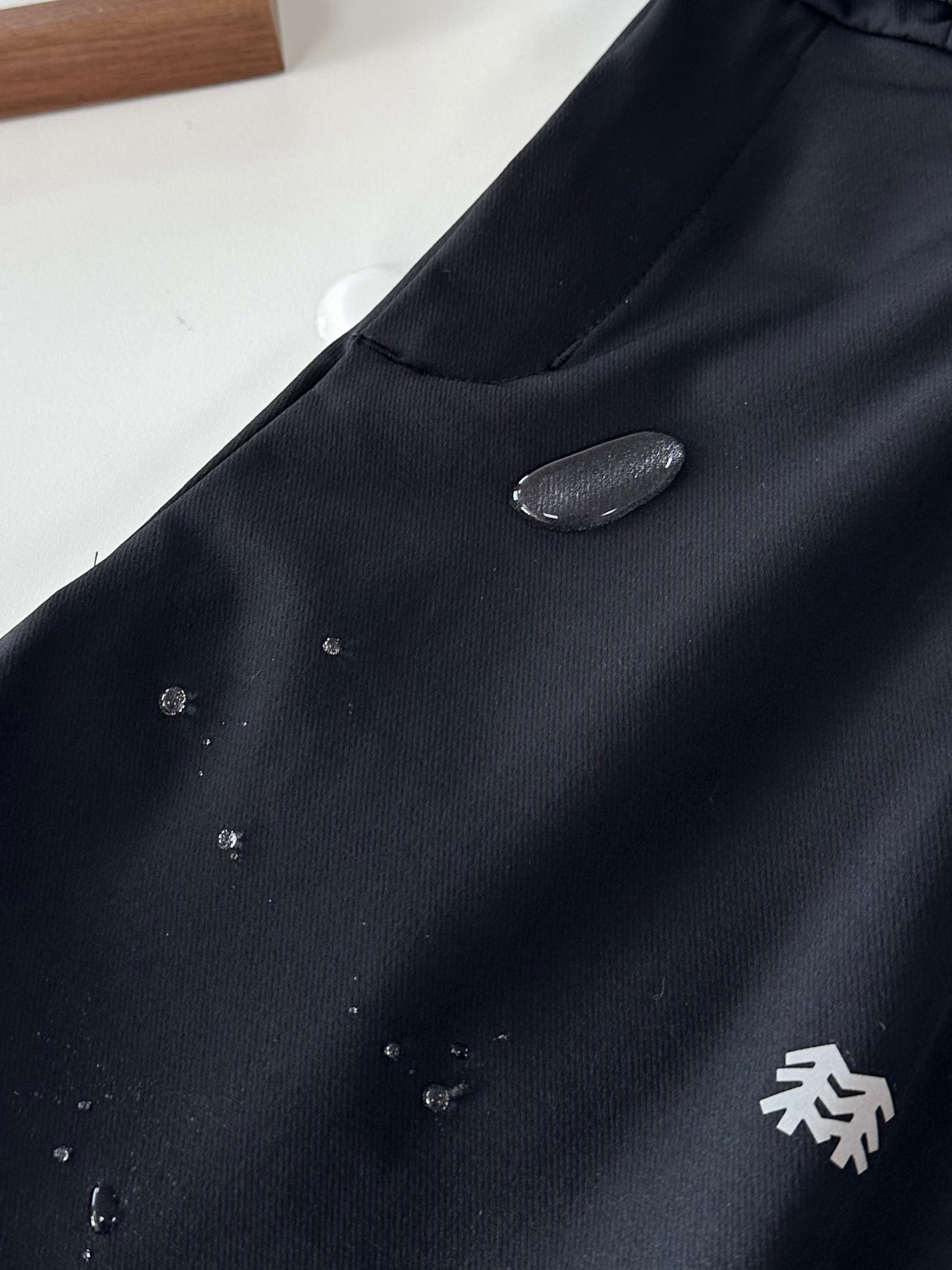 防泼水表层如荷叶般疏离雨水,内里始终干爽。更值得一提的是透湿科技,运动时产生的湿气能快速排出,避免闷热黏腻,让身体在动态中保持“呼吸感”,真正实现“外御风雨,内享干爽”。这条裤子的做工和用料真的比西裤还复杂,好货就是藏于每一处细节。