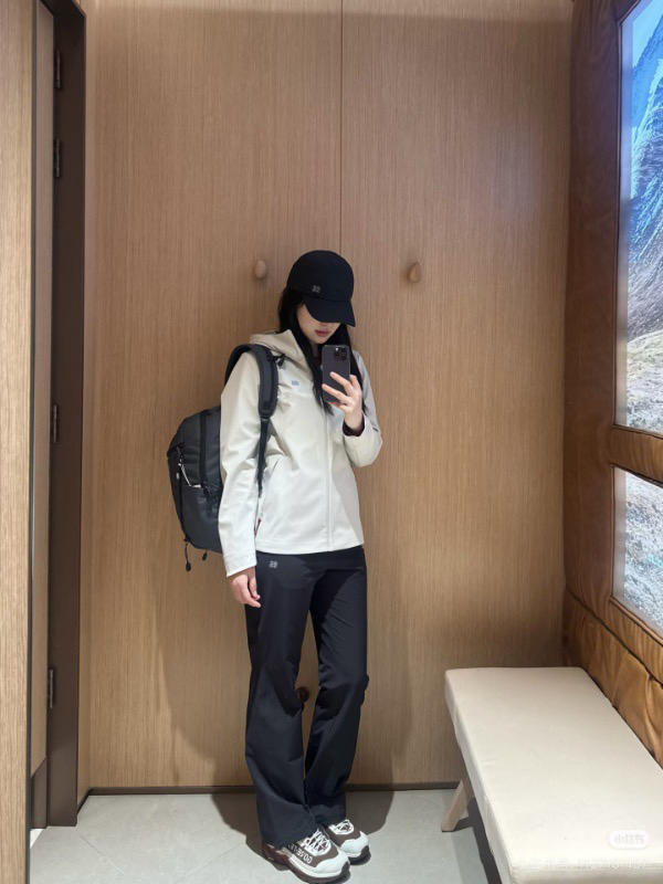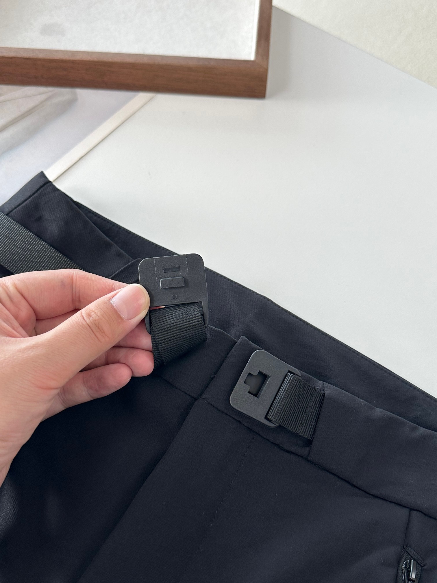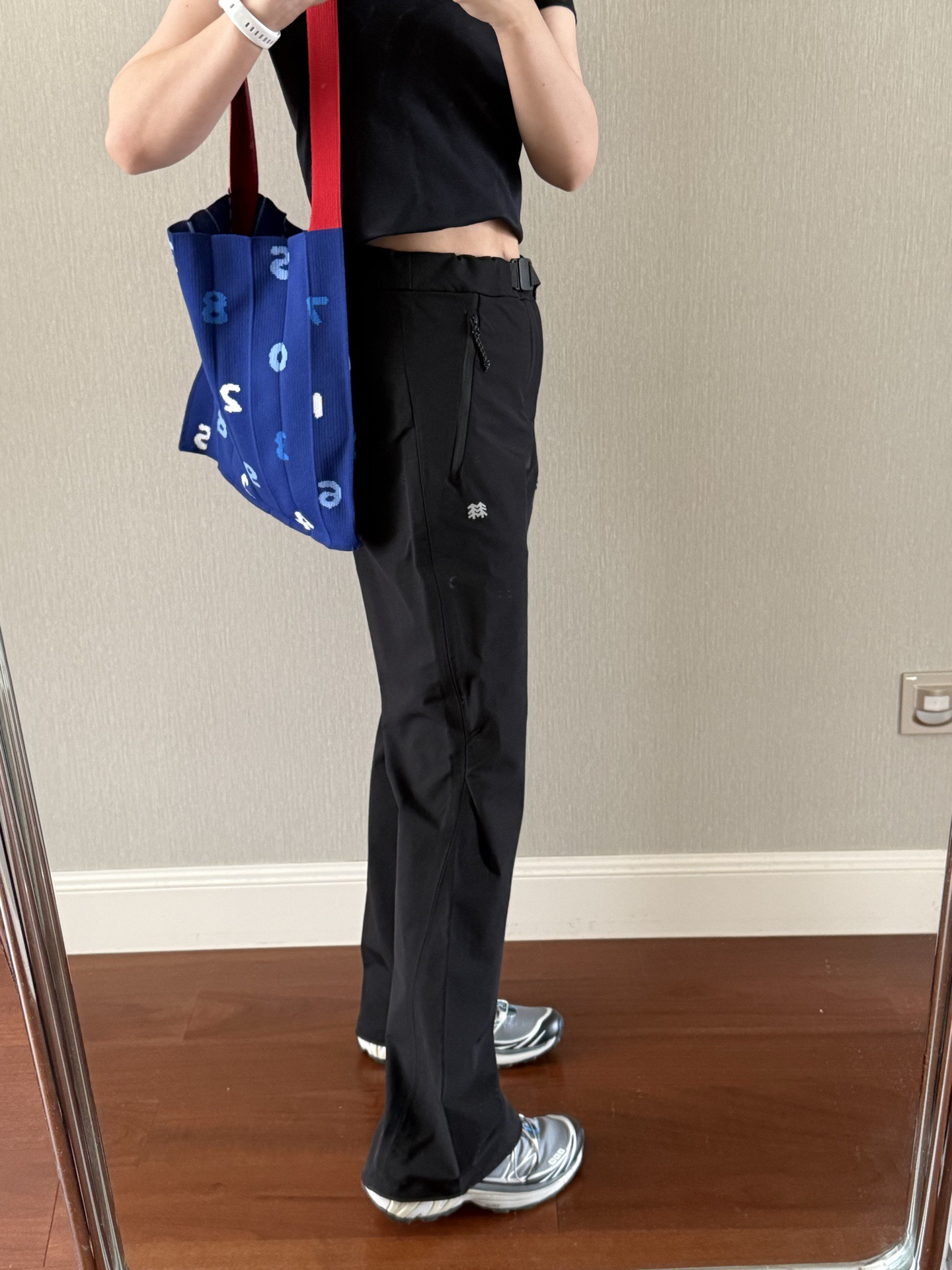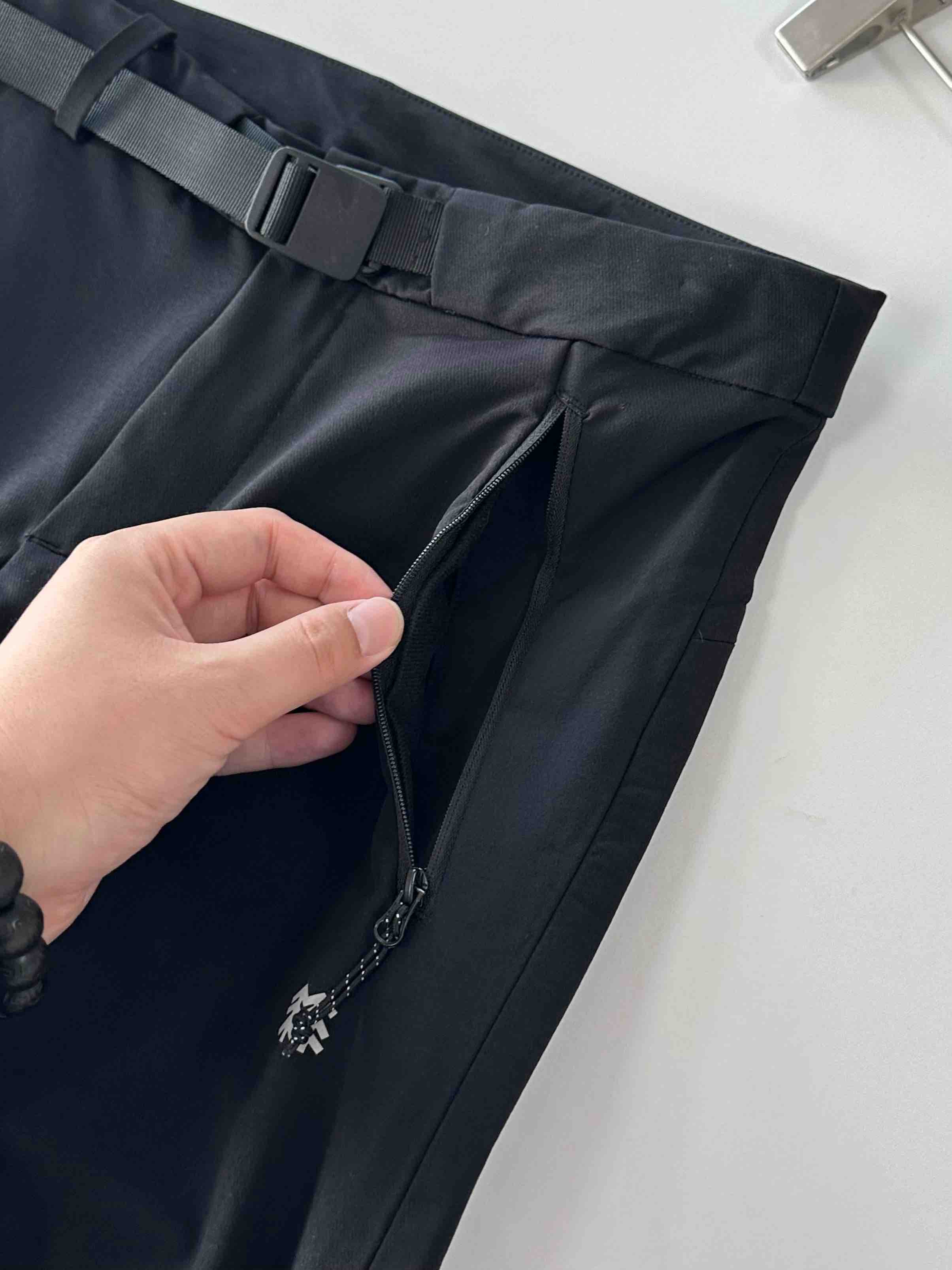 防泼水表层如荷叶般疏离雨水,内里始终干爽。更值得一提的是透湿科技,运动时产生的湿气能快速排出,避免闷热黏腻,让身体在动态中保持“呼吸感”,真正实现“外御风雨,内享干爽”。这条裤子的做工和用料真的比西裤还复杂,好货就是藏于每一处细节。