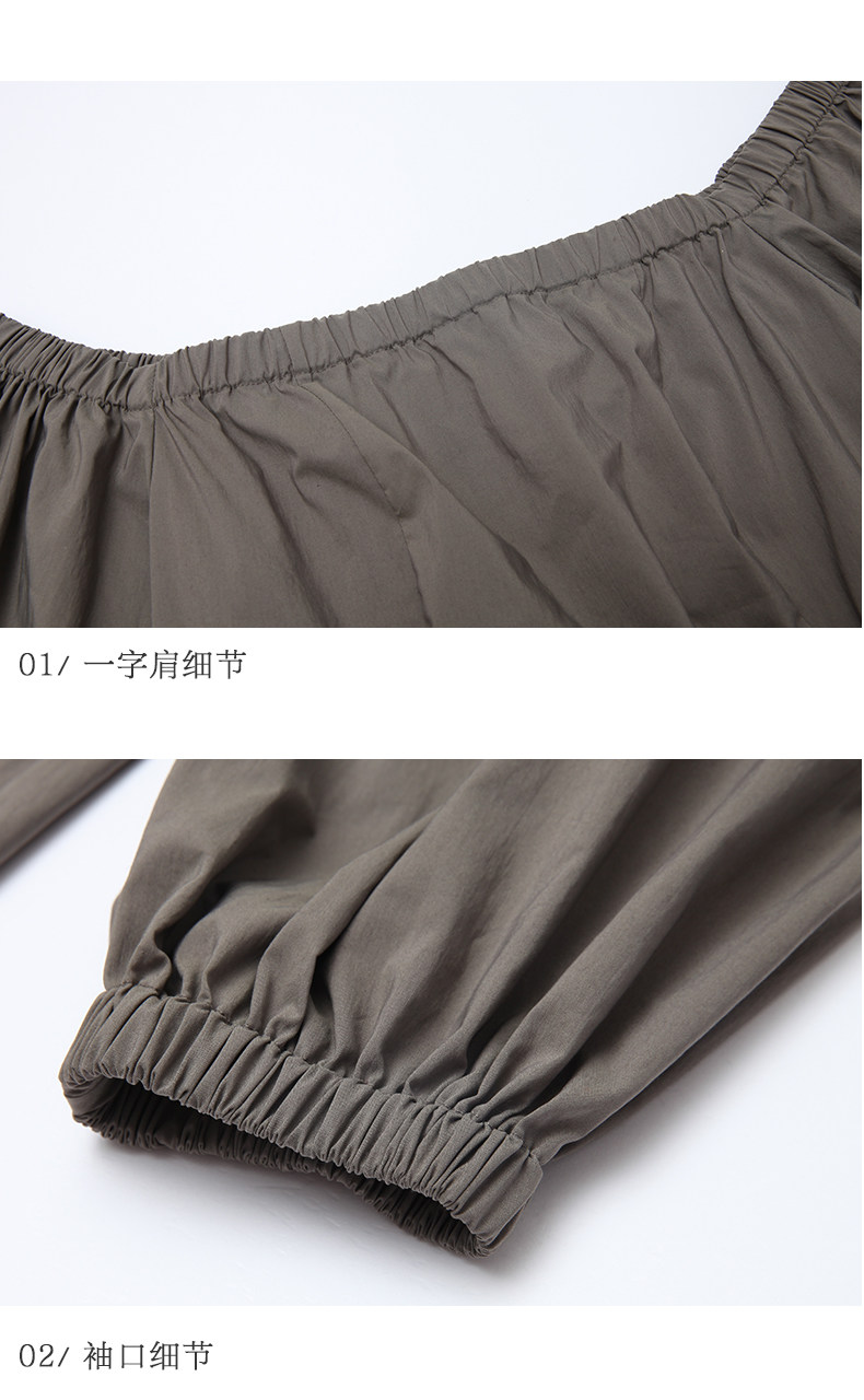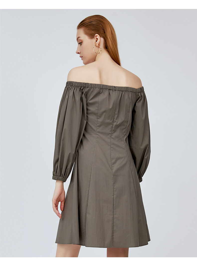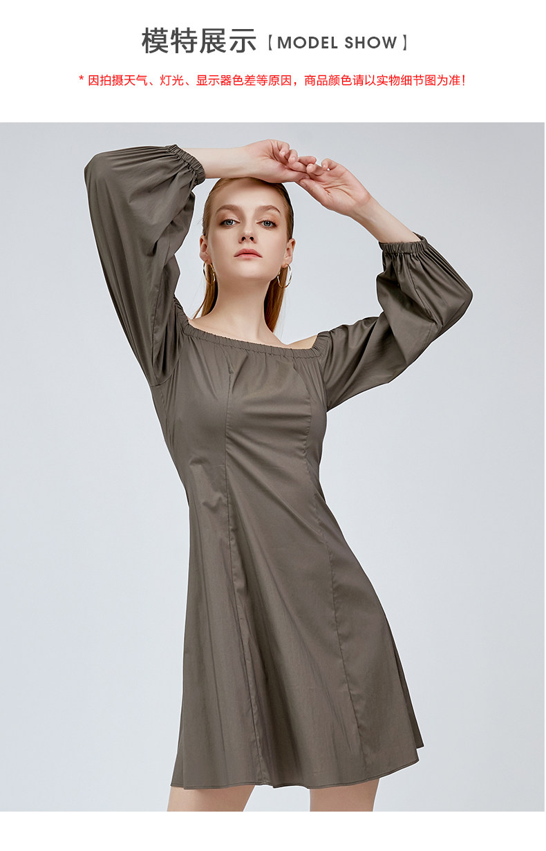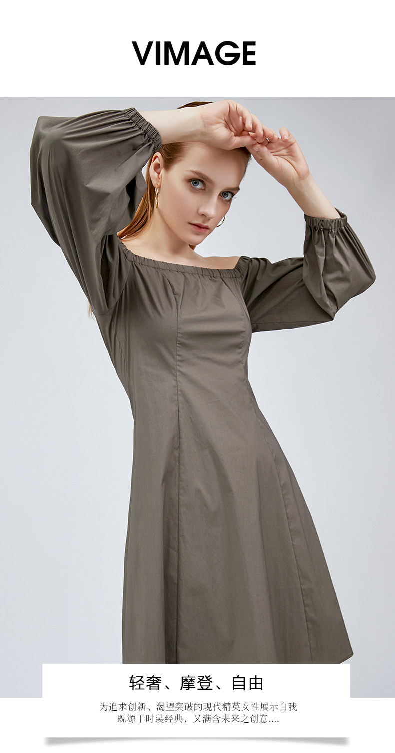 vimage纬漫纪街头雾灰色露肩一字领高腰宽松时尚连衣裙潮V1107708