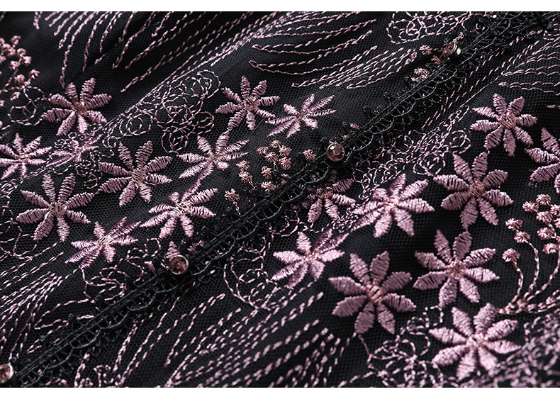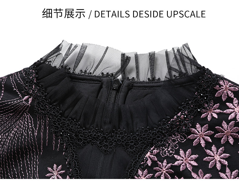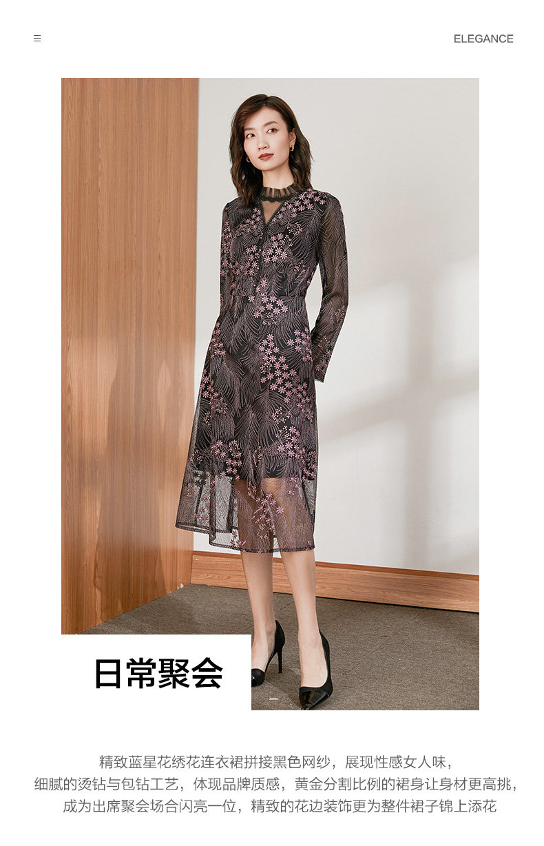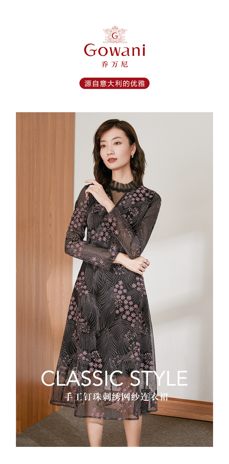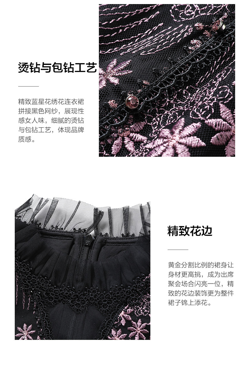 乔万尼秋季新款刺绣拼接网纱重工烫钻性感收腰显瘦优雅连衣裙ES4E357
