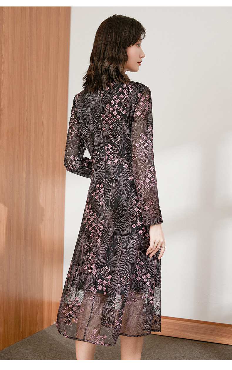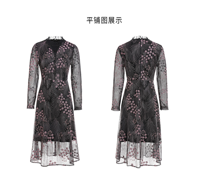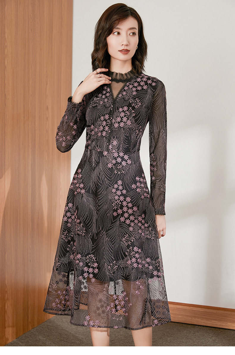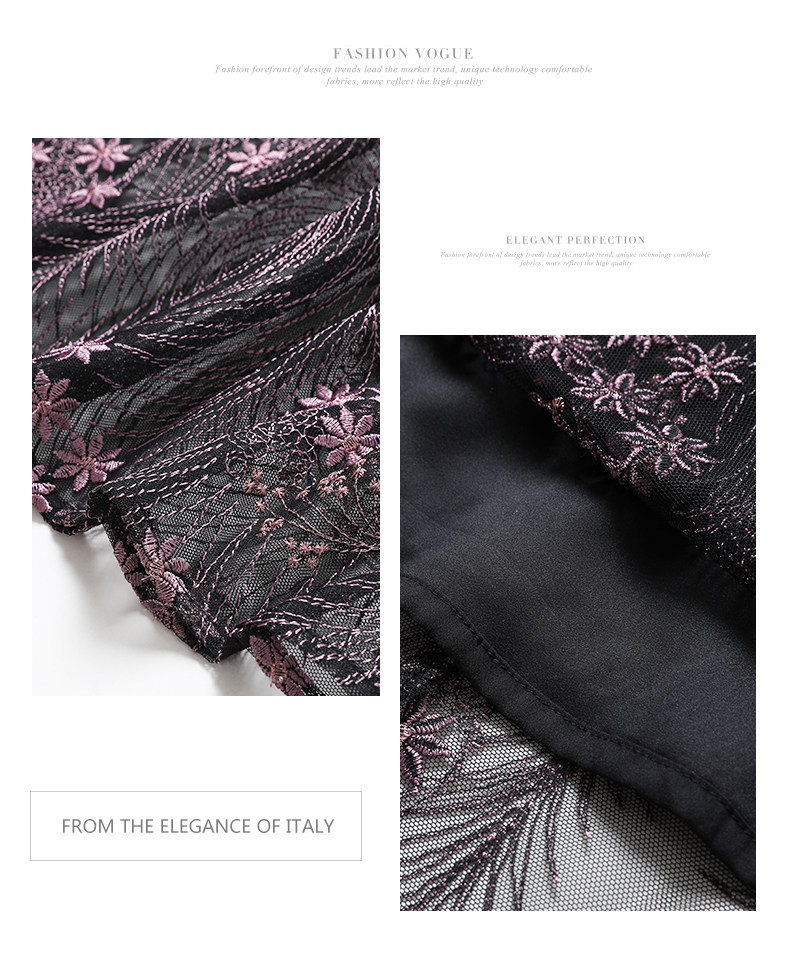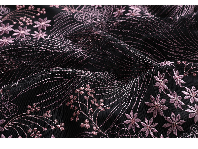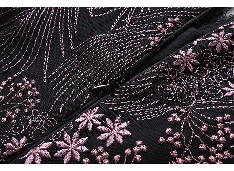 乔万尼秋季新款刺绣拼接网纱重工烫钻性感收腰显瘦优雅连衣裙ES4E357