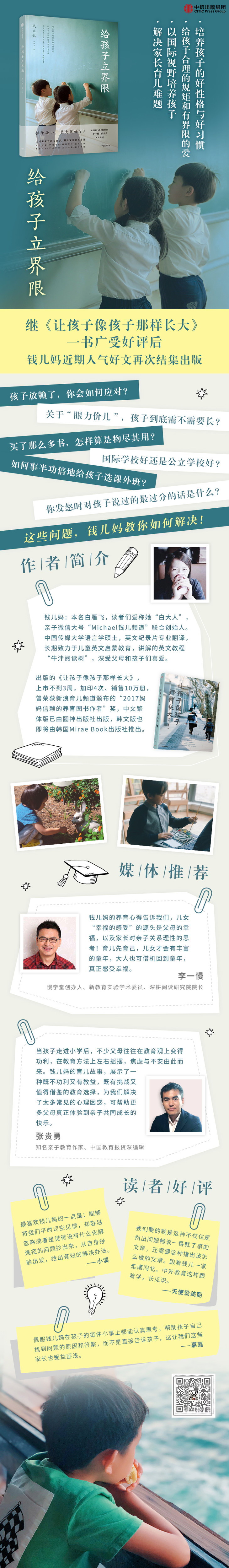 2016年开始每天在“Michael钱儿频道”分享教养一对儿女的心得体悟,文章被无数爸爸妈妈们长期追读。已出版的《让孩子像孩子那样长大》《给孩子立界限》累计销售20万册,电子书逾15万册。获得新浪育儿频道颁布的“妈妈信赖的养育图书作者”奖等荣誉。;.;本名韩涛,语言艺术家,两获“金鹰奖”,两获“五个一”工程奖,解说数百部国内外经典纪录片。在创建的百万粉丝微信公众号“Michael钱儿频道”为孩子们播讲了上千部中外经典绘本故事,并原创改编播讲包括《超级西游记》《超级封神榜》在内的数部中国经典作品。