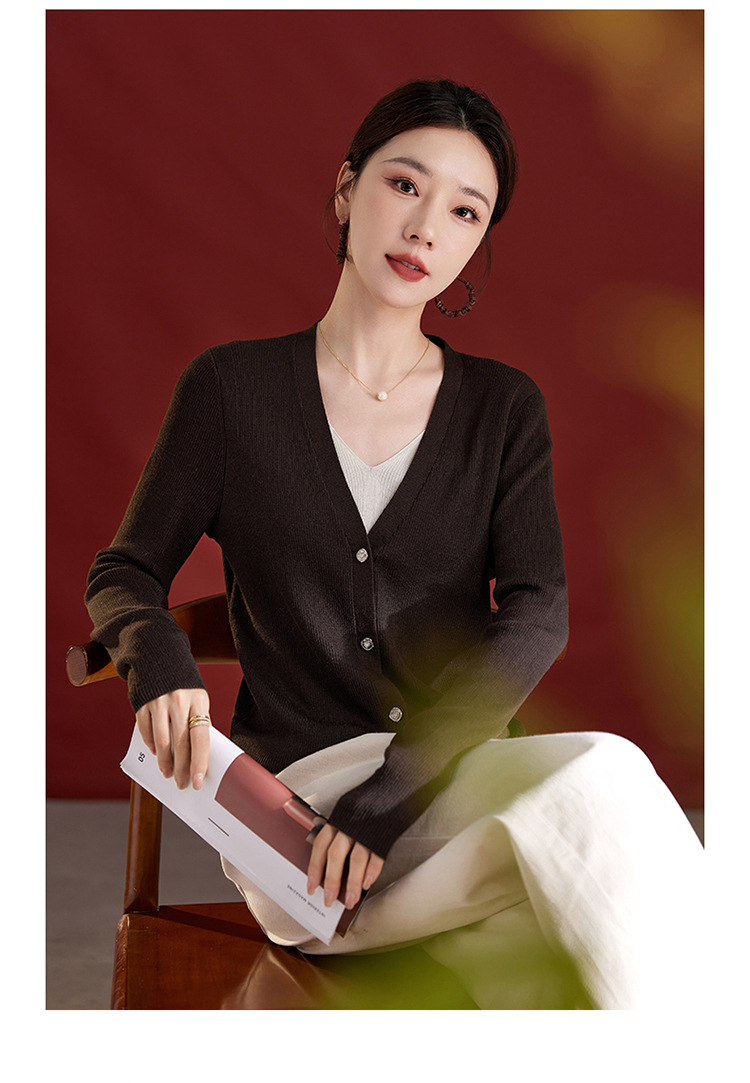SM 1003针织开衫桑蚕丝气质v领长袖宽松外穿毛衣 商品图0