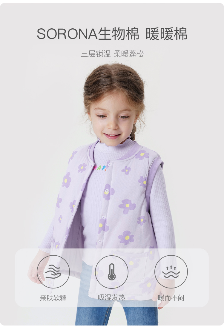 【杜邦棉】马克珍妮宝宝冬装新款 男女童无感印花保暖马甲231262