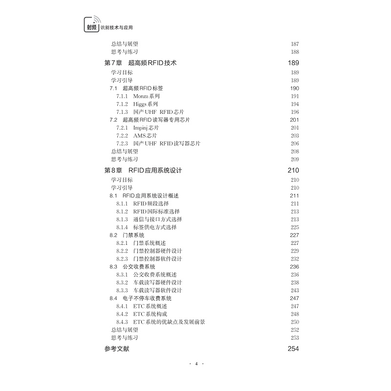 本书稿从RFID技术基础、RFID系统框架和组成结构、RFID国际标准、RFID应用设计与实践,四个层次较全面地介绍RFID技术。书稿整体分成8个章节:①RFID技术概述,主要概述RFID技术发展与基本组成;②RFID技术基础,介绍RFID无线通信核心技术,如编码与解码、调制与解调技术等;③RFID射频前端,介绍标签和读写器前端电路,如天线电路、谐振电路等;④RFID标准体系,介绍常用的ISO14443、ISO15693和ISO18000-6国标;⑤低频RFID技术、⑥高频RFID技术、⑦微波RFID技术,分别介绍低频、高频、微波RFID标签专用芯片和读写器专用芯片,以及相应电路;⑧RFID应用系统设计,介绍典型RFID应用系统设计(如门禁系统、仓储管理系统)的硬件和软件设计。
