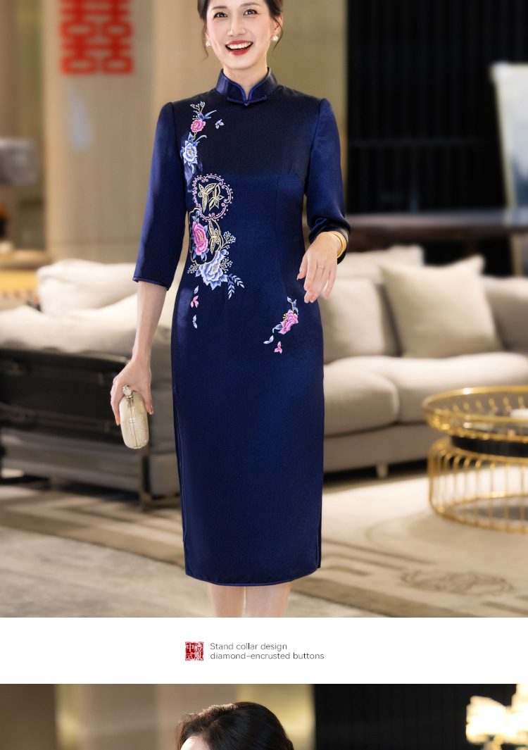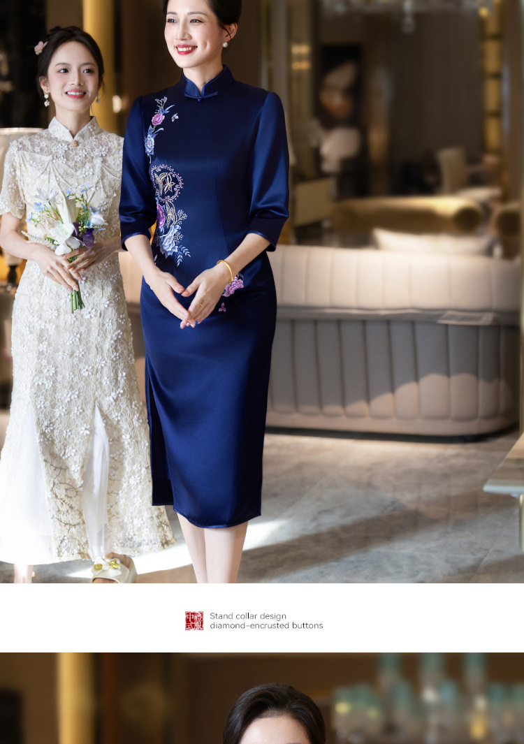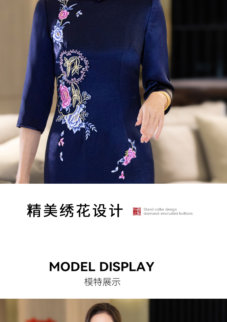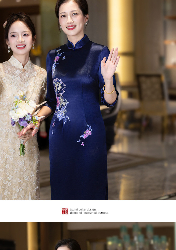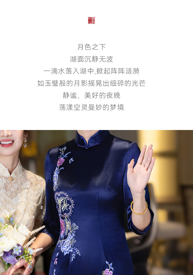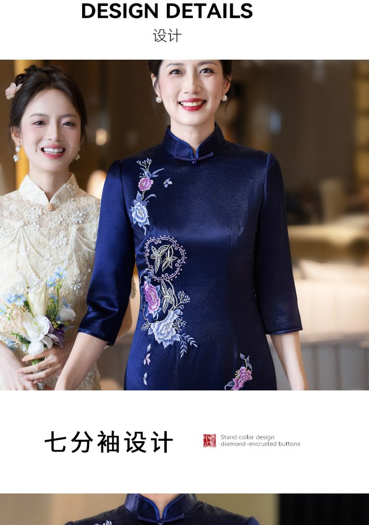 LHS C59新中式改良刺绣旗袍结婚礼服连衣裙