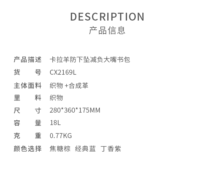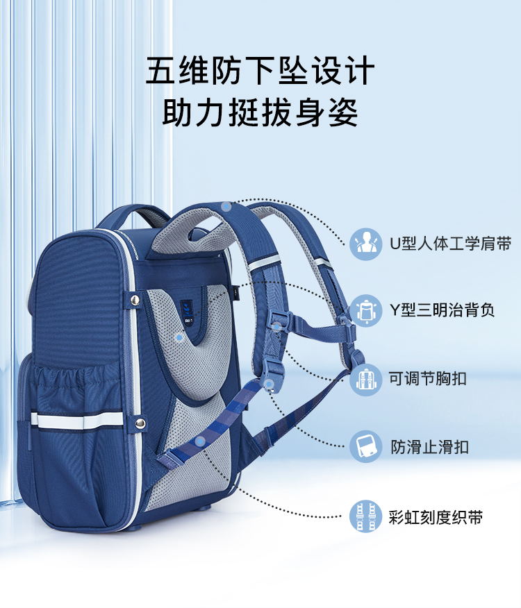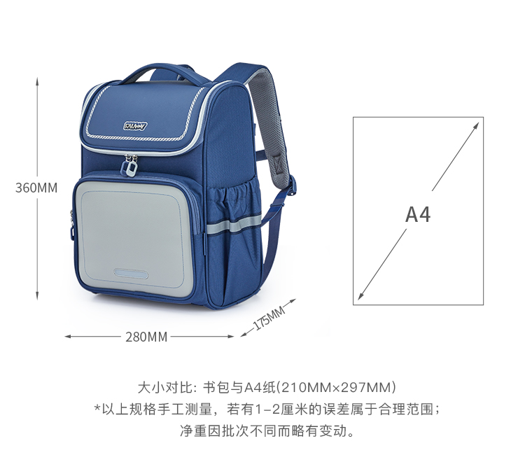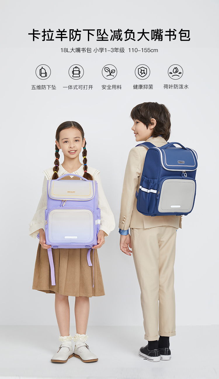 卡拉羊1-6年级18L/22L五维减负防下坠大嘴书包 北极光 CX2169L+CX2627