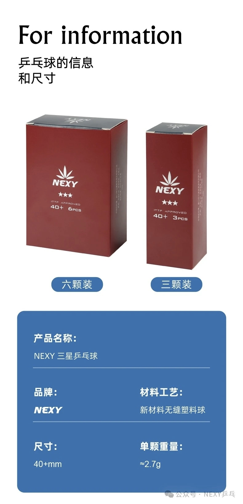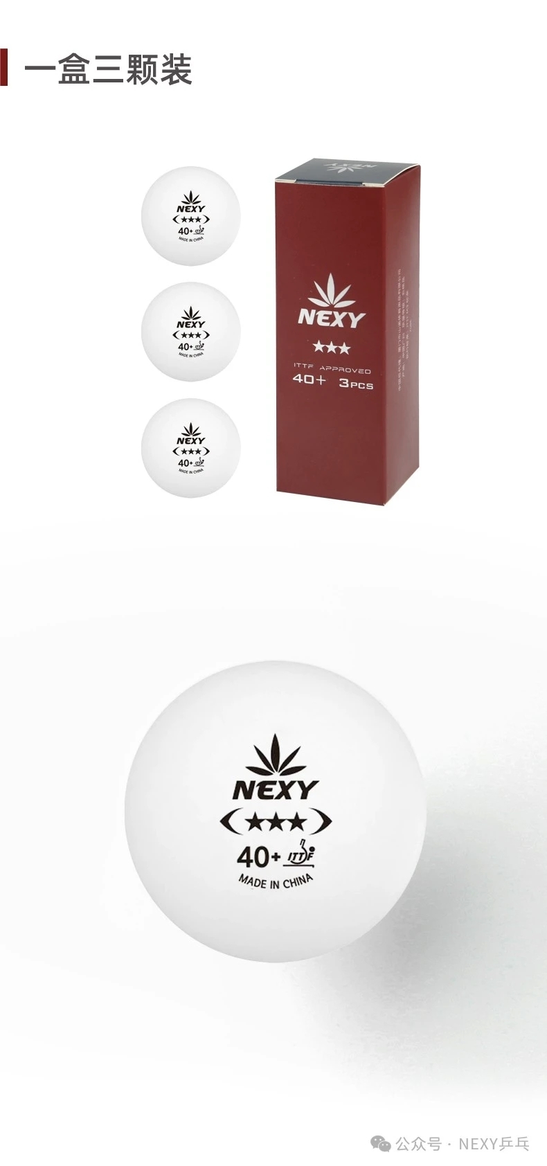 NEXY三星球乒乓球无缝球40+新材料塑料球乒乓球
