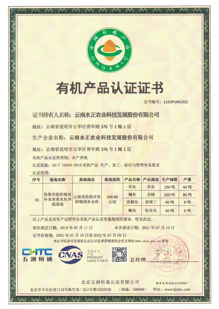 生产方式:2018年起有机养殖,投苗后鱼苗自然生长,不投喂,不使用任何的激素,抗生素等投入品。