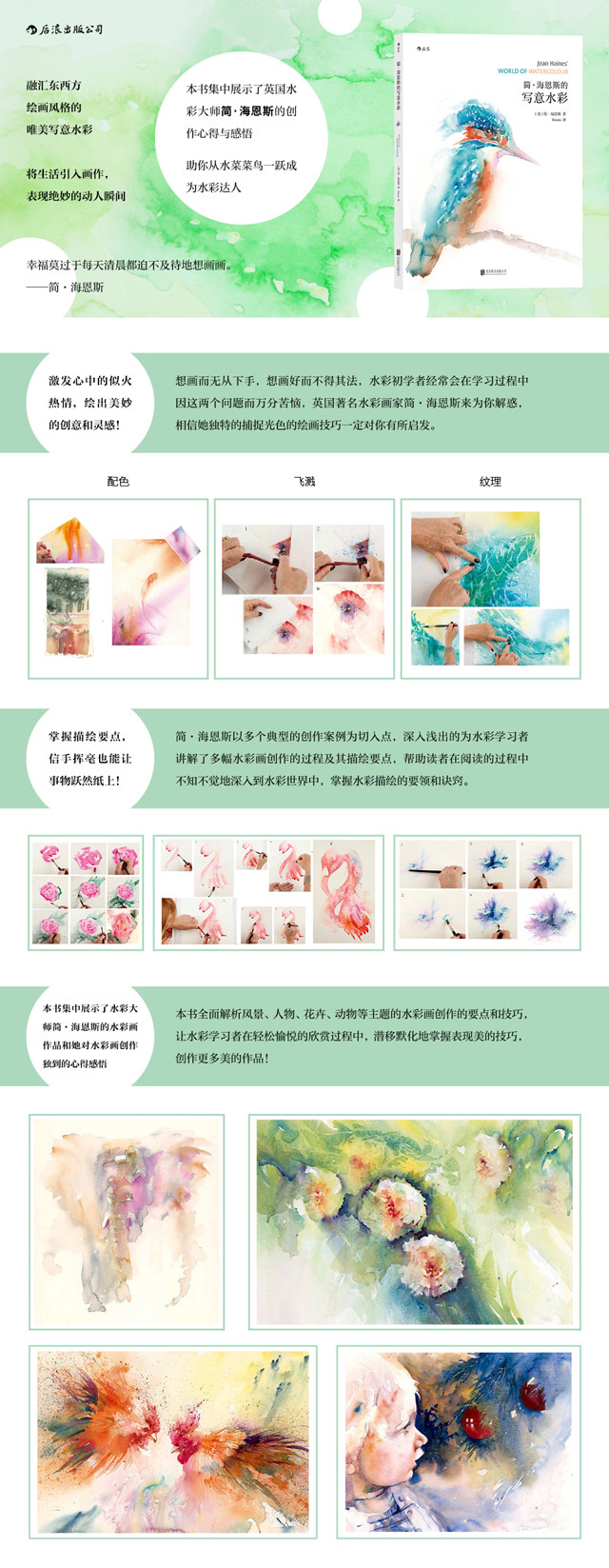 本书集中展示了水彩大师简·海恩斯的水彩画作品和她对水彩画创作独到的心得感悟。本书全面解析风景、人物、花卉、动物等主题的水彩画创作的要点和技巧,让水彩学习者在轻松愉悦的欣赏过程中,不知不觉地学会如何发现美,潜移默化地掌握表现美的技巧,激活潜在的艺术才能,从而在日常的生活中发现更多美的素材,创作更多美的作品!
