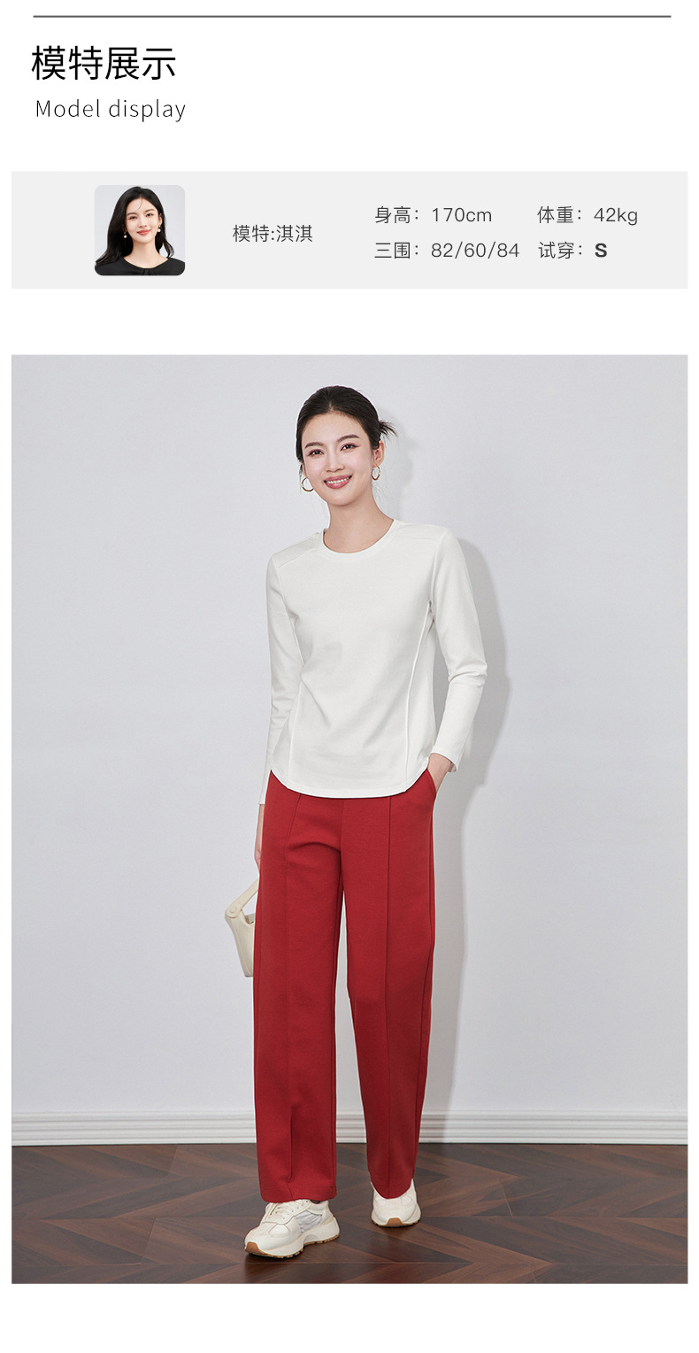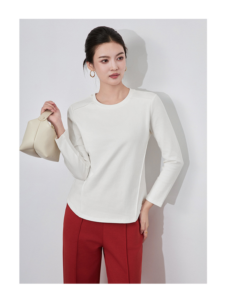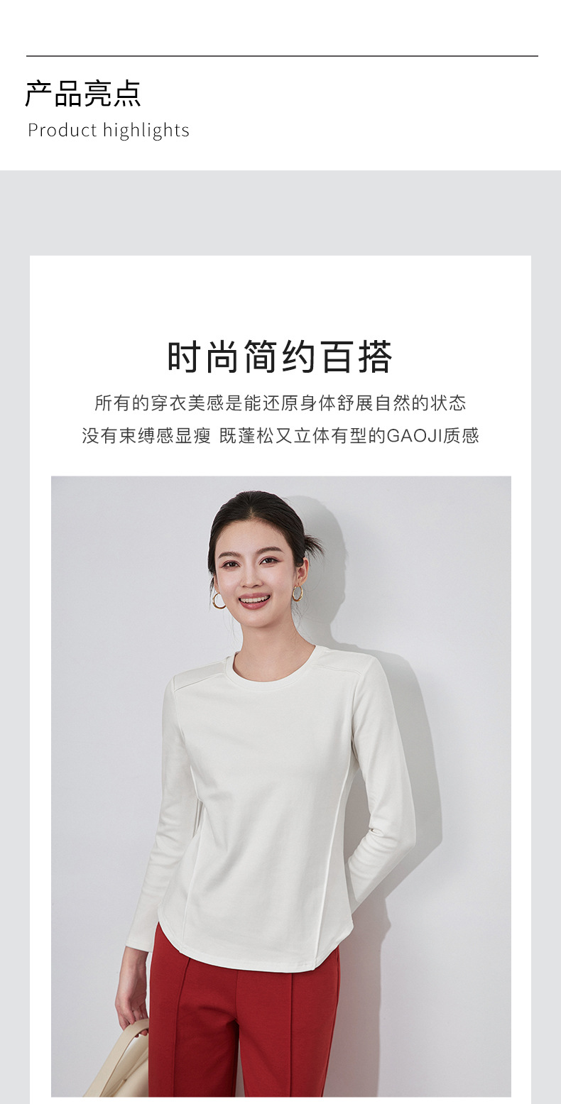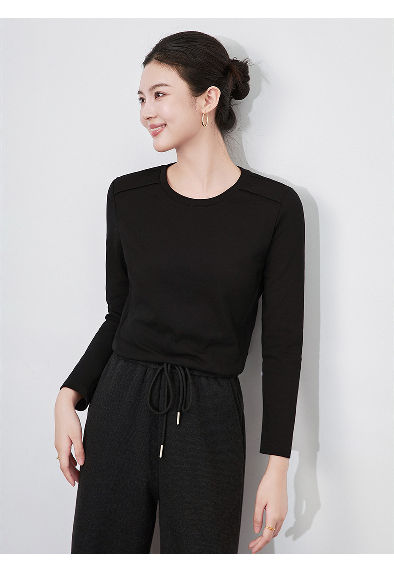 【高货wl】全新升级【铂金会员165/天猫219/差价54】(84551) 洛诗琳秋冬新款松弛休闲感正肩圆领鱼骨长袖打底衫上衣女