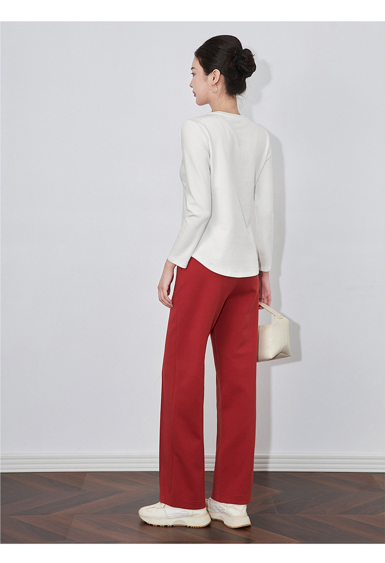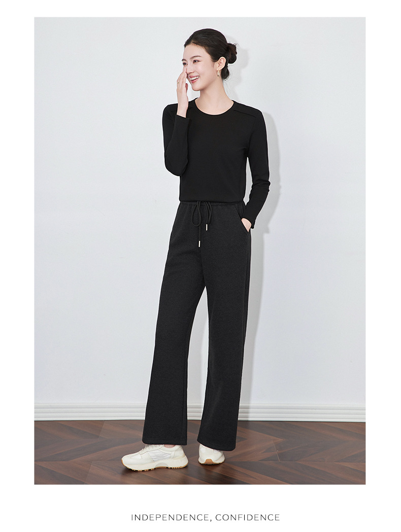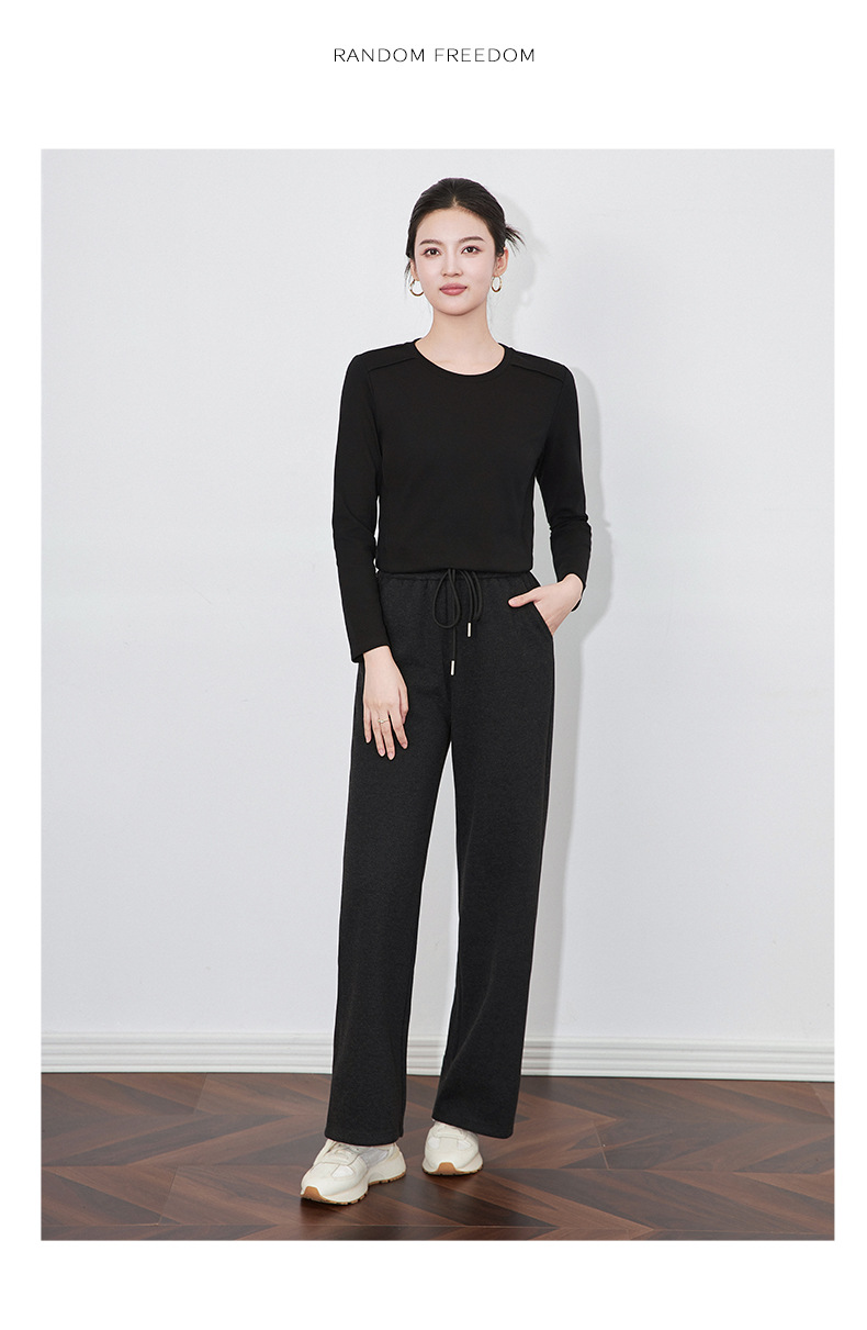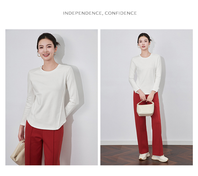 【高货wl】全新升级【铂金会员165/天猫219/差价54】(84551) 洛诗琳秋冬新款松弛休闲感正肩圆领鱼骨长袖打底衫上衣女