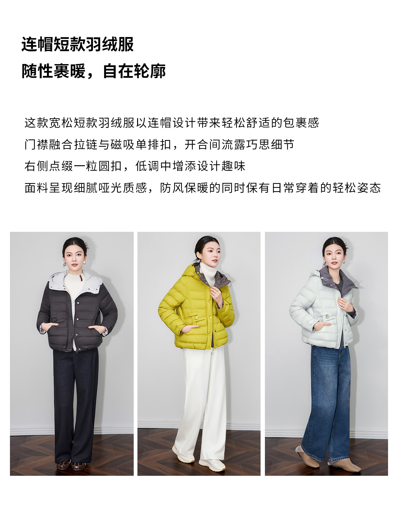 「高货wl」全新升级【铂金会员459/天猫619/差价160】(63744)洛诗琳连帽90白鸭绒羽绒服2025冬季防风保暖休闲短外套女