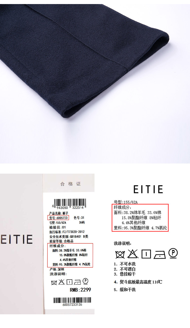 EITIE爱特爱冬季通勤百搭显瘦羊毛呢直筒裤休闲裤长裤女6005723