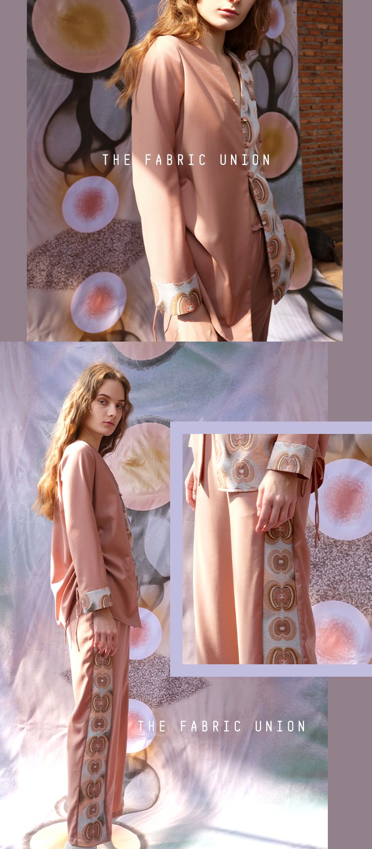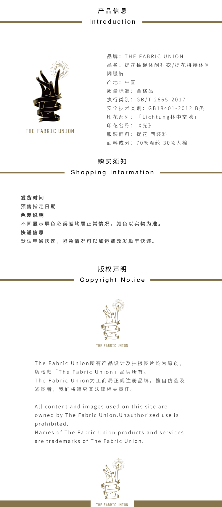 THE FABRIC UNION提花抽绳休闲衬衣提花拼接休闲阔腿裤