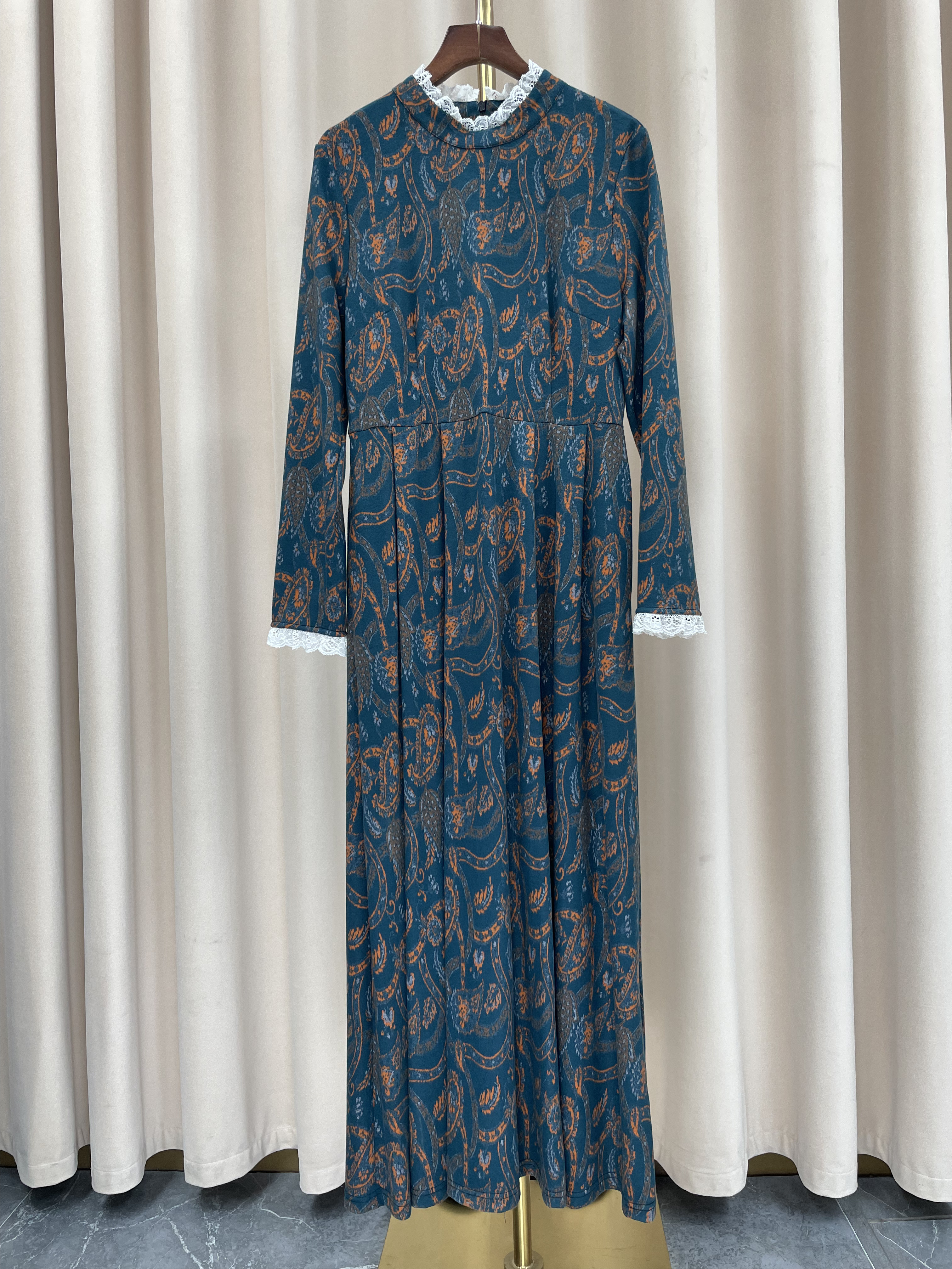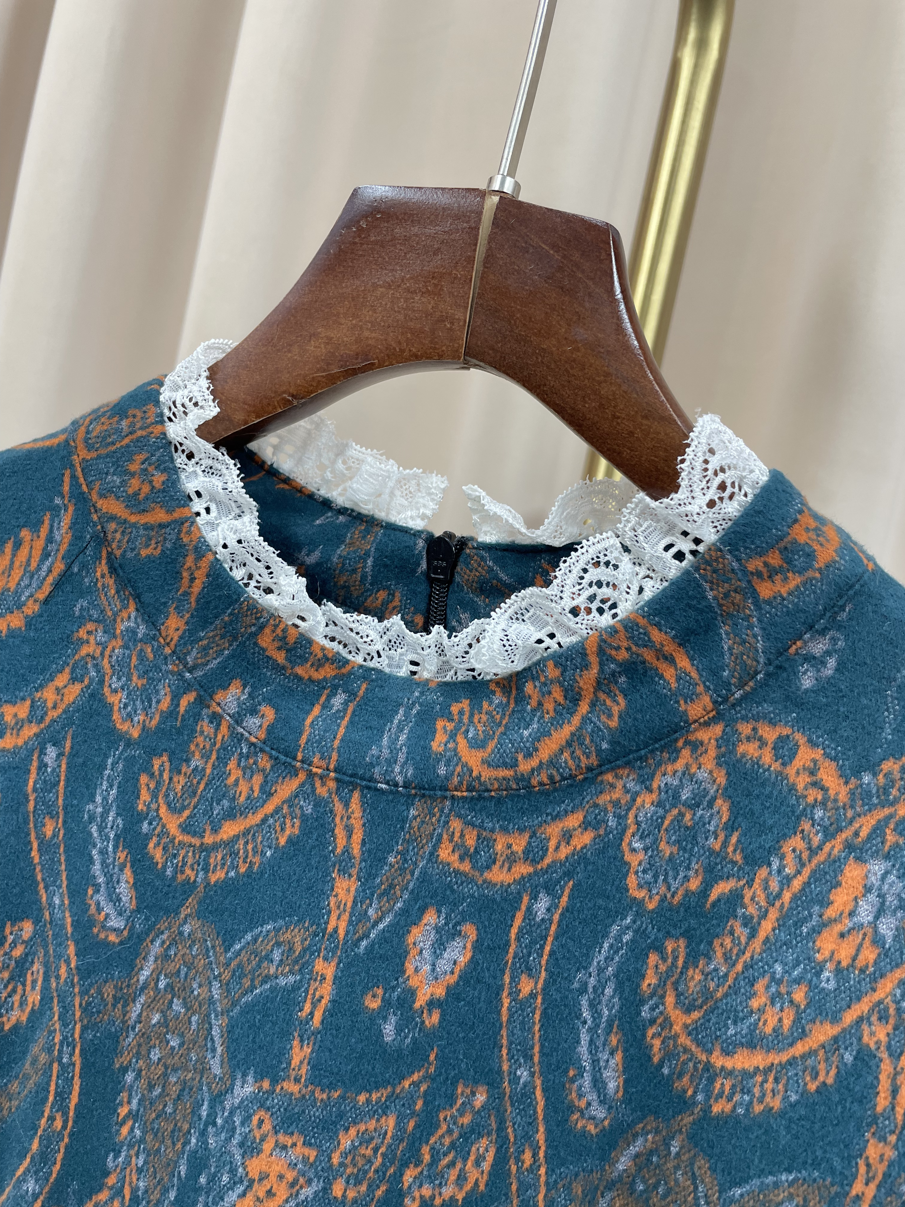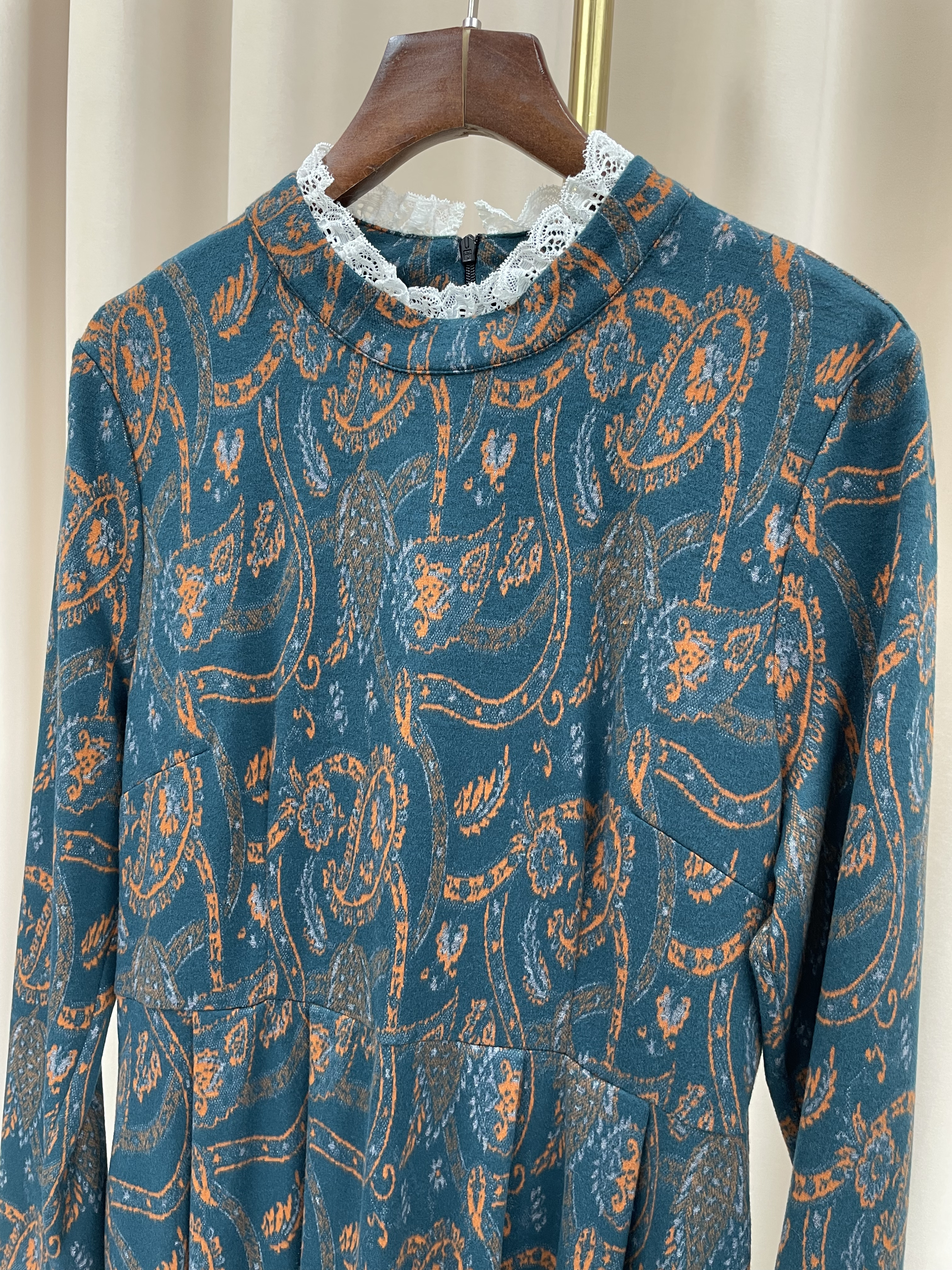 「断码清仓」复古优雅撞色显瘦羊毛连衣裙 L码 ZFYY138
